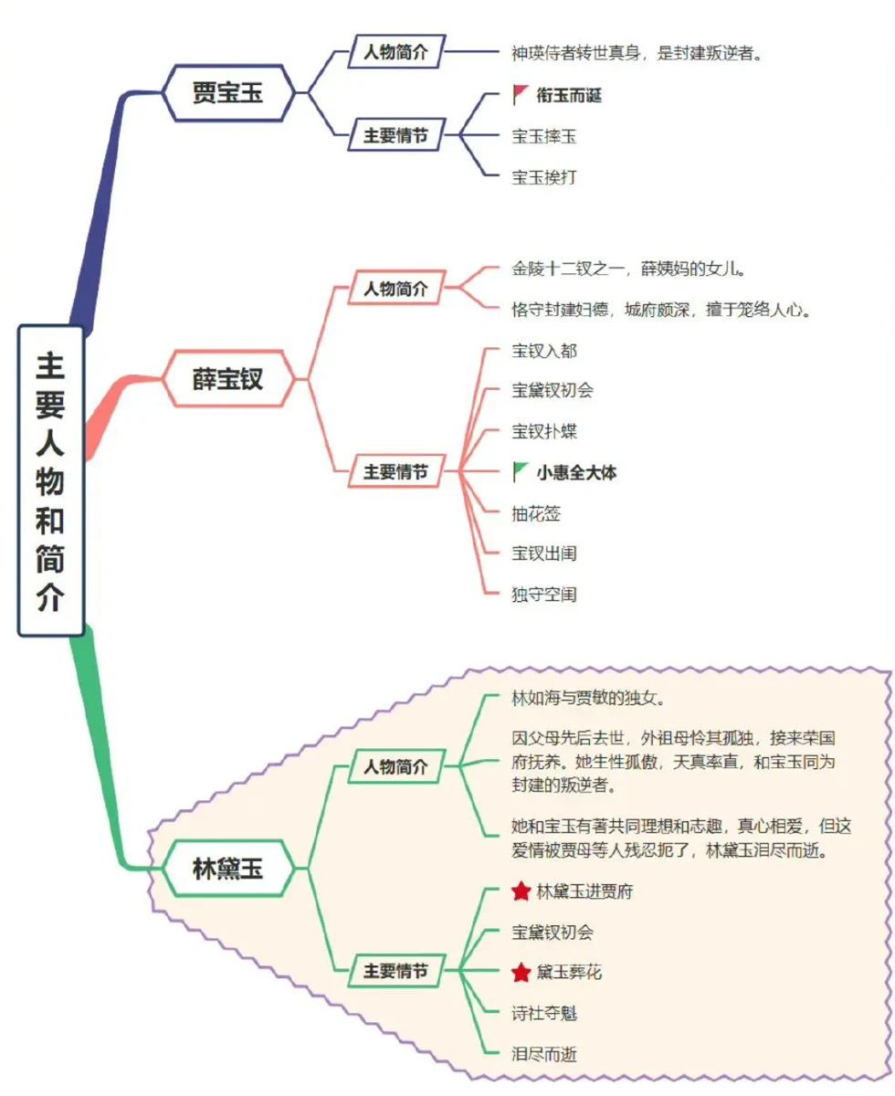 主要人物为贾宝玉、林黛玉、薛宝钗、王熙凤等;结合四大家族中宏大庞杂的人物关系和故事,描绘了当时的社会、人情百态。