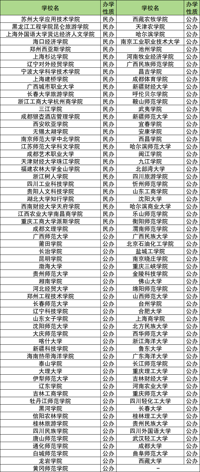 二本旅游管理学校完整名单一览表: