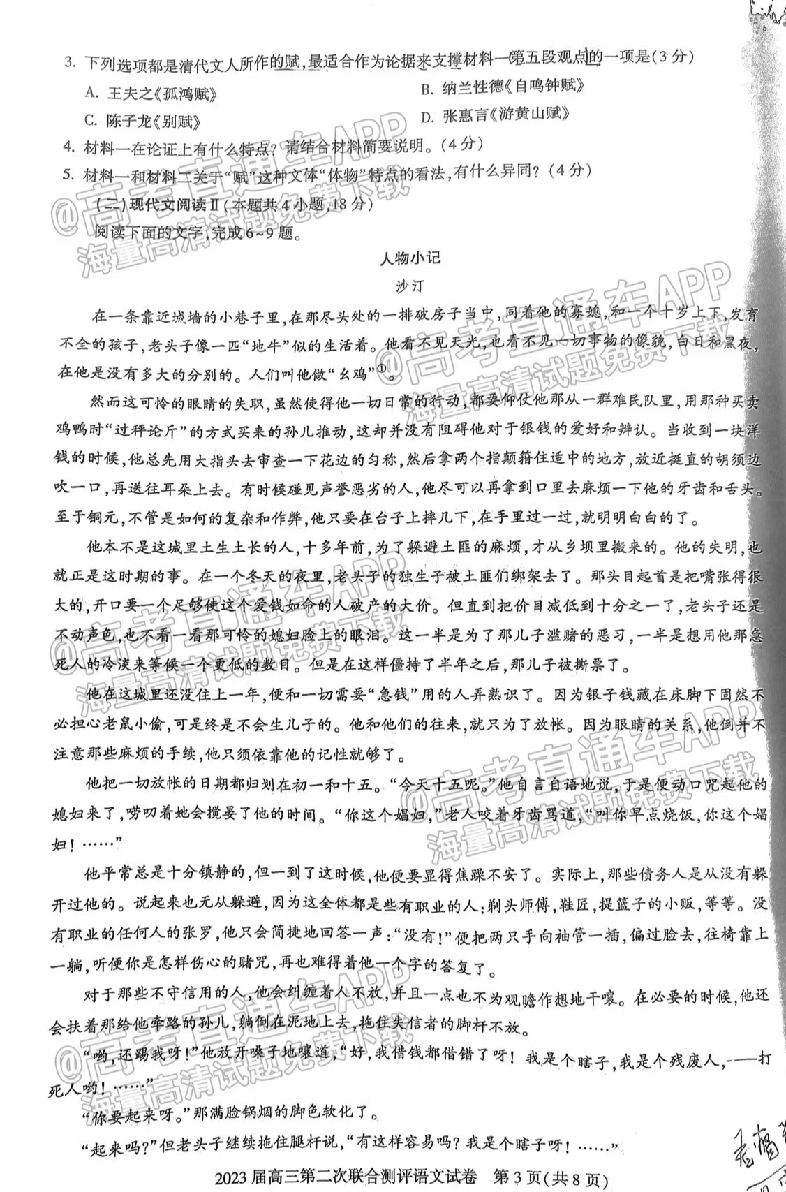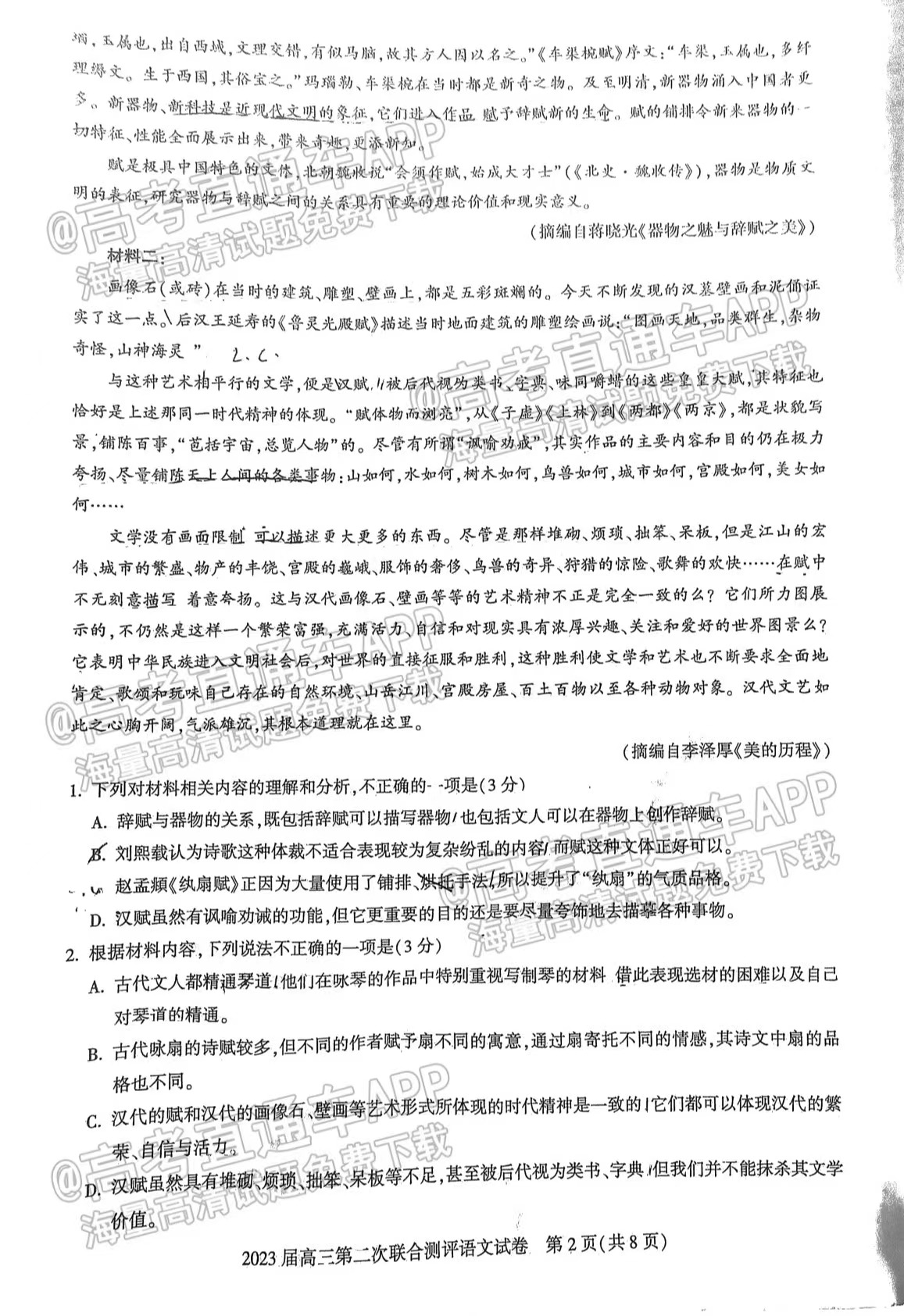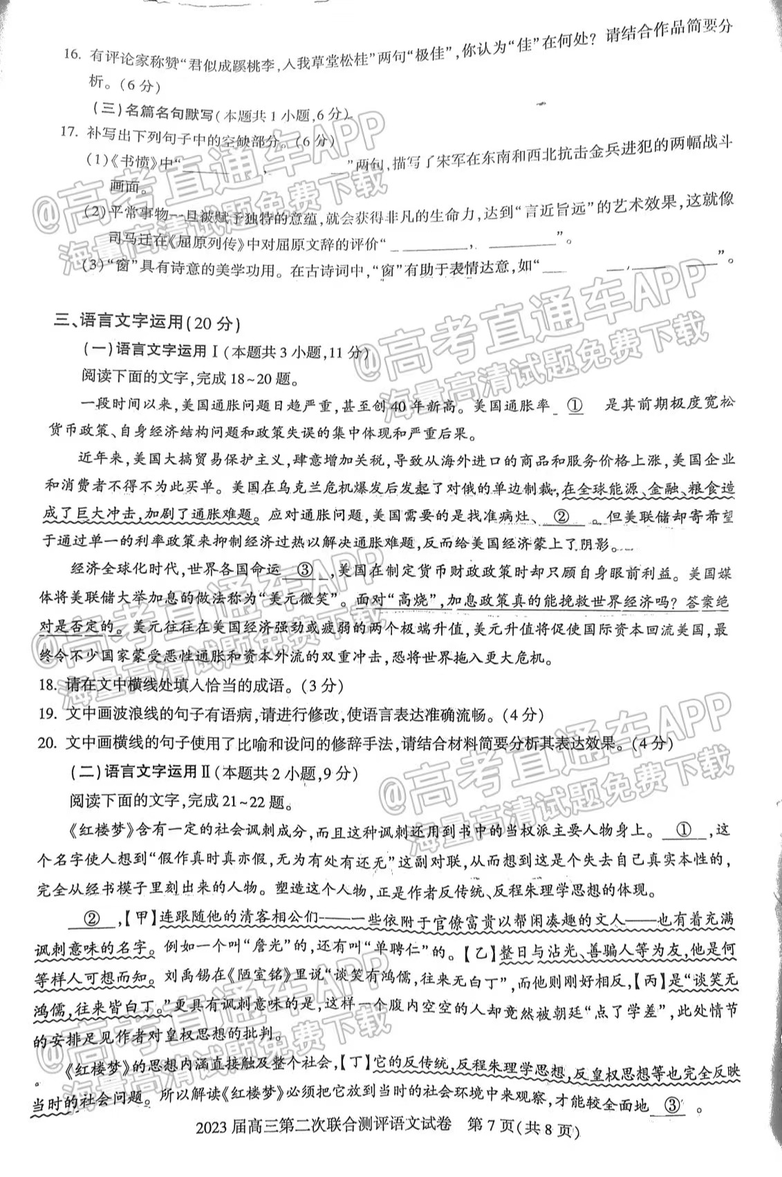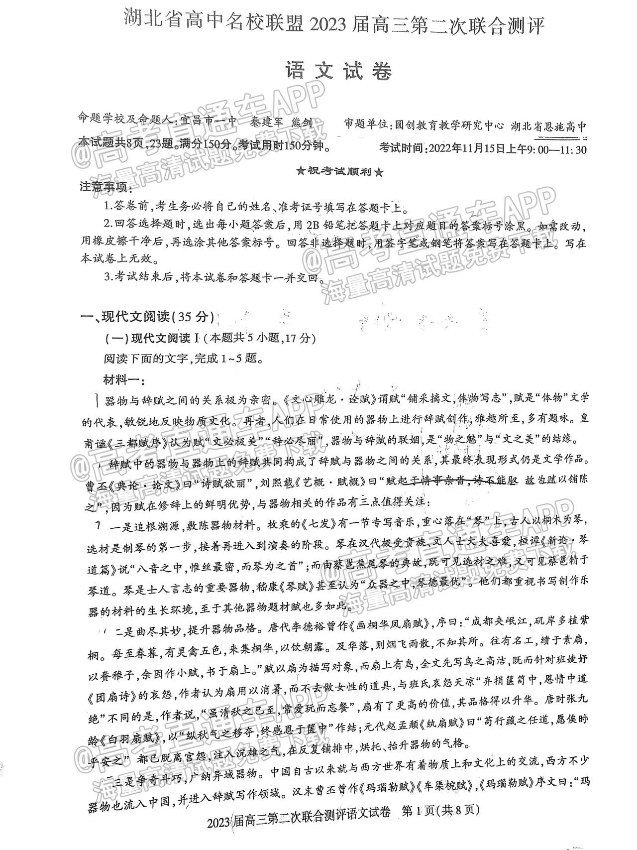 1.2023湖北圆创联盟高三11月联考语文试卷