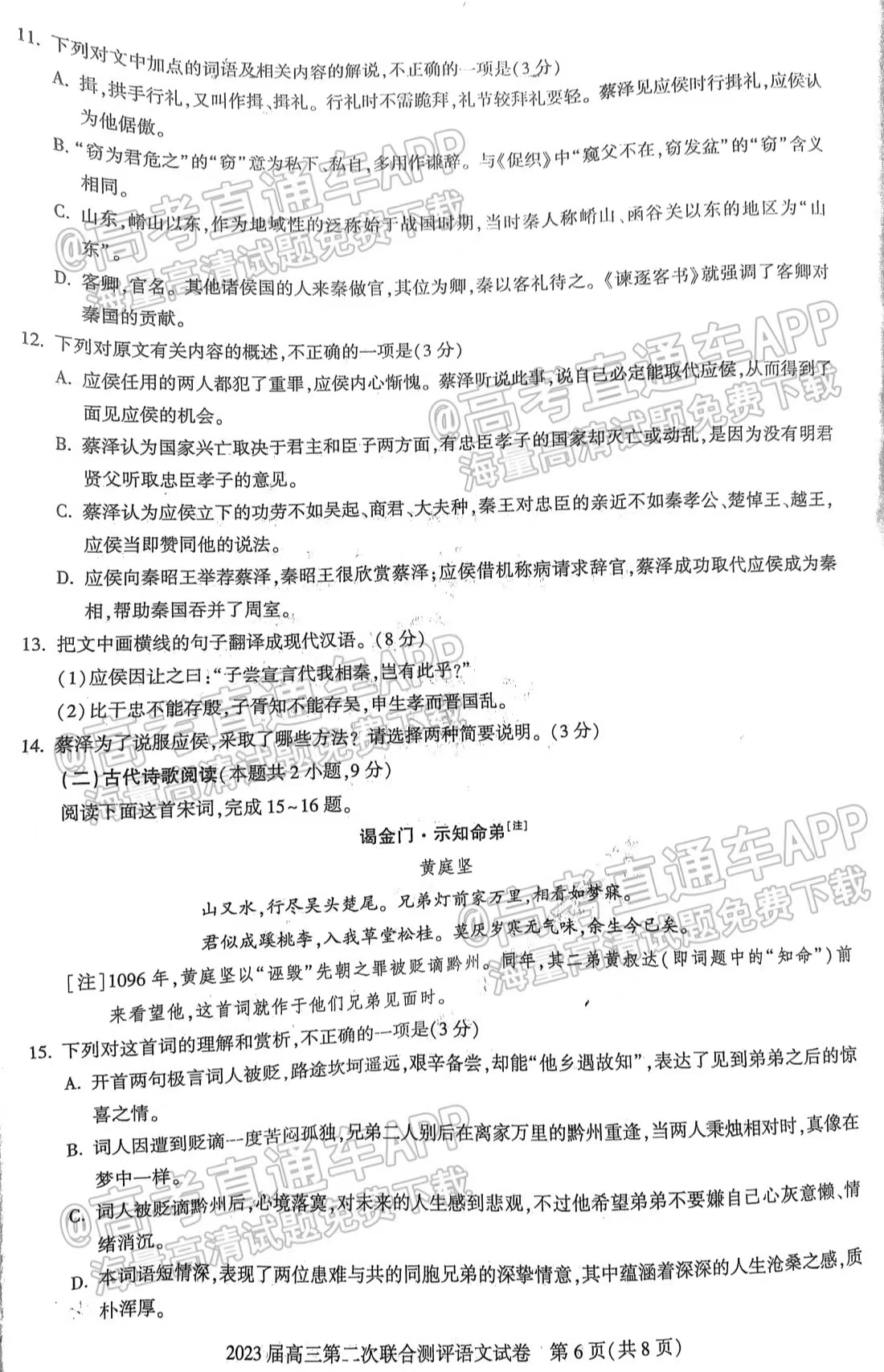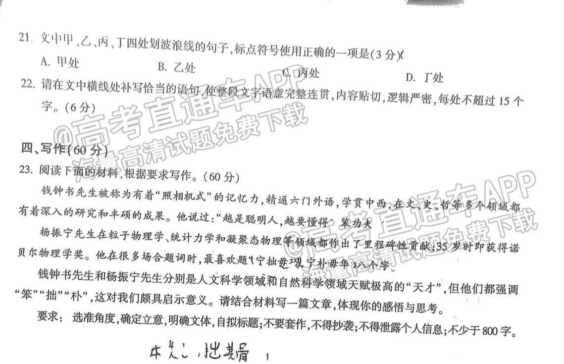 湖北圆创联盟高三11月联考于11月15日开考,在此次考试中,包含的科目一共有9门,这9门科目分别是语文、数学、英语、物理、化学、生物、政治、历史、地理。以下是语文的试卷及答案详解,详情如下: