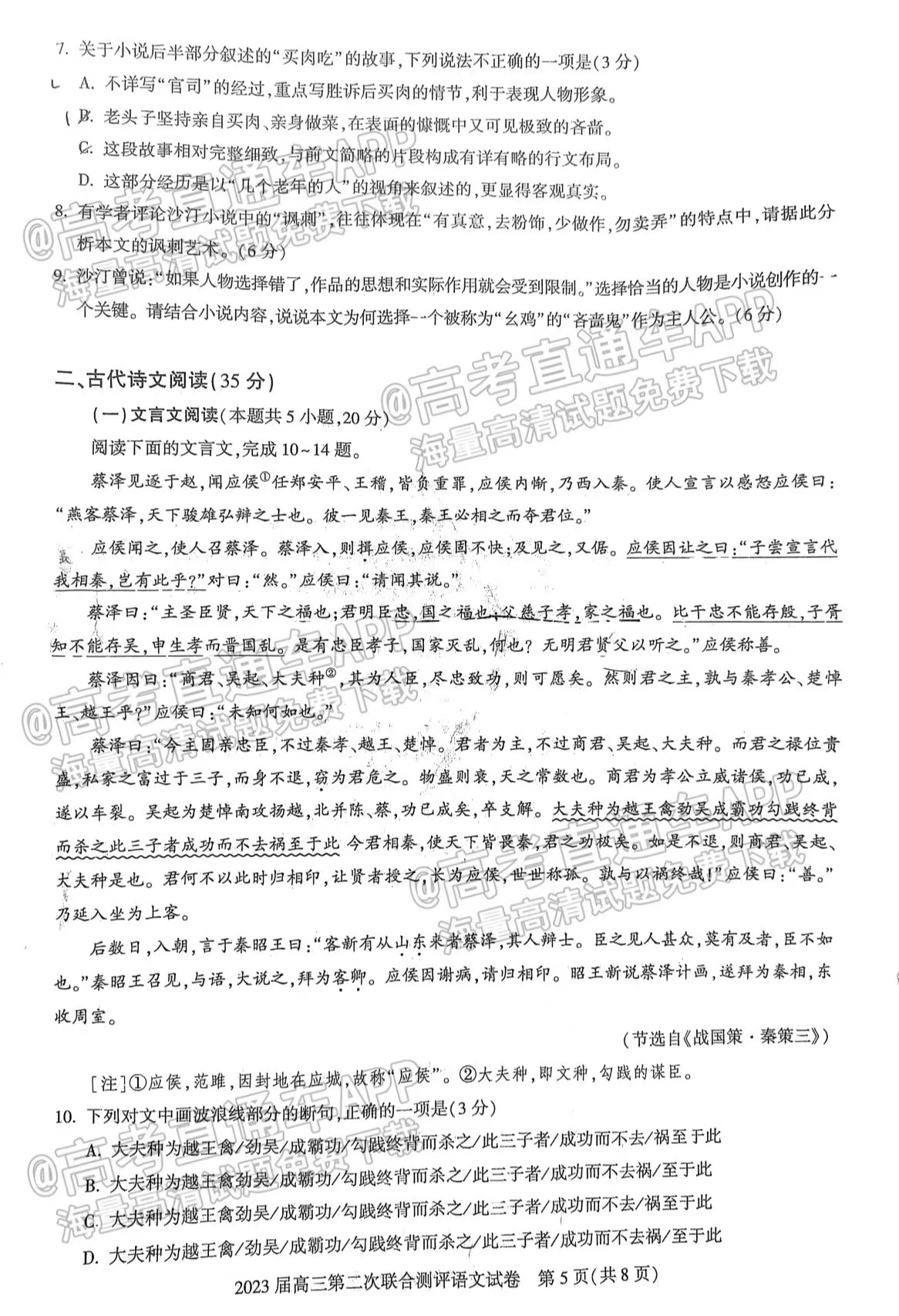 2.2023湖北圆创联盟高三11月联考语文答案详情