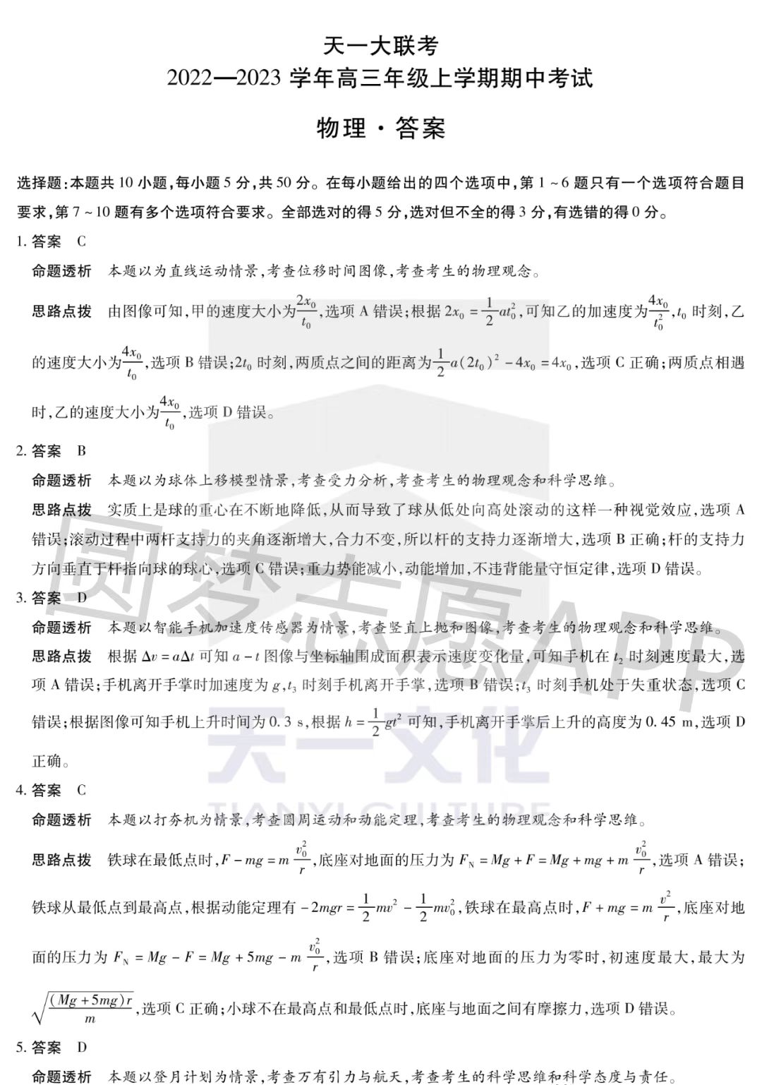 本文将公布2023天一大联考高三期中考试物理科目试卷及答案,以便于考生估分,查漏补缺。