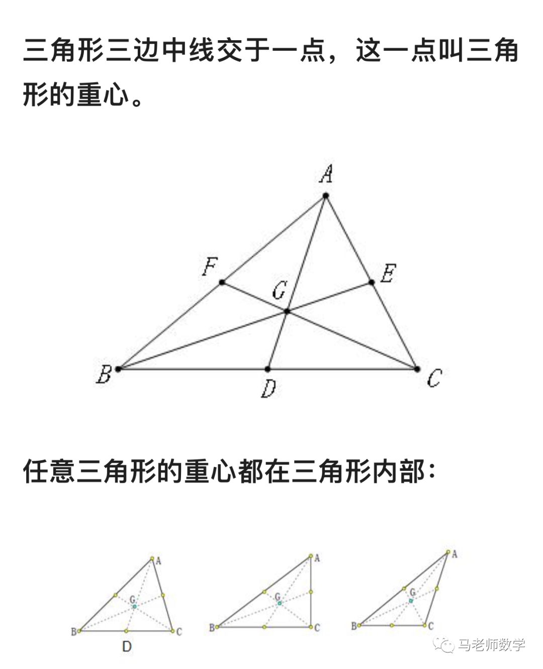 三角形的三条中线交于一点,这点称为三角形的重心。