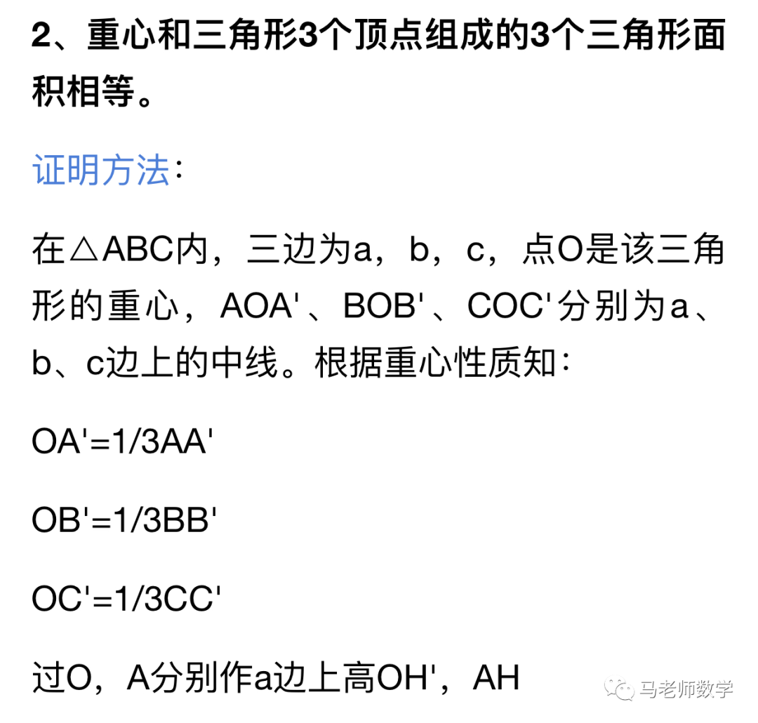 (2)重心和三角形三个顶点组成的三个三角形面积相等。