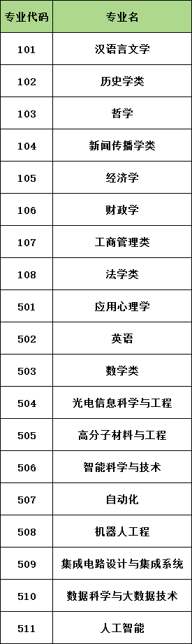 全国各大学在贵州招生的专业代码各不相同,一般而言,专业代码为3位数,同一专业不同专业方向的代码也会有差异。以安徽大学为例,汉语言文学专业代码是101、历史学类专业代码是102、哲学专业代码是103等。篇幅有限,这里仅列举安徽大学的本科志愿填报专业代码,以供参考:
