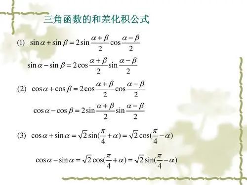 1. 根据和差化积公式,我们可以将sin(a + b)转化为sin(a) * cos(b) + cos(a) * sin(b)。