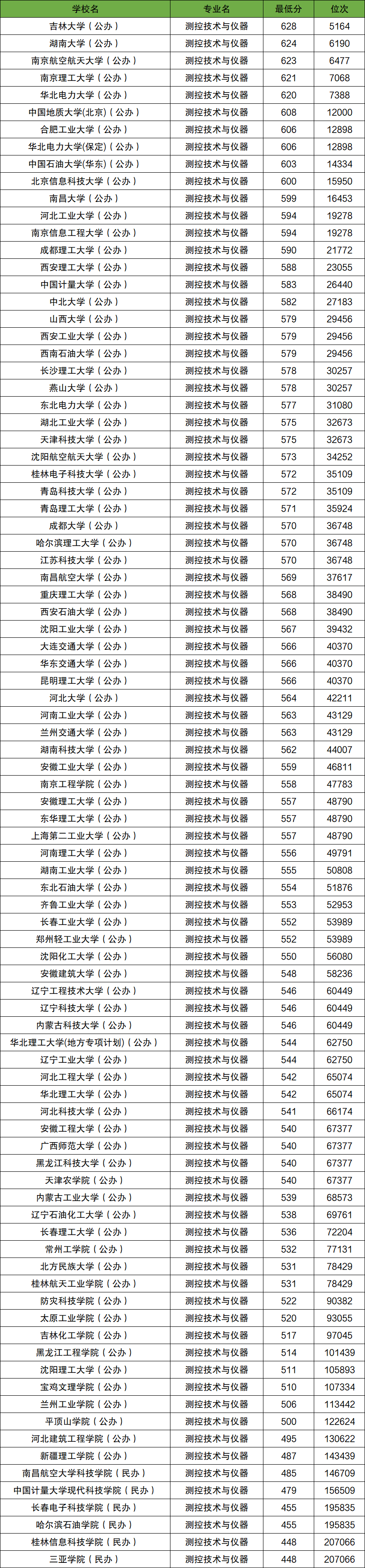 600分左右的测控技术与仪器大学:中国石油大学(华东)603分、北京信息科技大学600分、南昌大学599分。