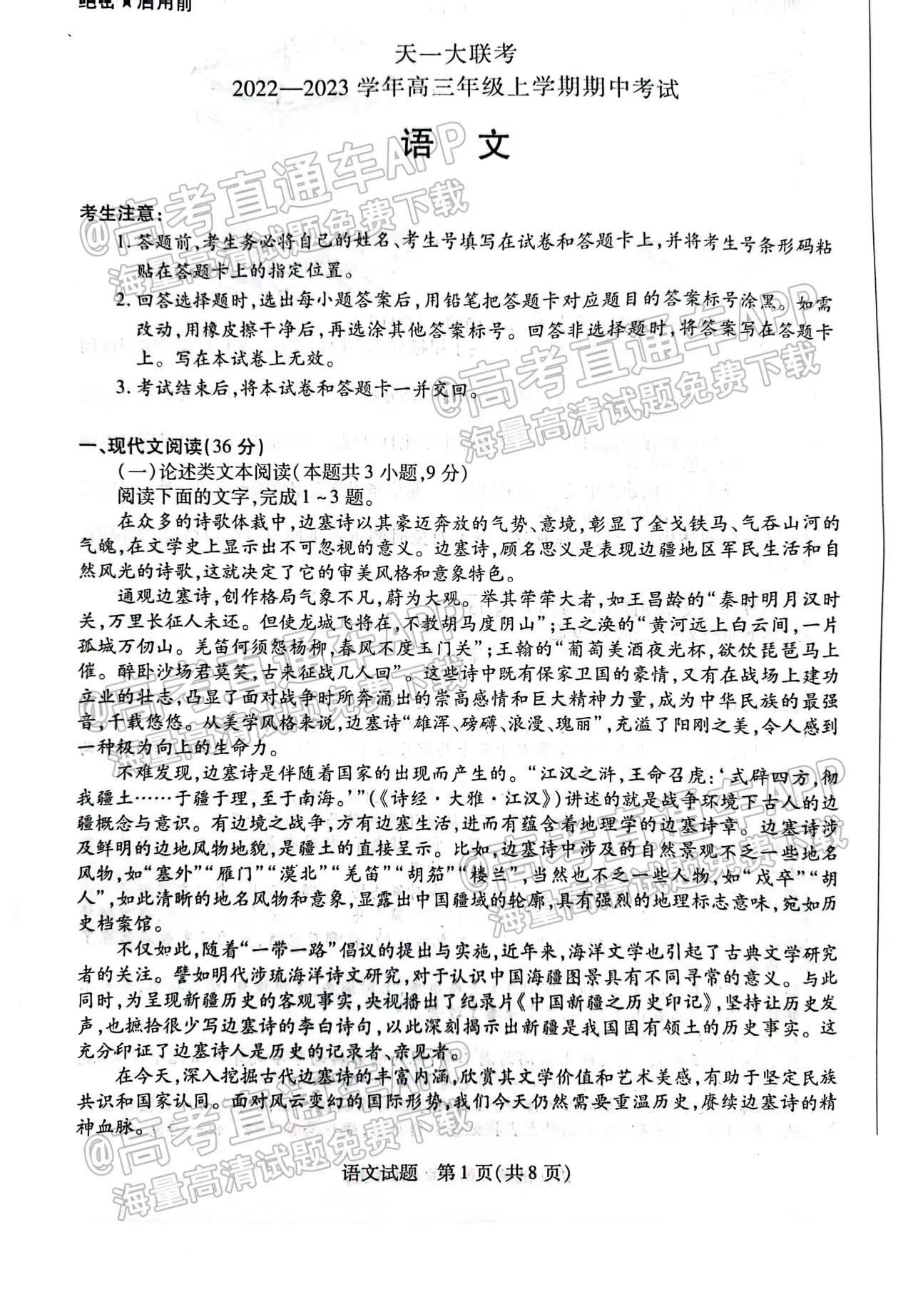一.2023河南天一大联考语文答案解析及试题汇总!