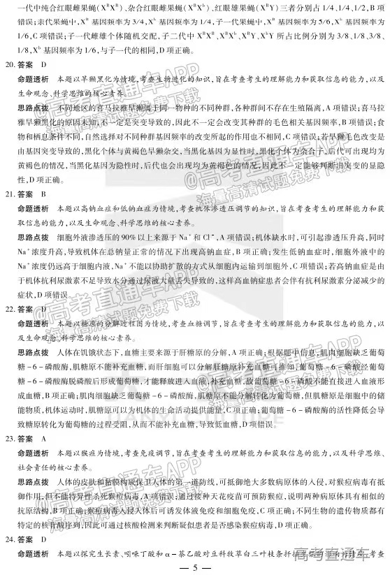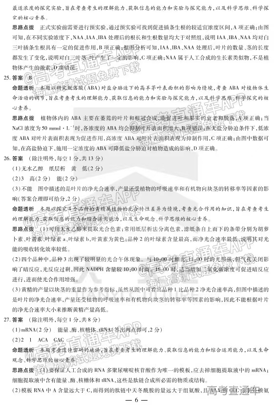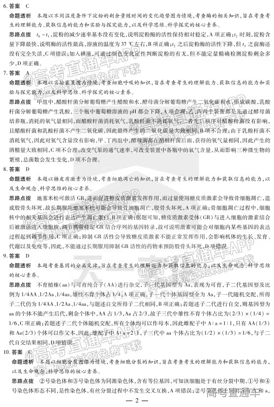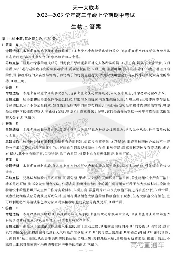2.2023河南天一大联考生物答案解析