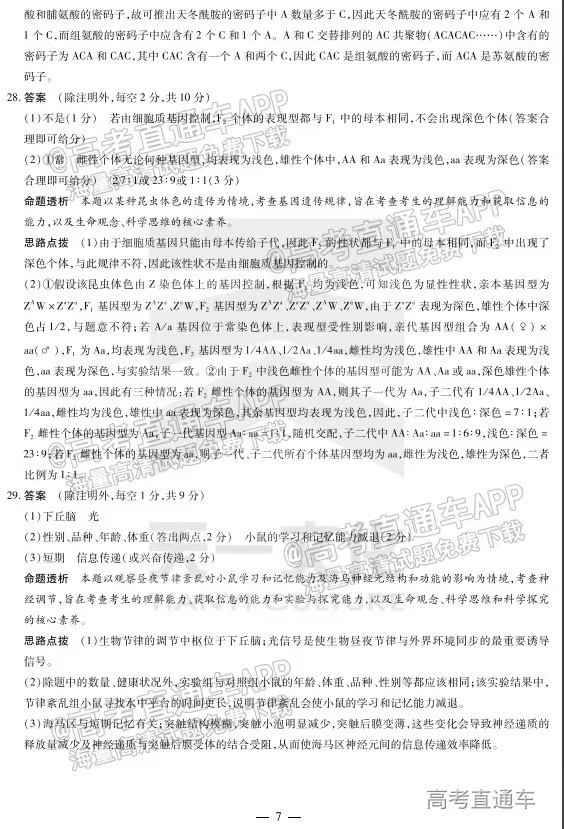 一.2023河南天一大联考生物答案解析及试题汇总!