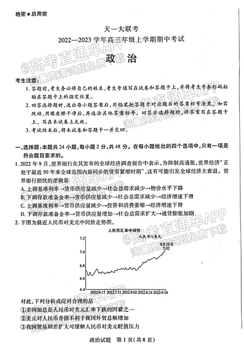 1.2023河南天一大联考政治试题