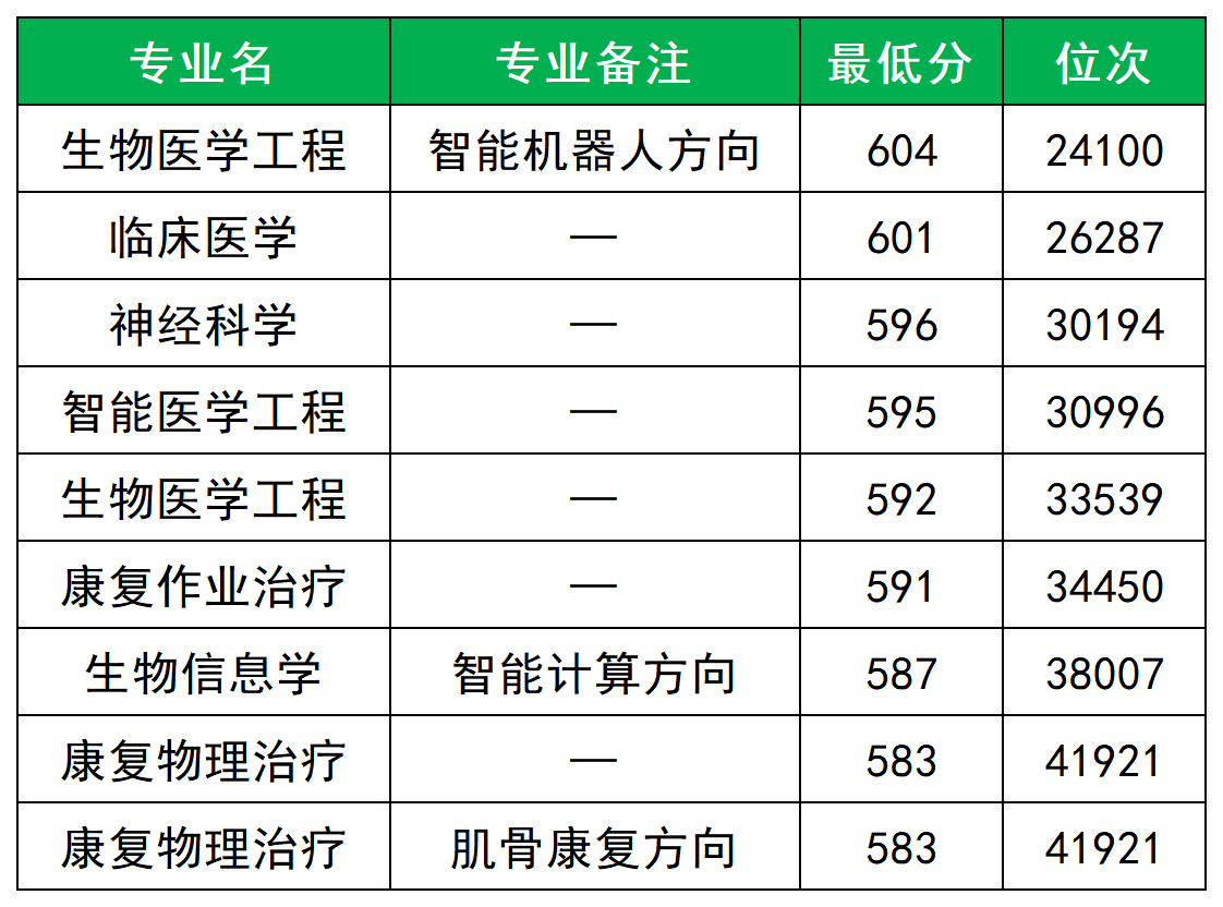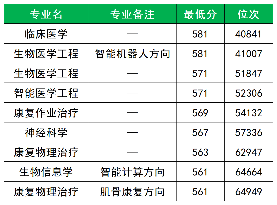 智能医学工程:2025年录取最低分571分,录取最低位次52306名。