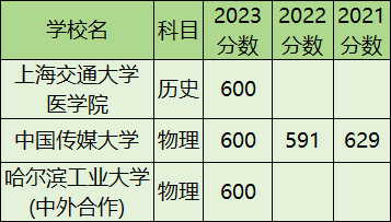 下图根据重庆高考2023年的录取数据,整理了600分对应的全部大学名单。600分历史类能上的大学包含上海交通大学医学院。600分物理类能上的大学中国传媒大学、哈尔滨工业大学(中外合作)等。