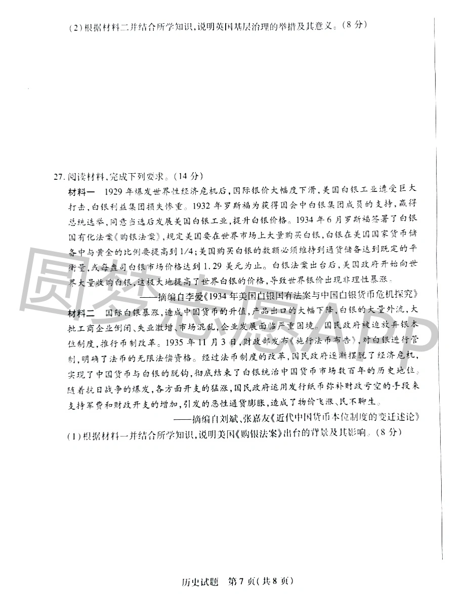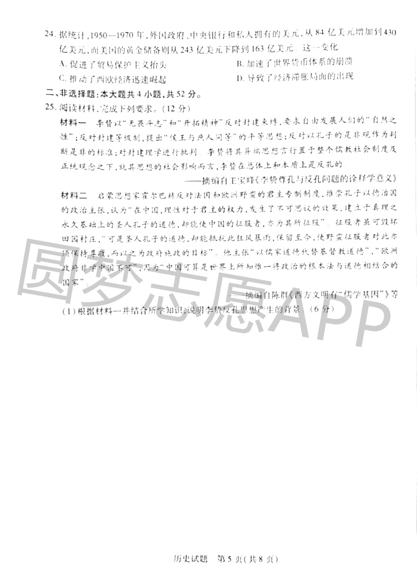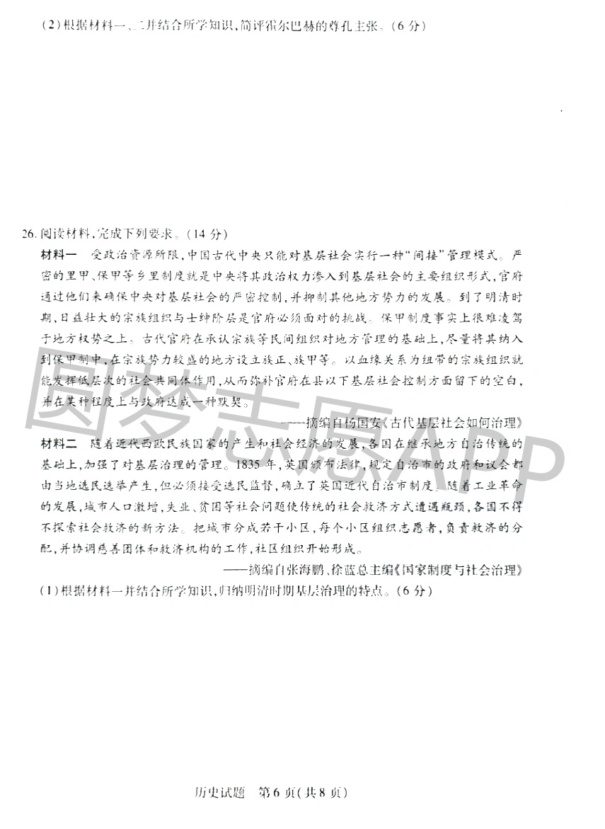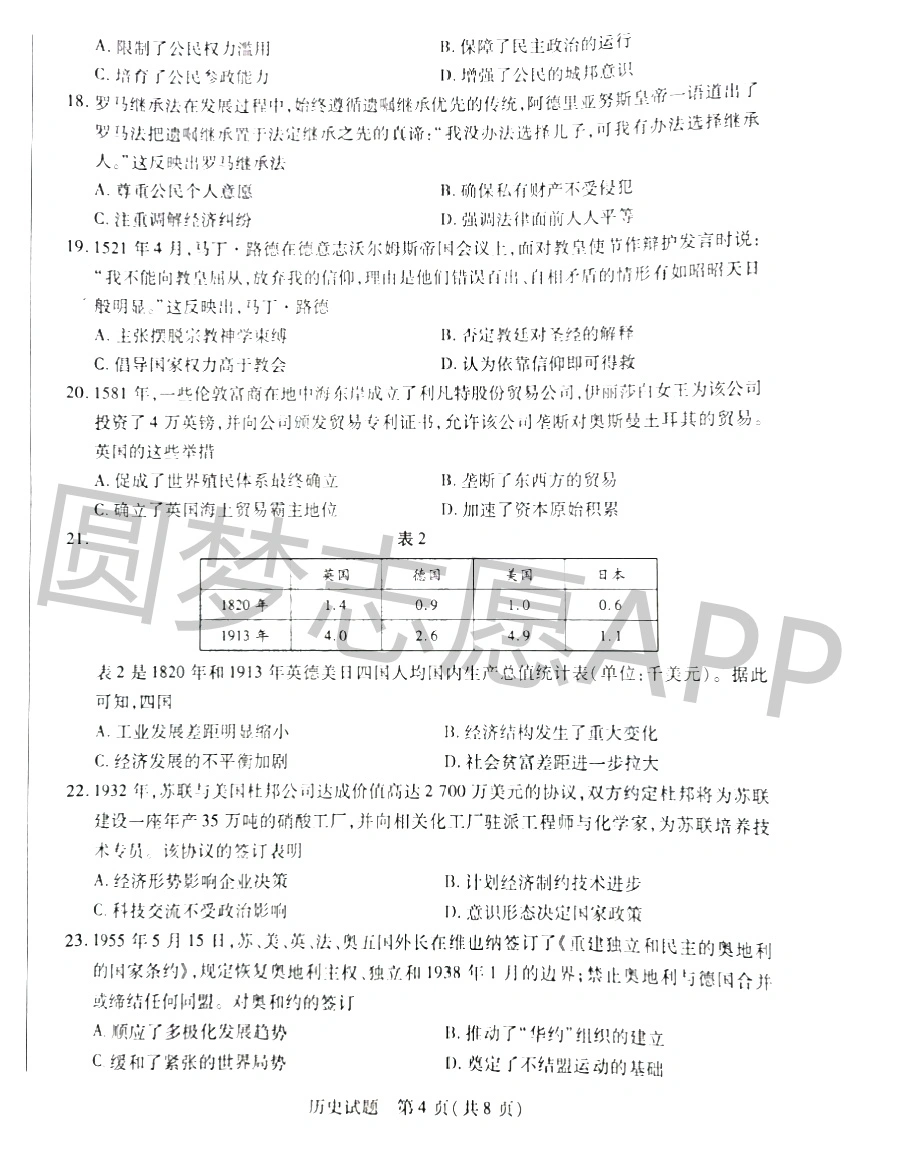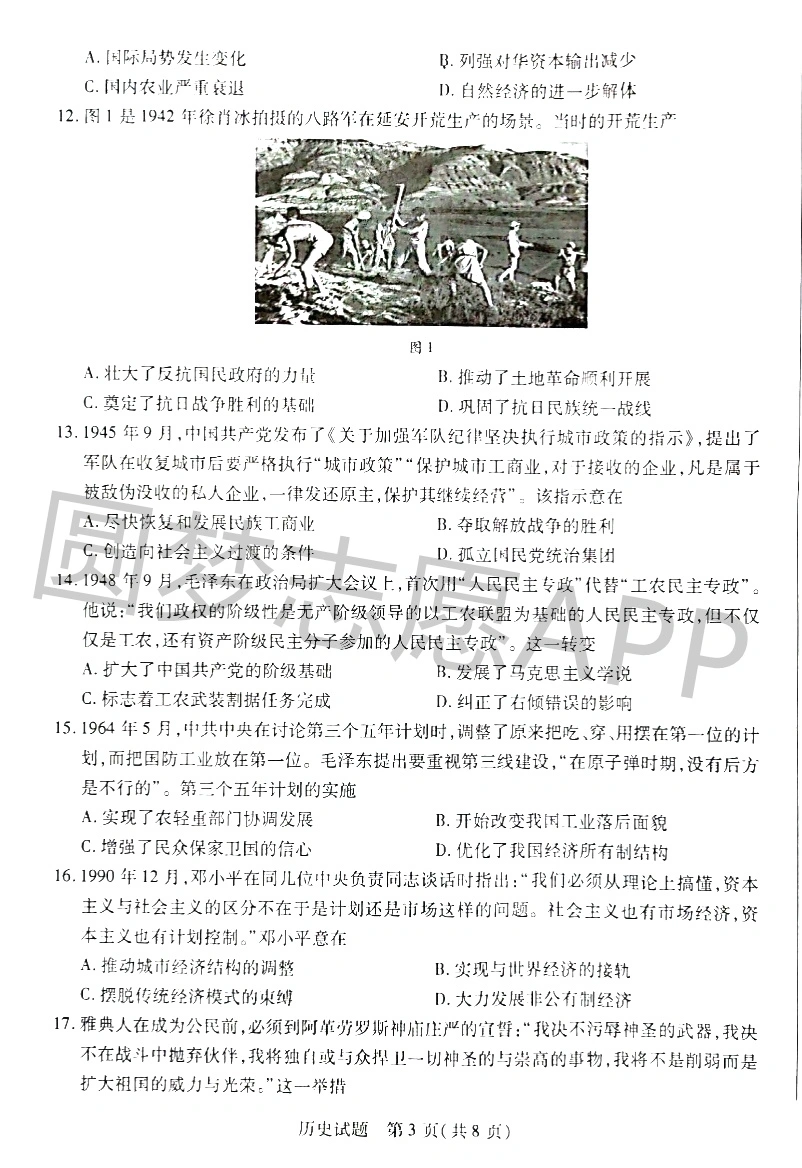 一、2023天一大联考高三期中考试历史试卷
