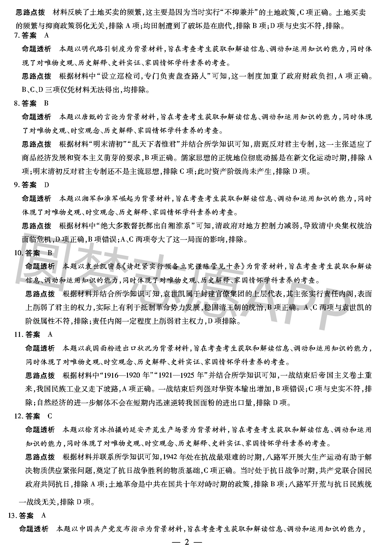 二、2023天一大联考高三期中考试历史答案解析