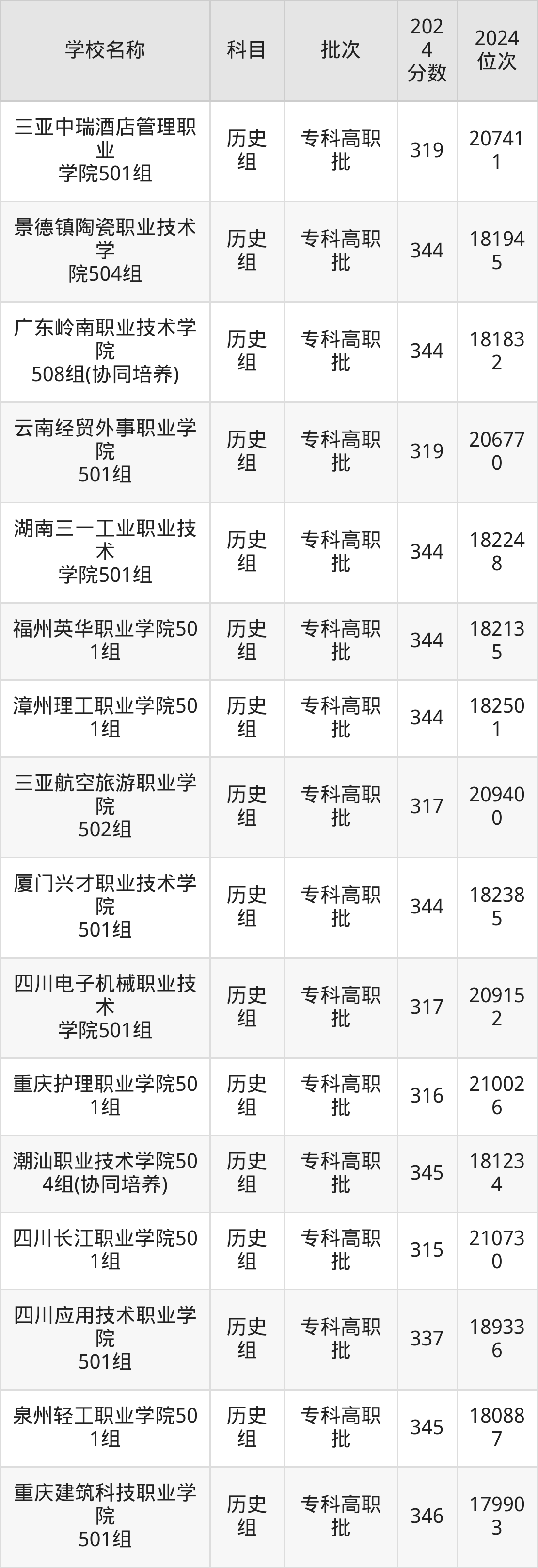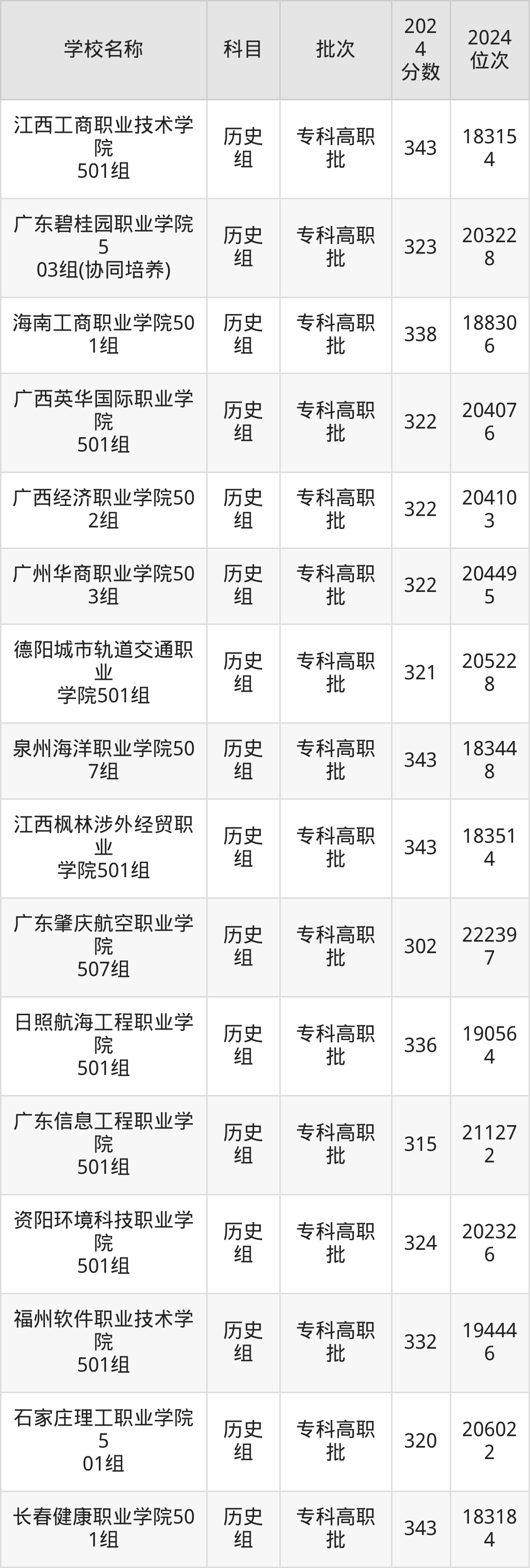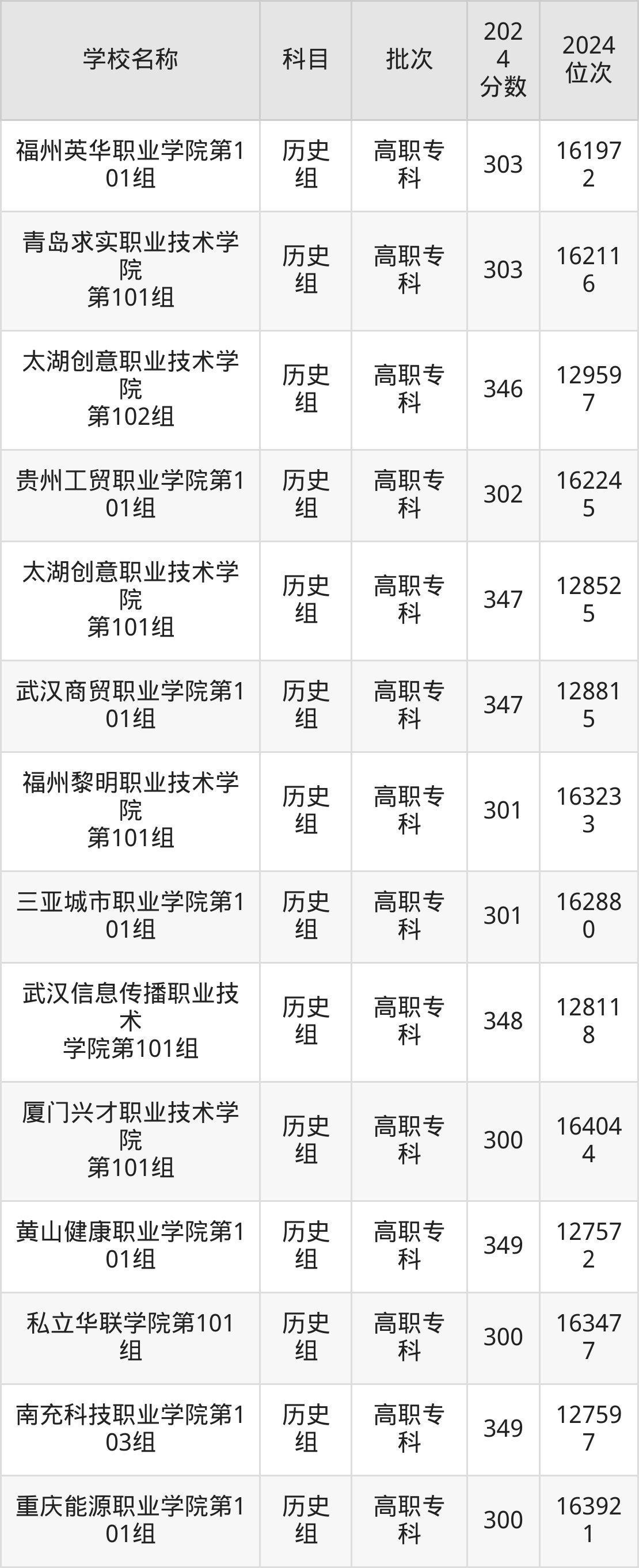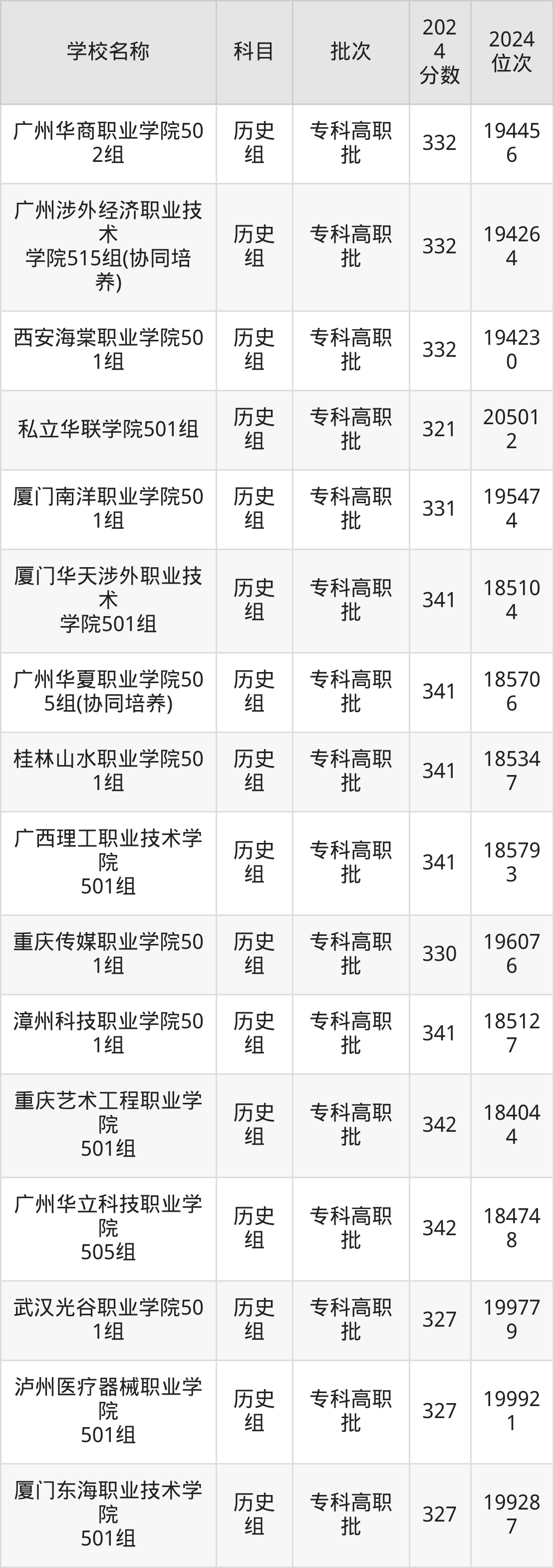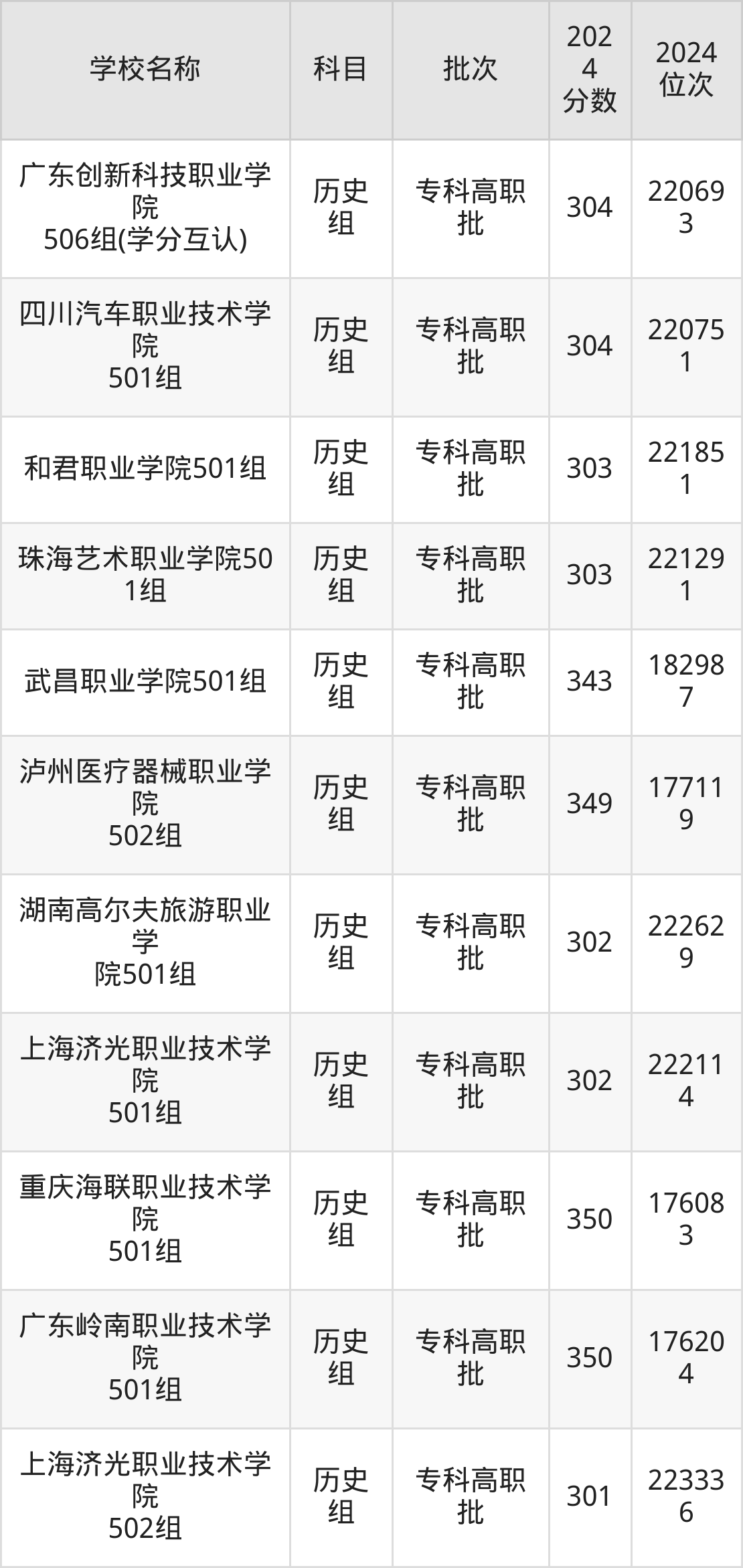 广东高考历史组共有112所民办专科学校在300到350分之间录取,包含广东岭南职业技术学院、重庆海联职业技术学院、泸州医疗器械职业学院、武汉外语外事职业学院、长沙轨道交通职业学院、宿迁职业技术学院、江西新能源科技职业学院、泉州纺织服装职业学院、三亚城市职业学院、广东新安职业技术学院。