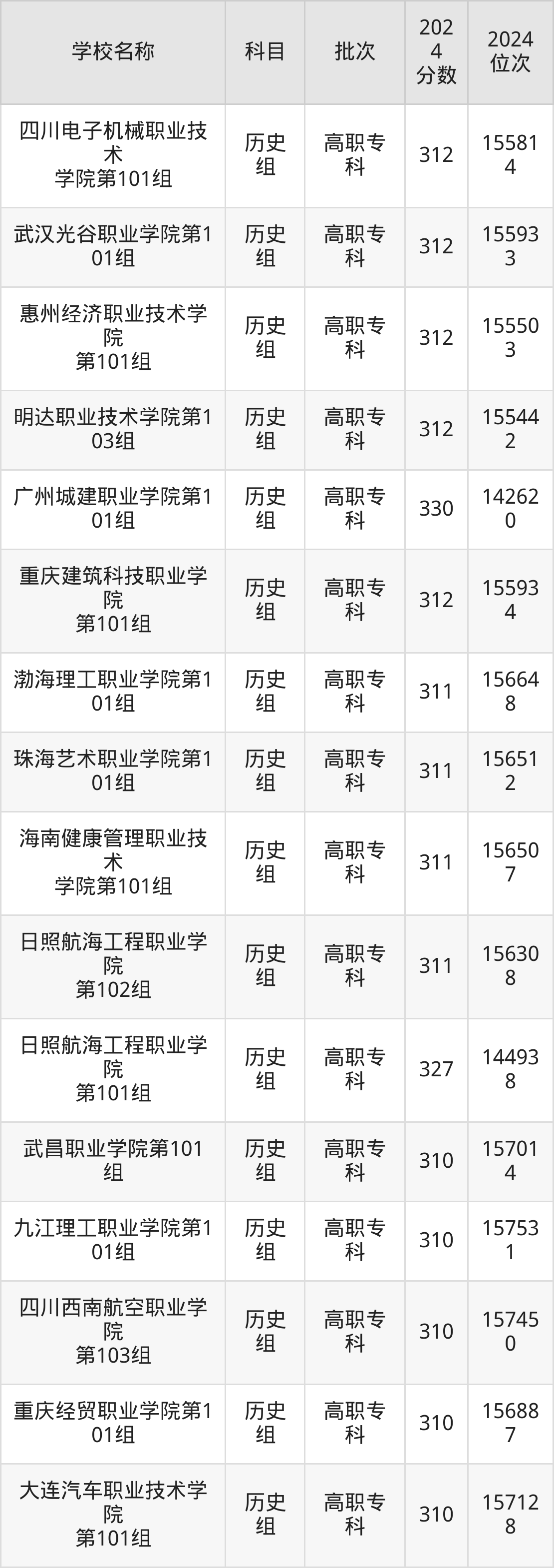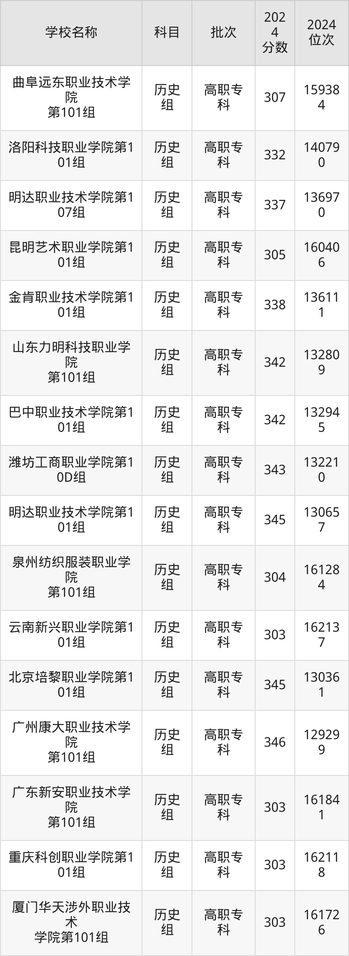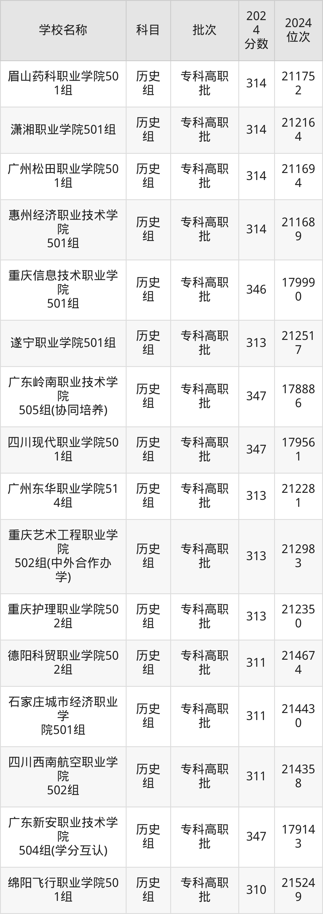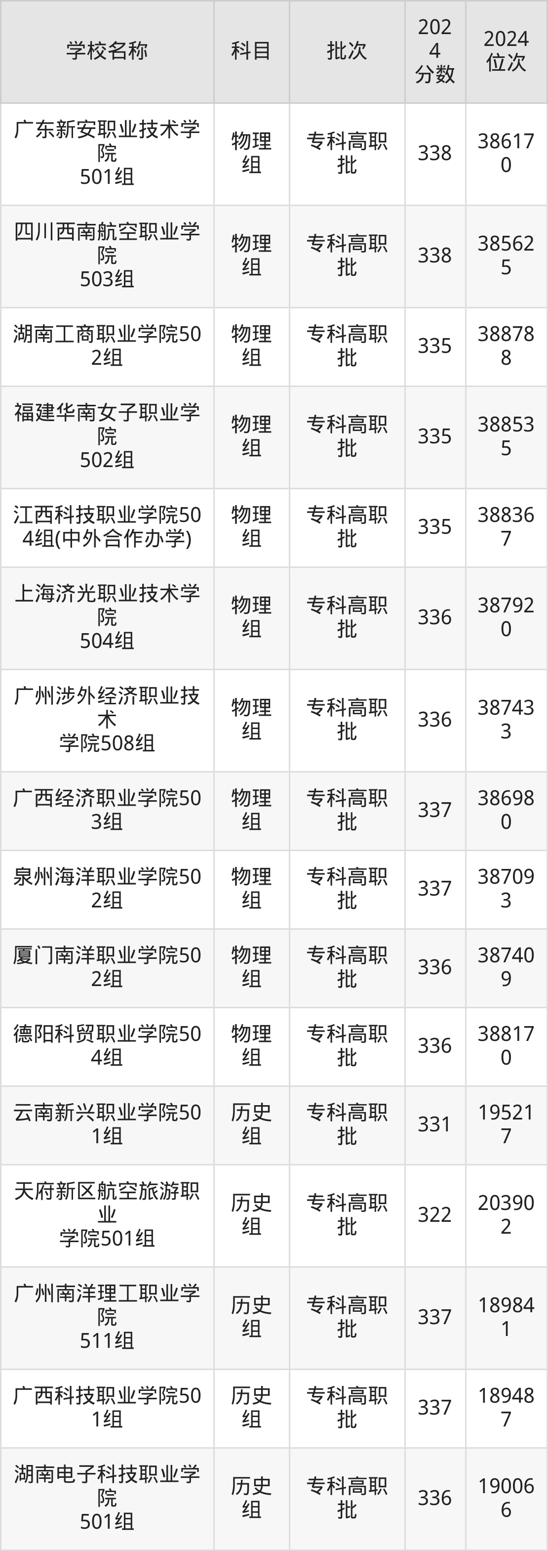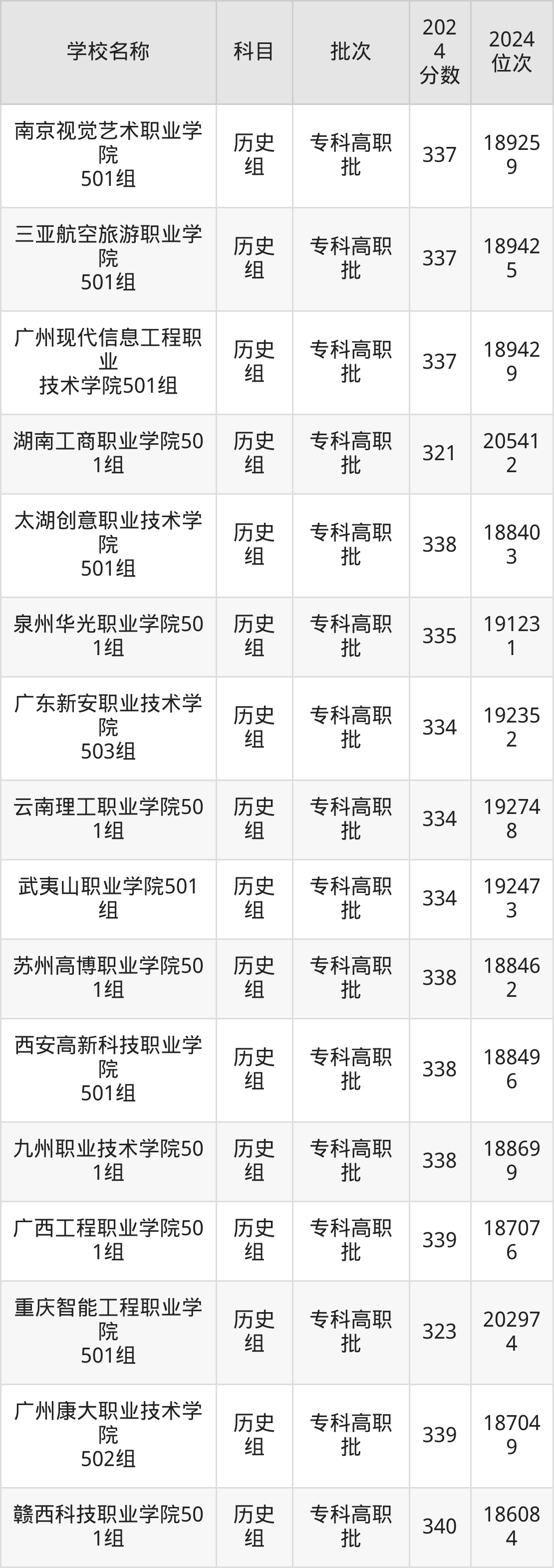 广东高考历史组共有112所民办专科学校在300到350分之间录取,包含广东岭南职业技术学院、重庆海联职业技术学院、泸州医疗器械职业学院、武汉外语外事职业学院、长沙轨道交通职业学院、宿迁职业技术学院、江西新能源科技职业学院、泉州纺织服装职业学院、三亚城市职业学院、广东新安职业技术学院。