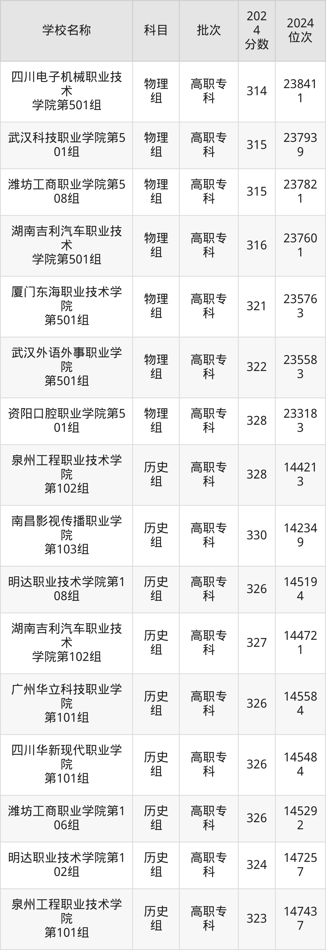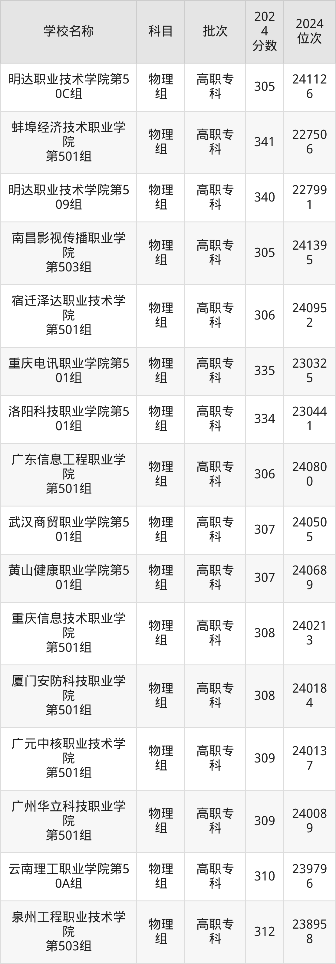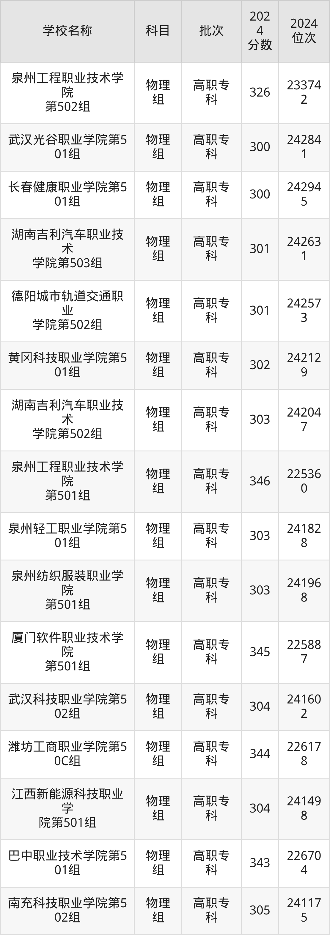 江西高考物理组共有32所民办专科学校在300到350分之间录取,包含泉州工程职业技术学院、厦门软件职业技术学院、潍坊工商职业学院、巴中职业技术学院、蚌埠经济技术职业学院、明达职业技术学院、重庆电讯职业学院、洛阳科技职业学院、资阳口腔职业学院、武汉外语外事职业学院。