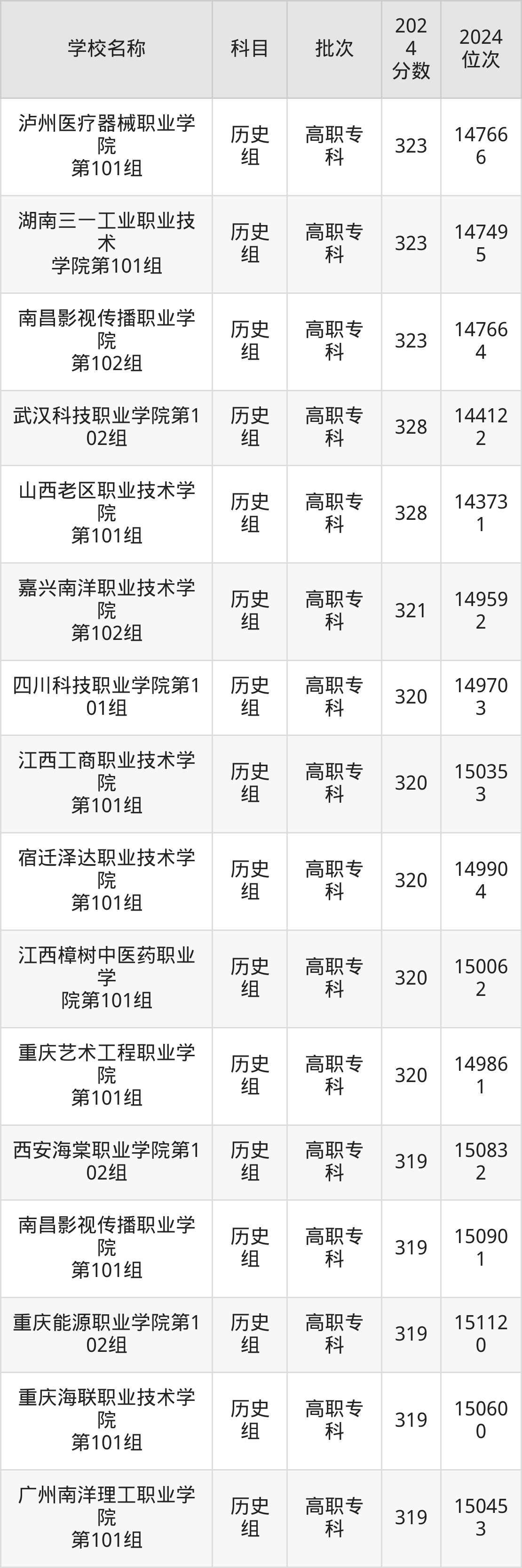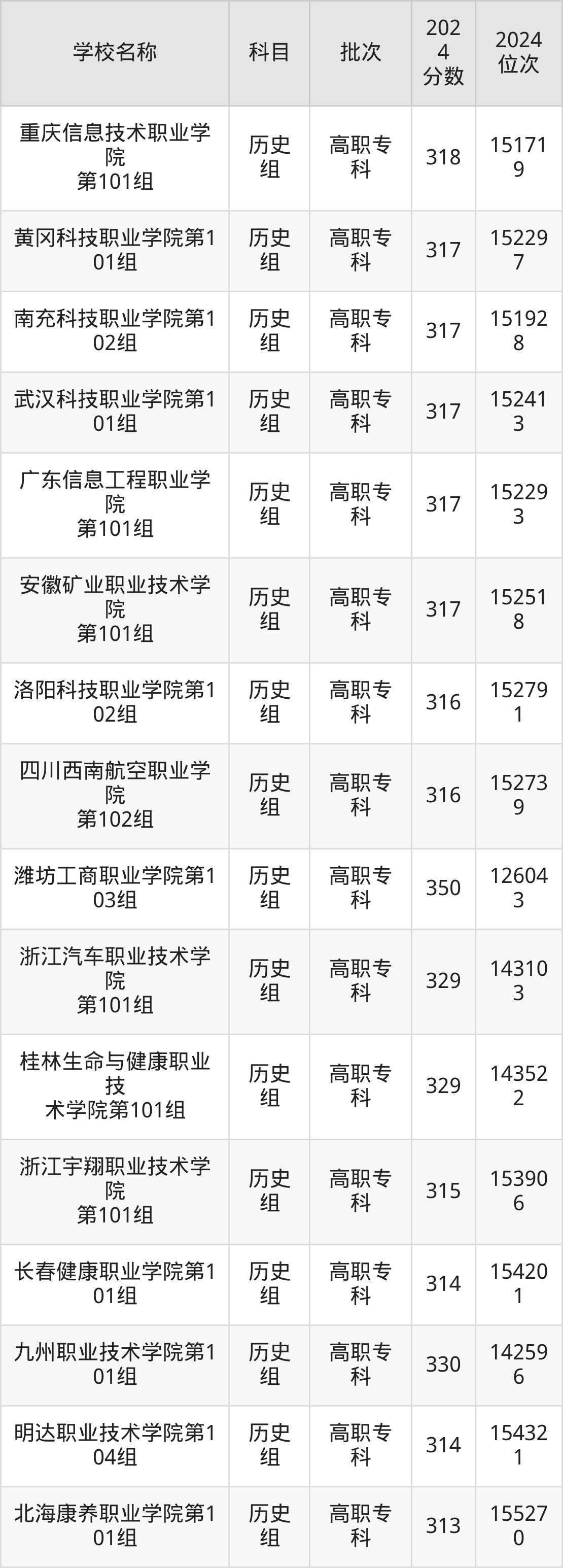 江西高考历史组共有79所民办专科学校在300到350分之间录取,包含潍坊工商职业学院、南充科技职业学院、黄山健康职业学院、武汉信息传播职业技术学院、武汉商贸职业学院、太湖创意职业技术学院、广州康大职业技术学院、北京培黎职业学院、明达职业技术学院、巴中职业技术学院。