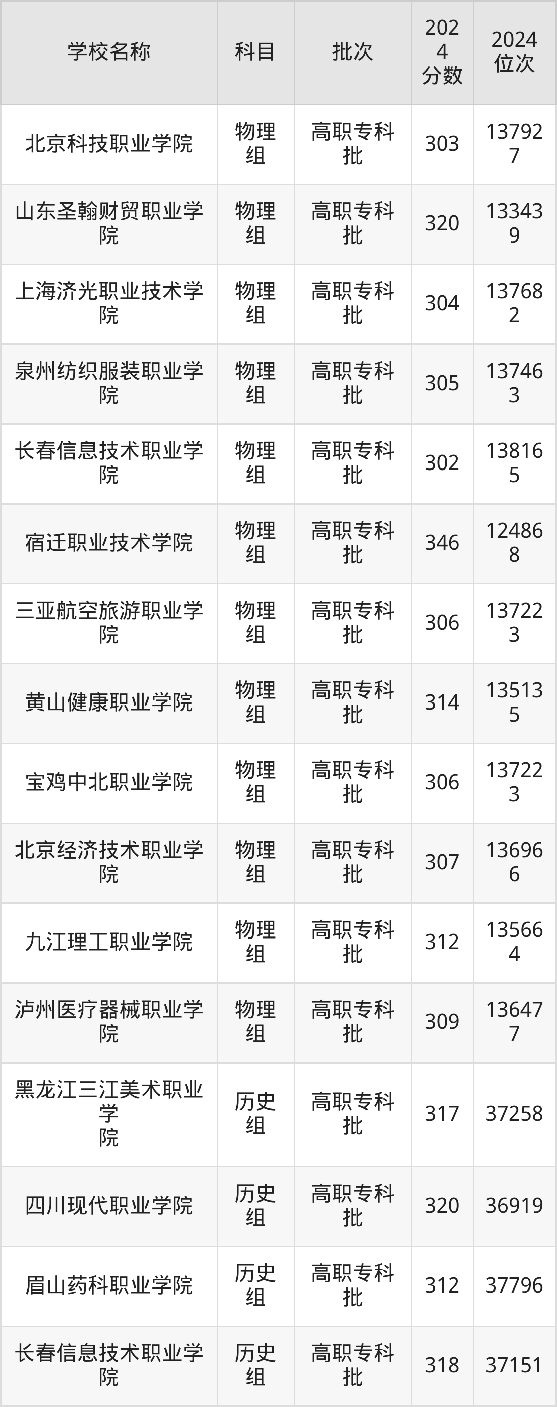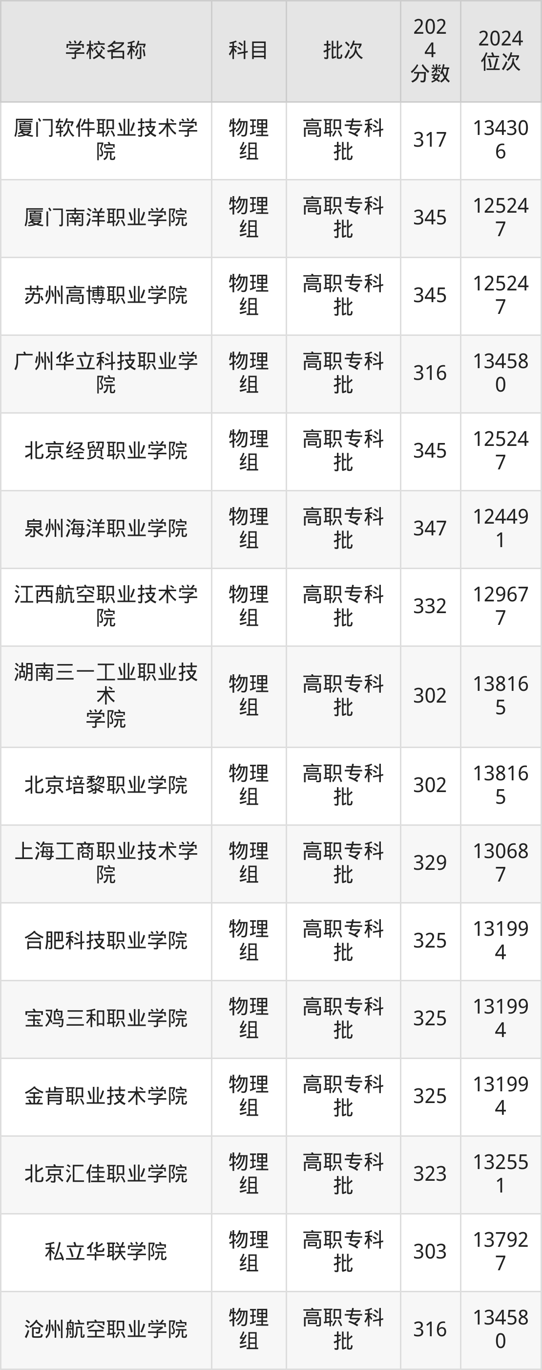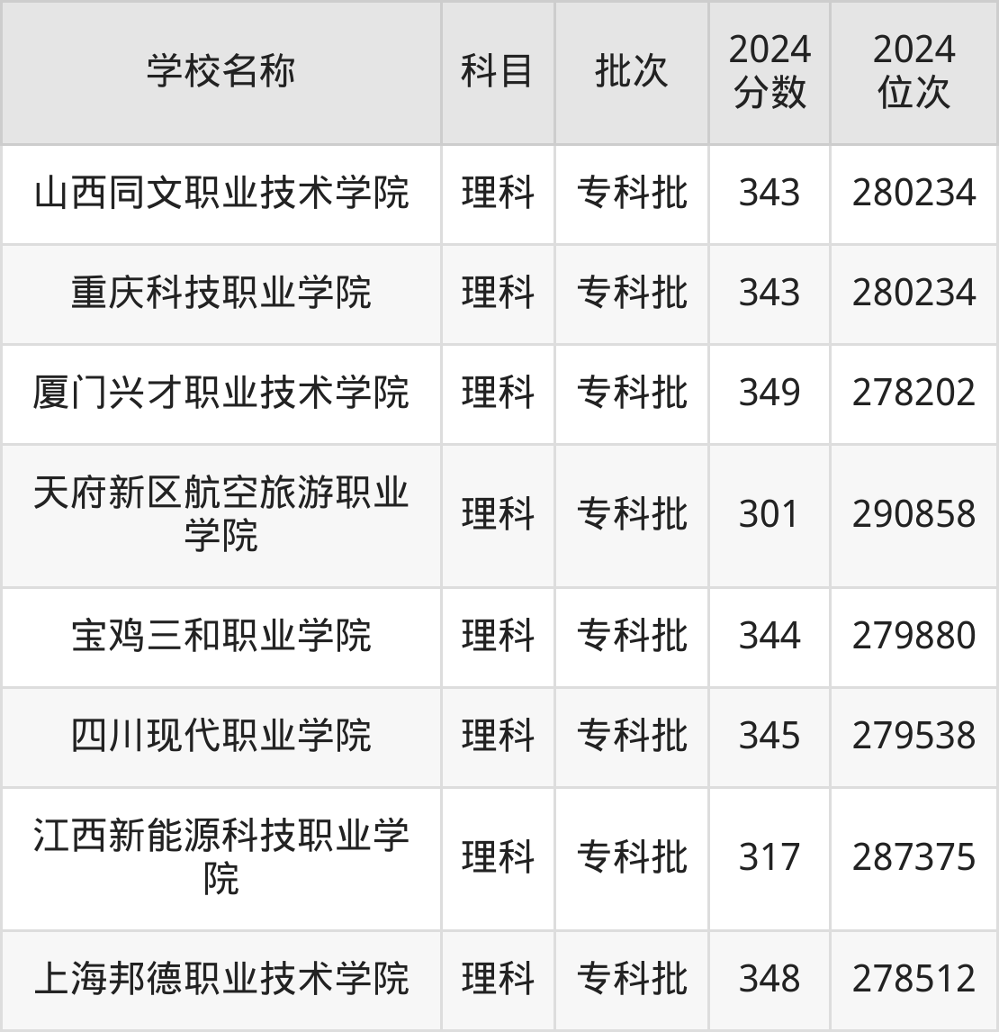 一、300到350分的民办专科学校最低分一览表