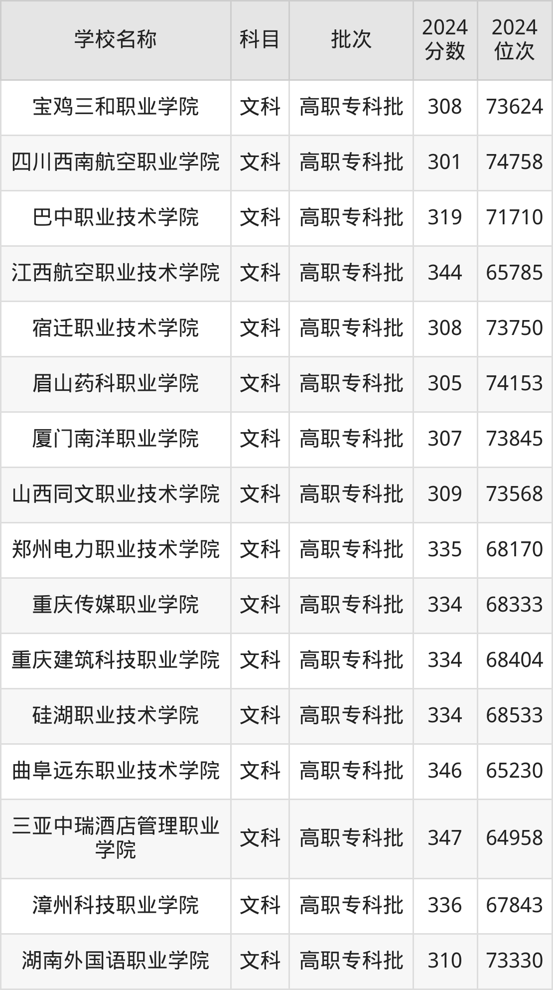 陕西高考文科共有25所民办专科学校在300到350分之间录取,包含三亚中瑞酒店管理职业学院、曲阜远东职业技术学院、江西航空职业技术学院、漳州科技职业学院、郑州电力职业技术学院、重庆传媒职业学院、重庆建筑科技职业学院、硅湖职业技术学院、郑州医药健康职业学院、上海济光职业技术学院。