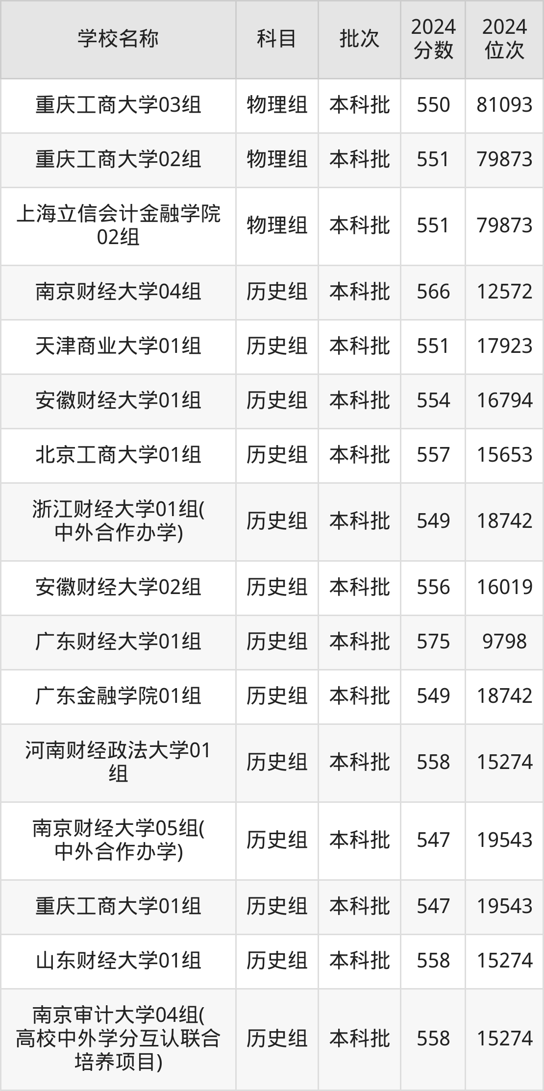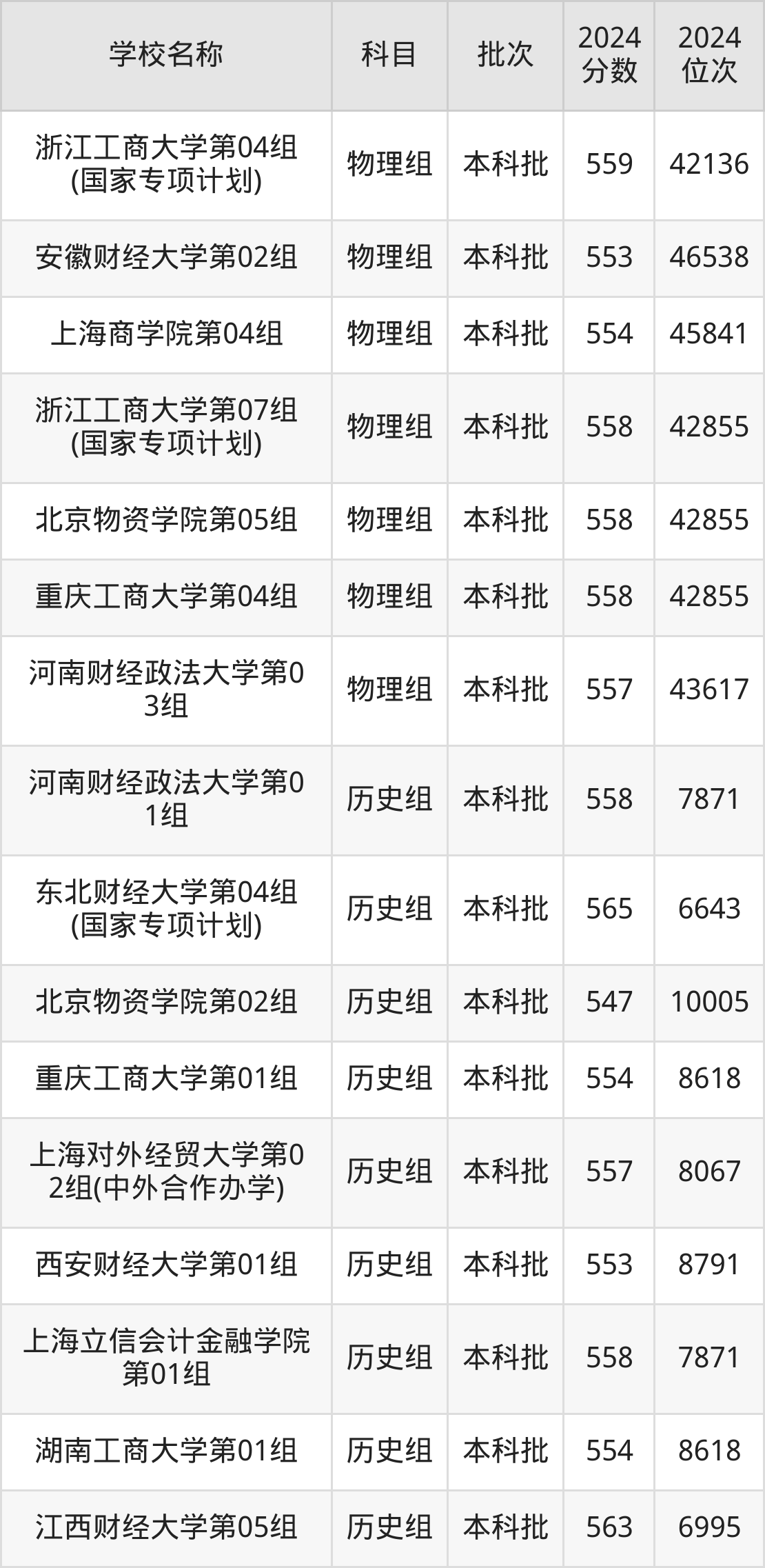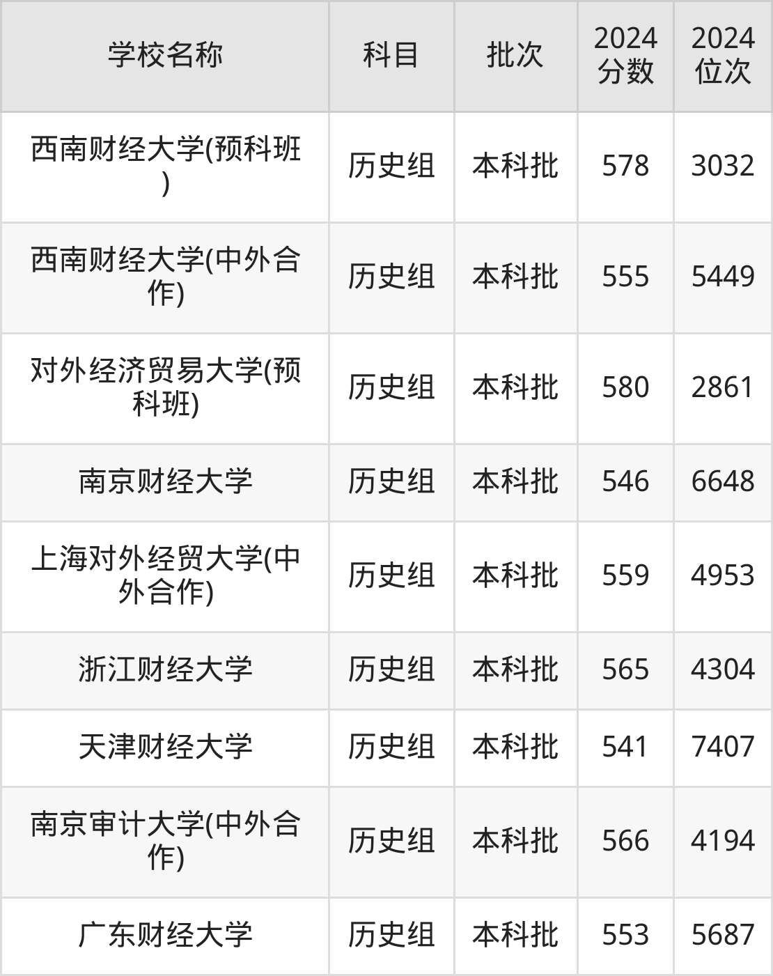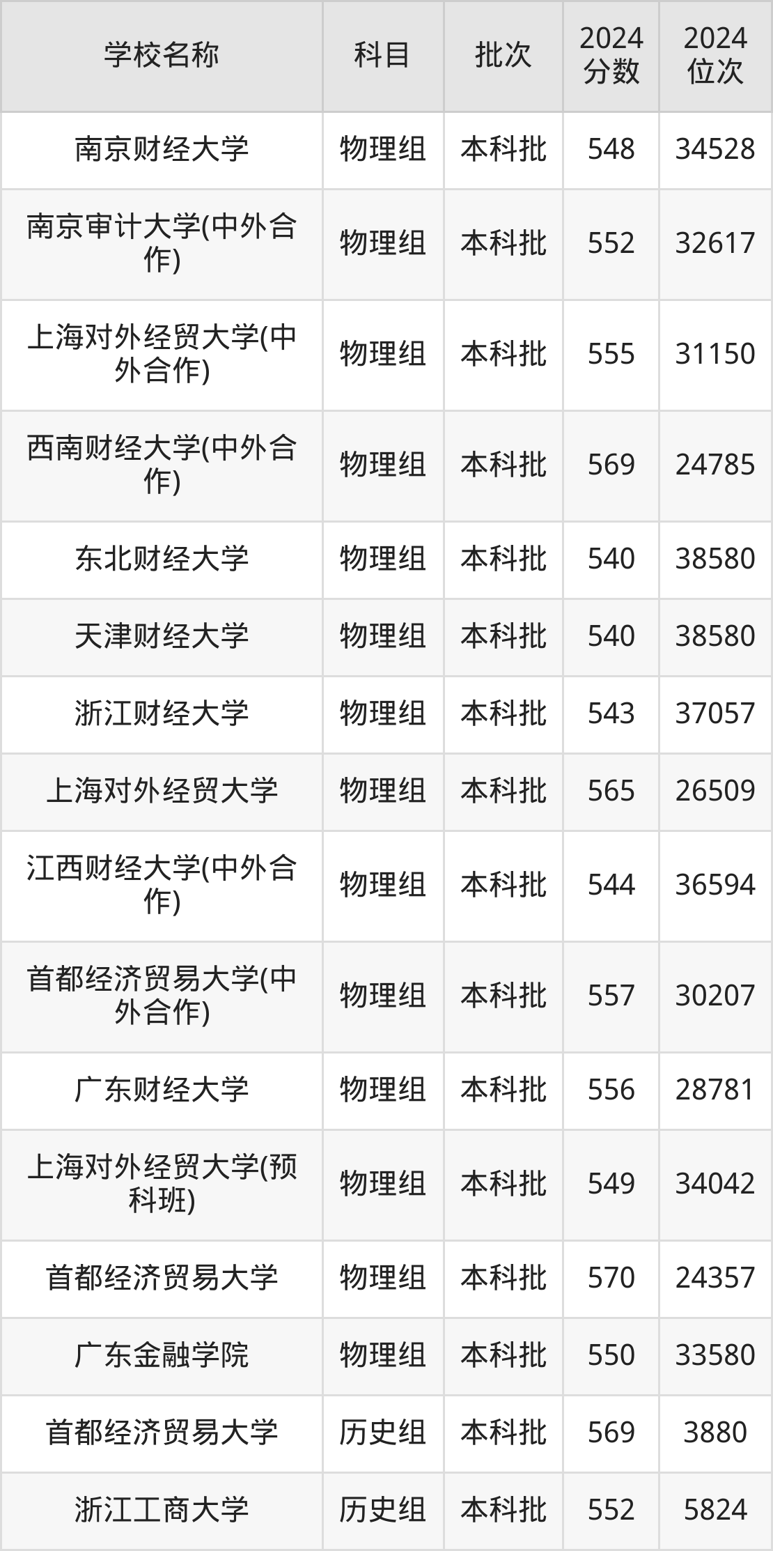 江苏高考历史组共有24所财经大学在540到580分之间录取,包含南京审计大学、江西财经大学、东北财经大学、广东财经大学、上海对外经贸大学、浙江财经大学、南京财经大学、浙江工商大学、天津财经大学、上海立信会计金融学院。