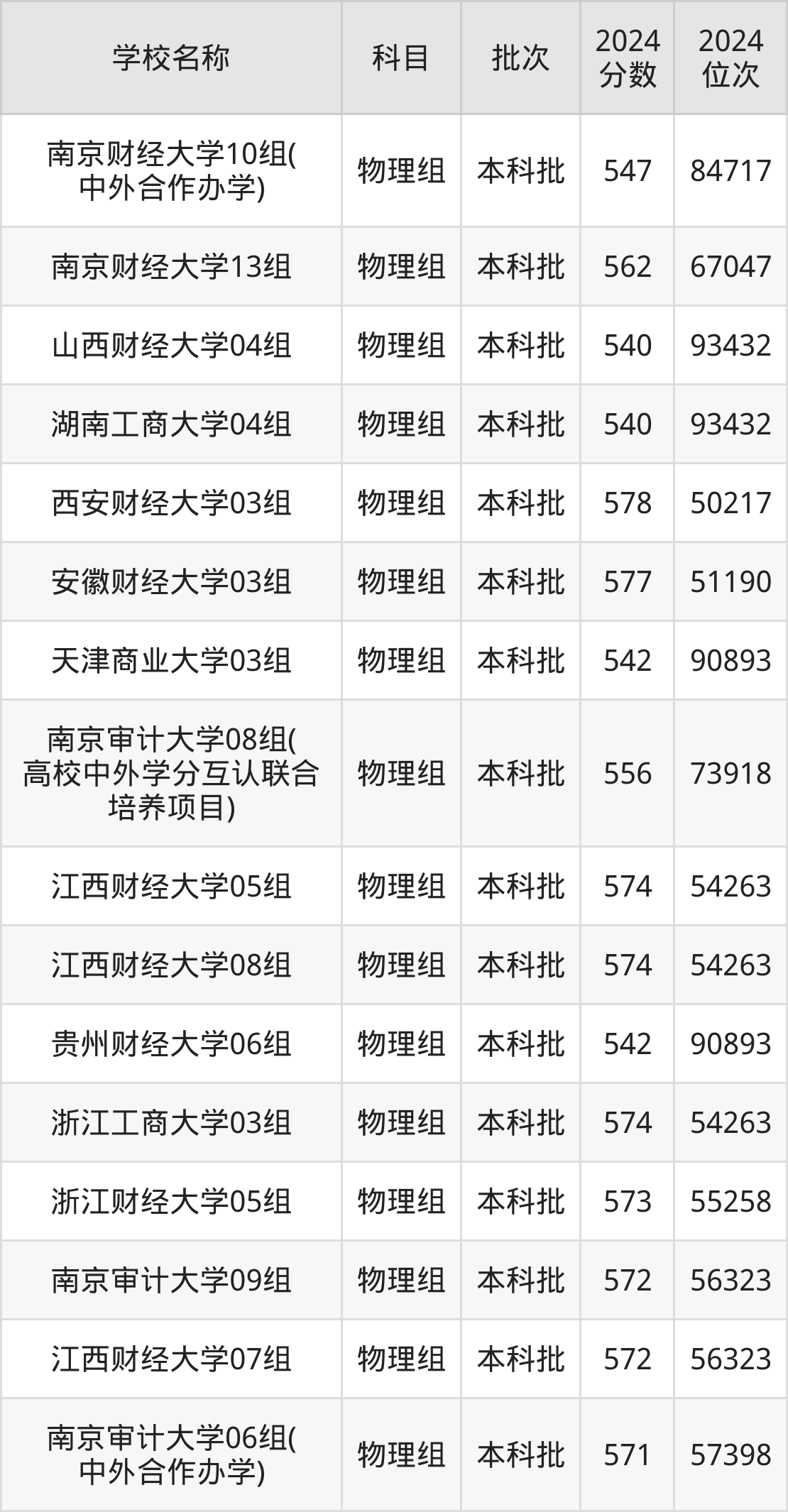 江苏高考物理组共有24所财经大学在540到580分之间录取,包含首都经济贸易大学、南京财经大学、西安财经大学、安徽财经大学、江西财经大学、浙江工商大学、浙江财经大学、南京审计大学、北京工商大学、天津财经大学。
