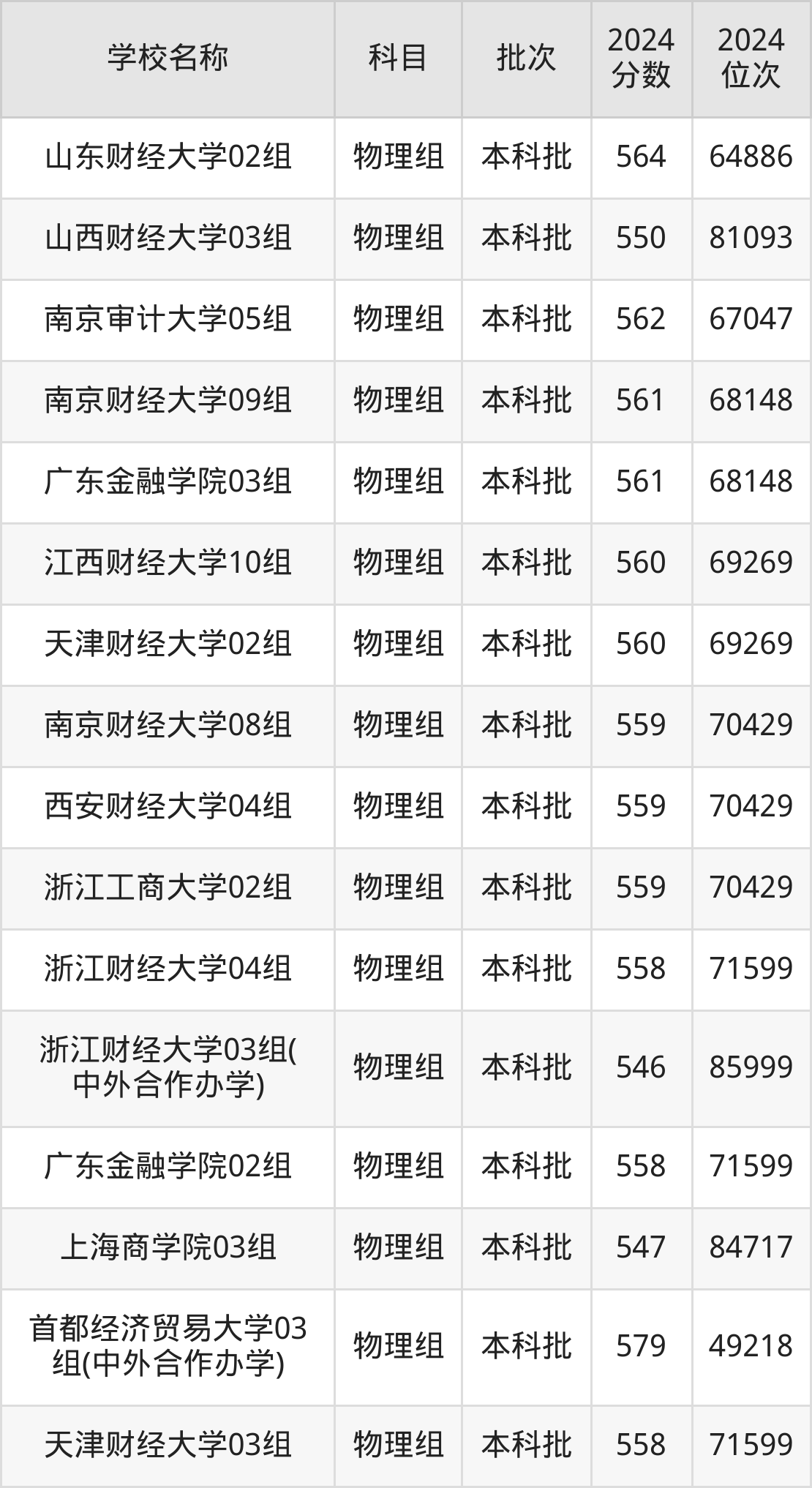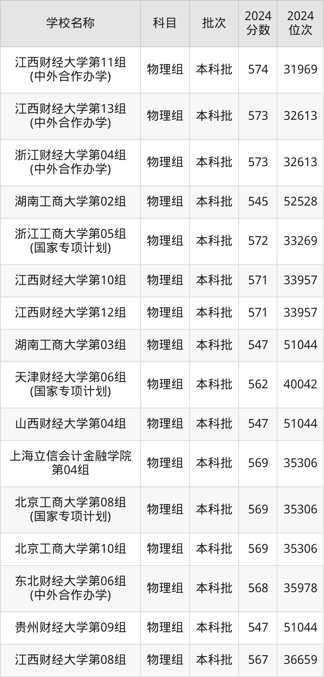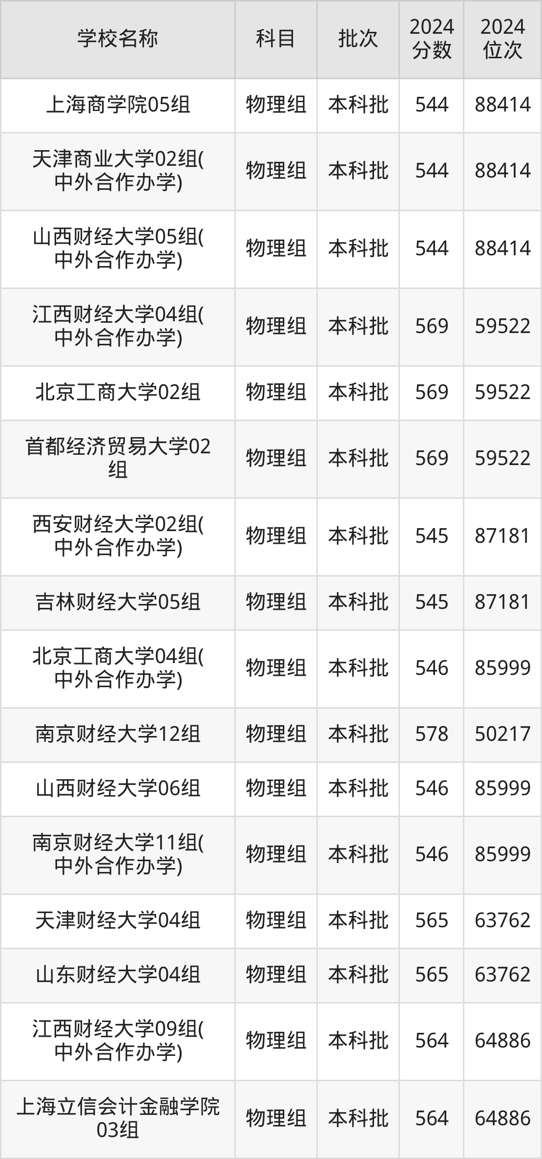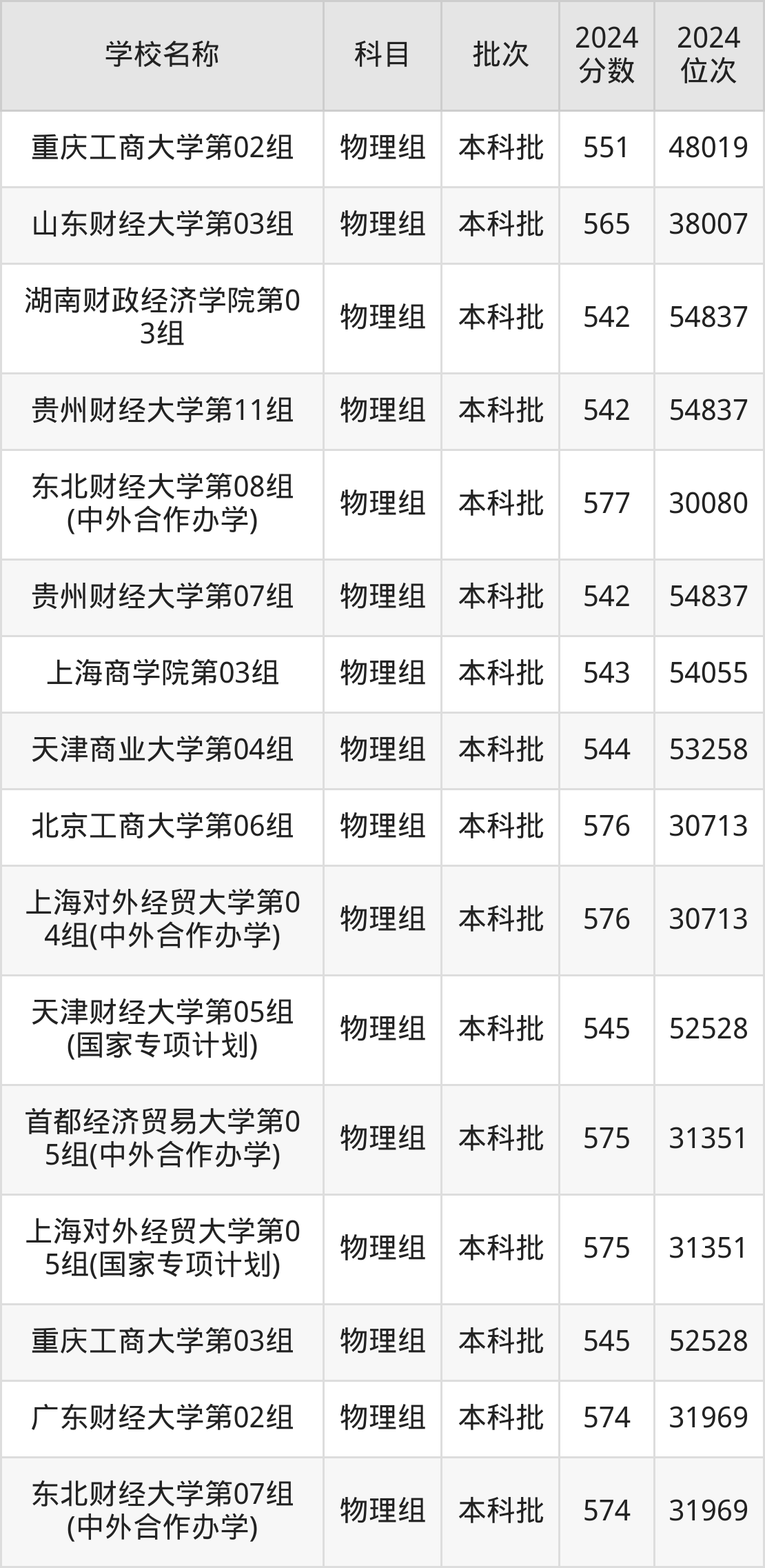 湖北高考物理组共有24所财经大学在540到580分之间录取,包含南京财经大学、江西财经大学、东北财经大学、北京工商大学、上海对外经贸大学、首都经济贸易大学、广东财经大学、浙江财经大学、浙江工商大学、上海立信会计金融学院。
