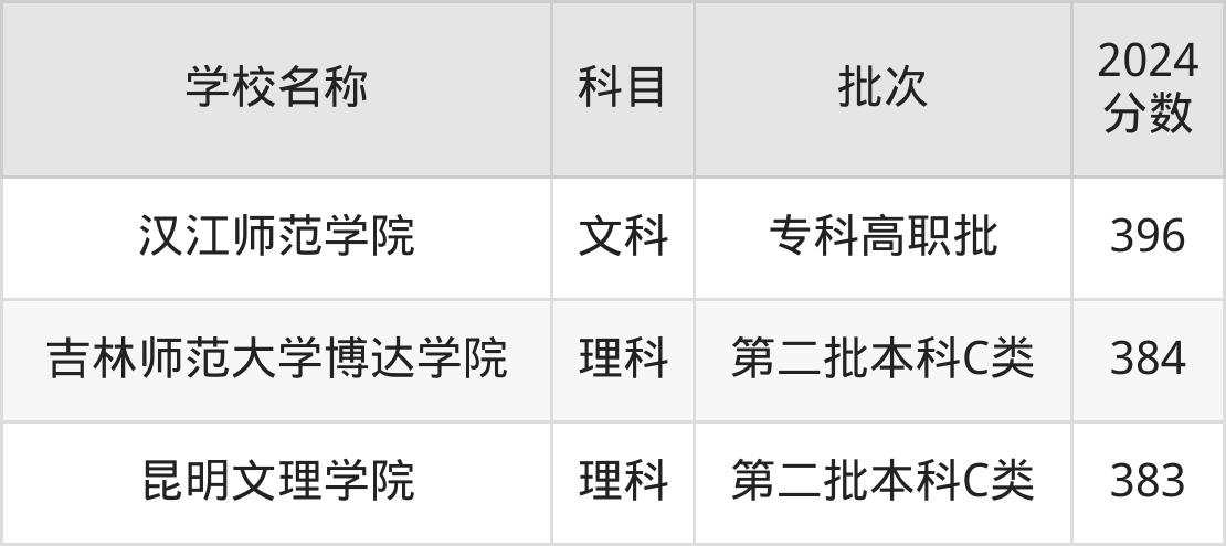 山西高考理科共有2所二本师范大学在380到400分之间录取,包含吉林师范大学博达学院、昆明文理学院。
