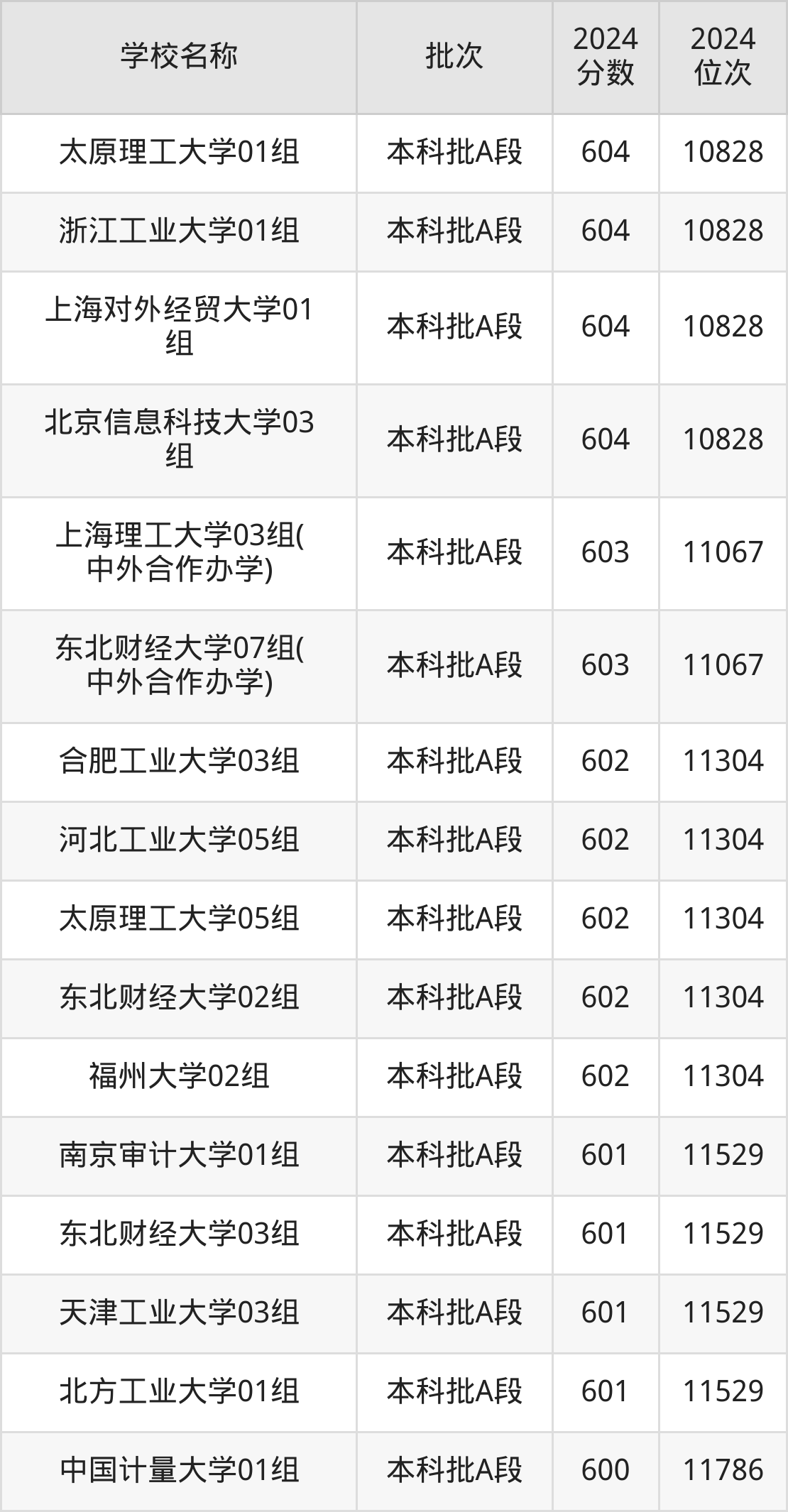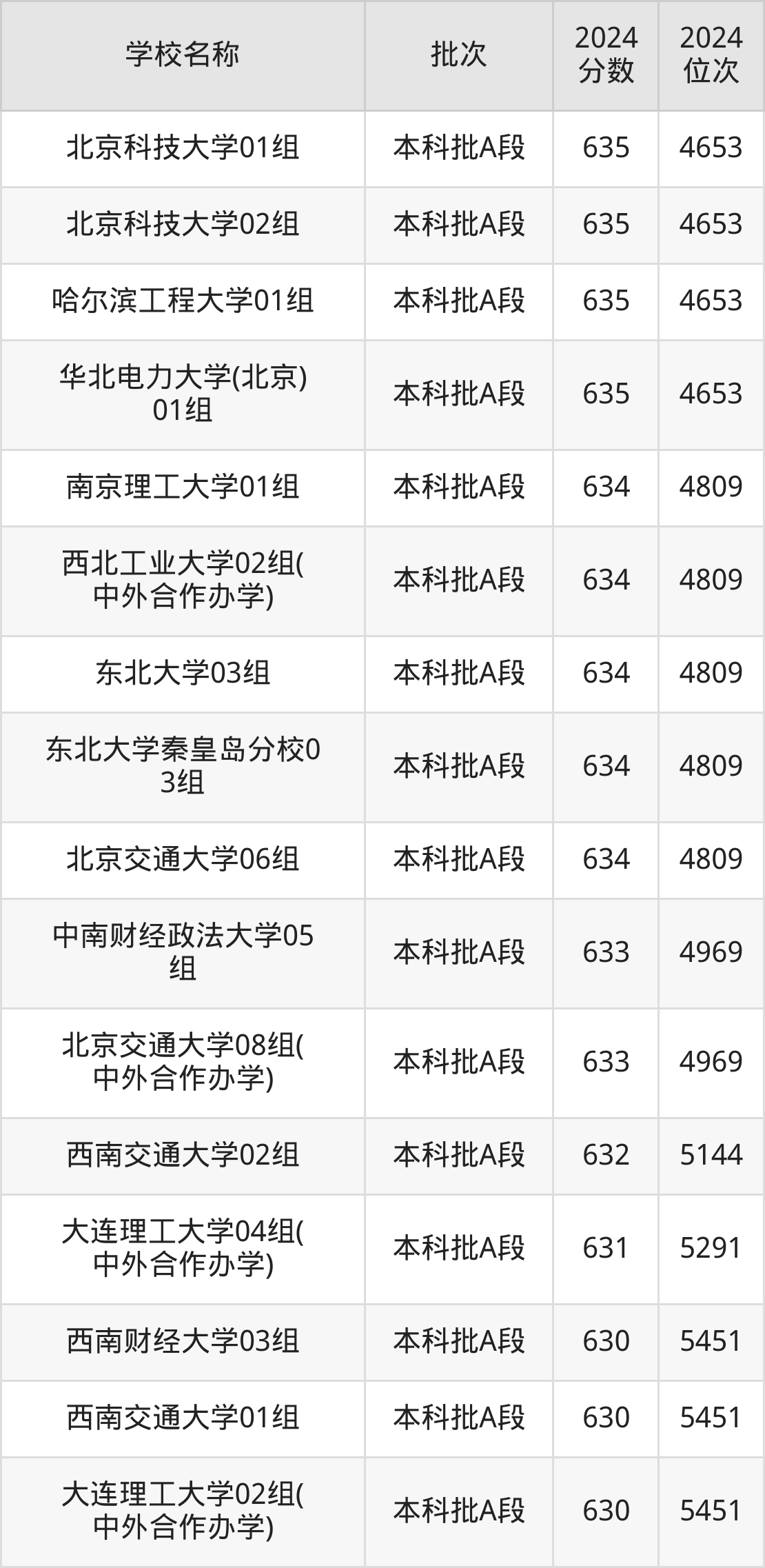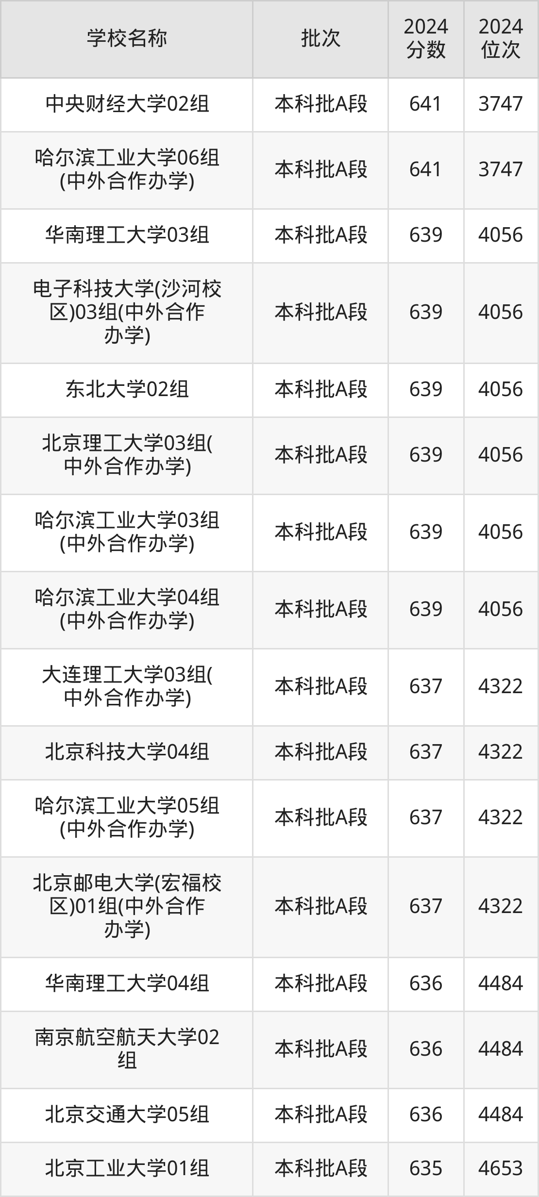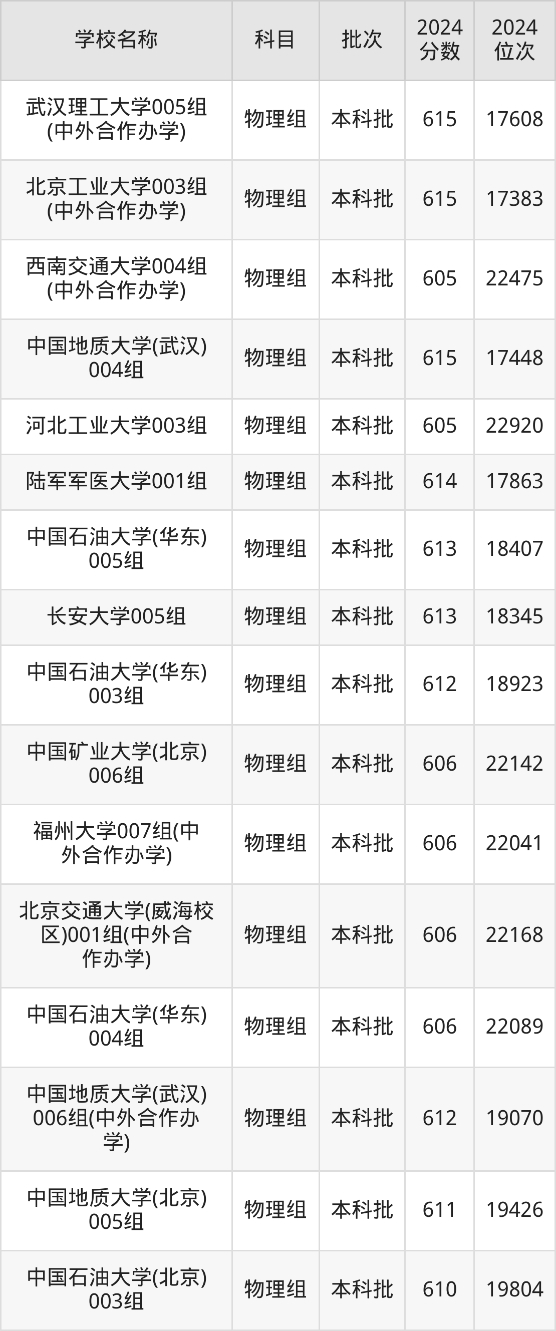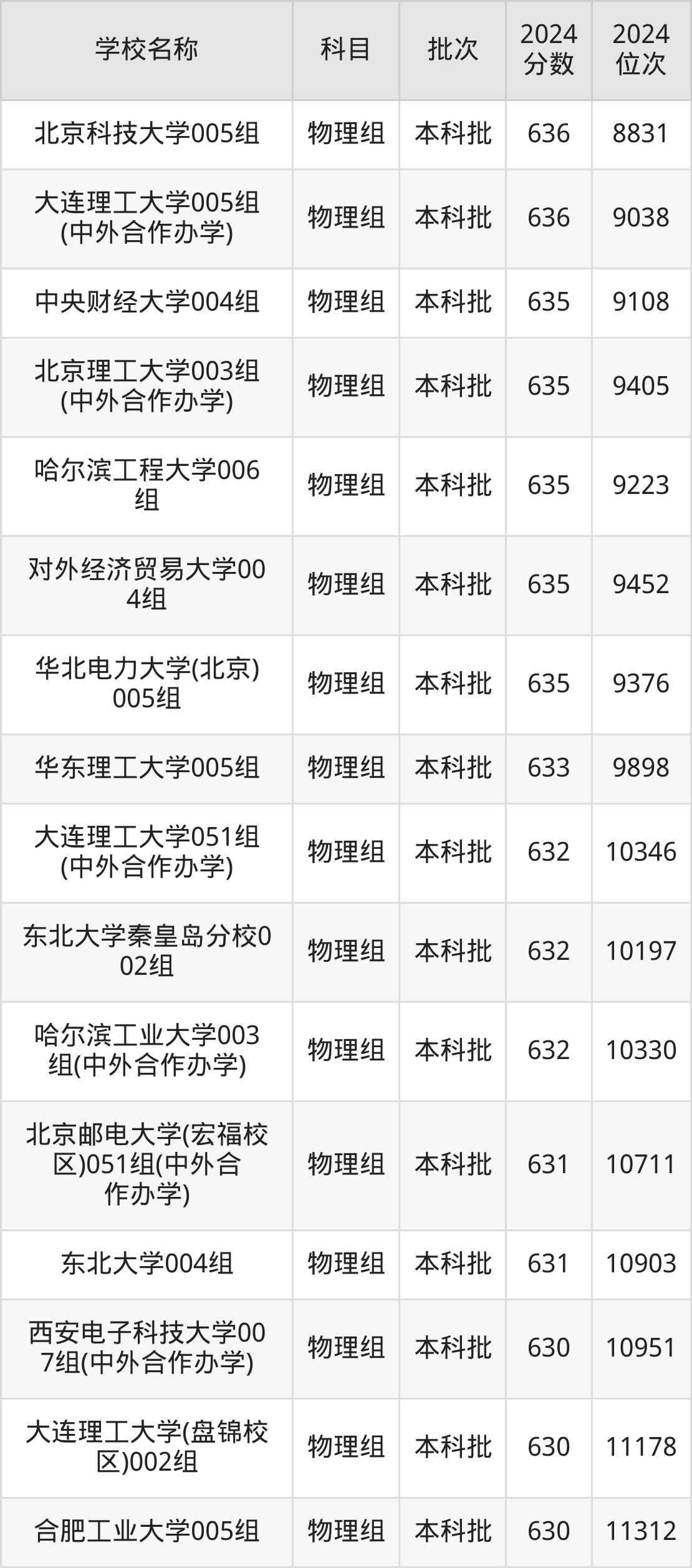 安徽高考物理组共有53所理科大学在600到650分之间录取,包含华南理工大学、北京交通大学、哈尔滨工业大学(威海)、海军军医大学、哈尔滨工业大学、西安电子科技大学、电子科技大学(沙河校区)、上海财经大学、哈尔滨工程大学、武汉理工大学。
