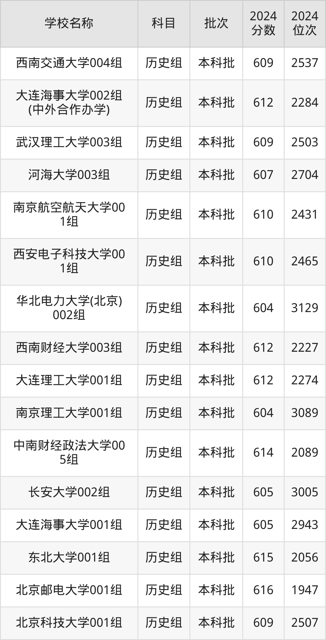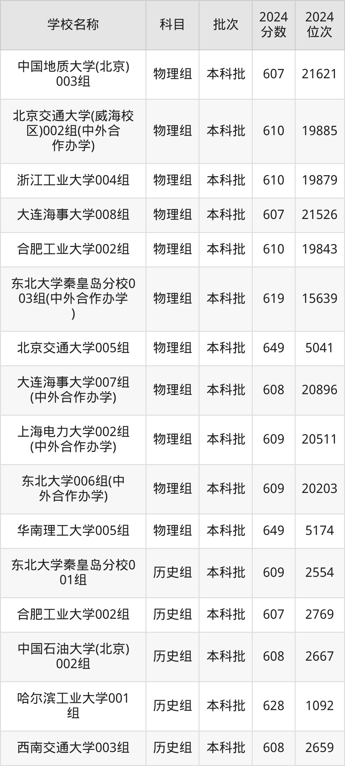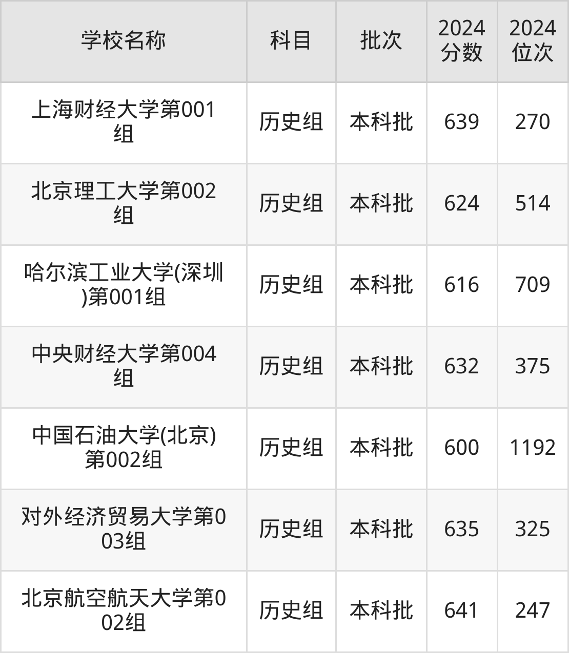 黑龙江高考历史组共有15所理科大学在600到650分之间录取,包含北京航空航天大学、上海财经大学、对外经济贸易大学、中央财经大学、北京理工大学、哈尔滨工业大学、天津大学、哈尔滨工业大学(深圳)、哈尔滨工业大学(威海)、大连海事大学。