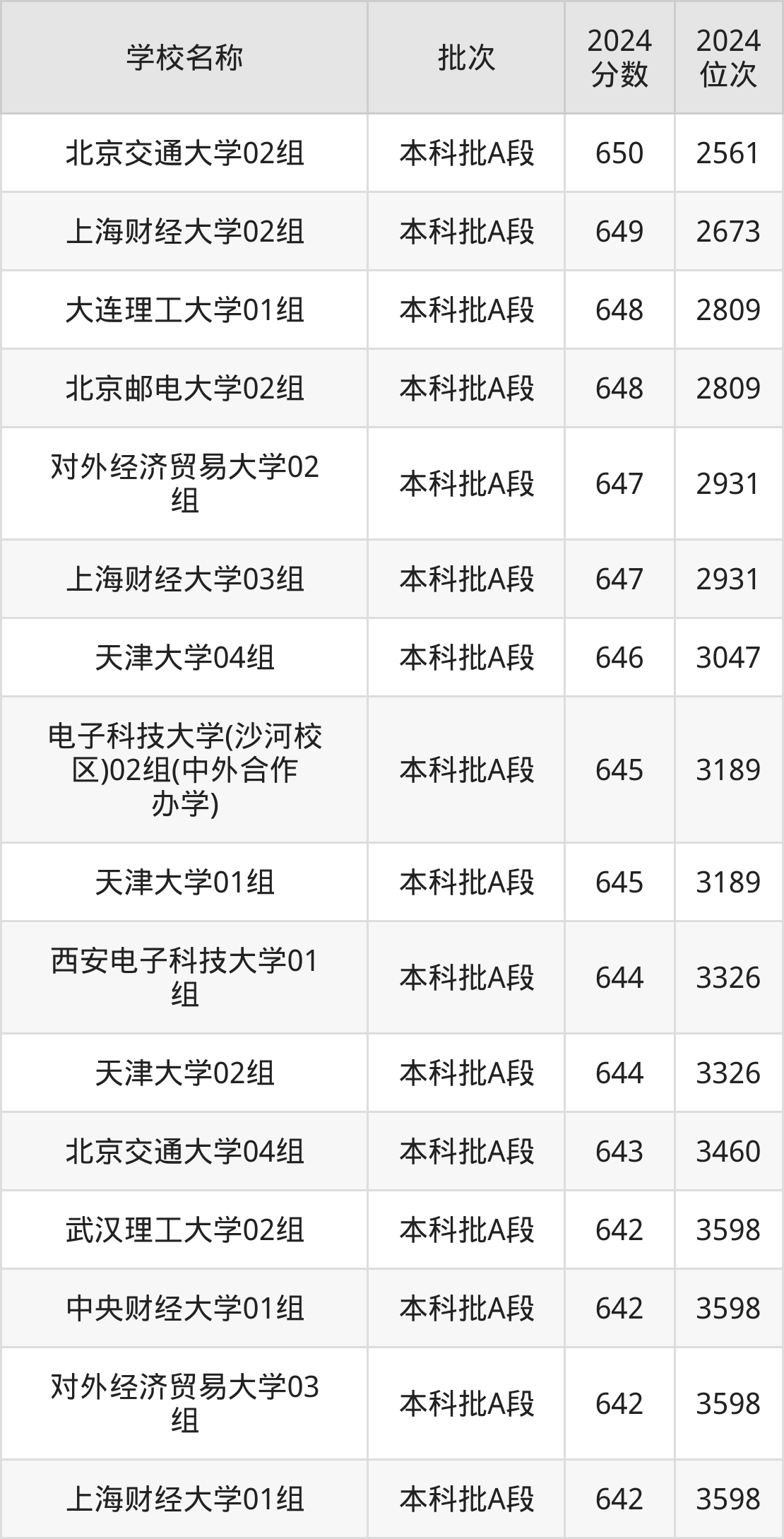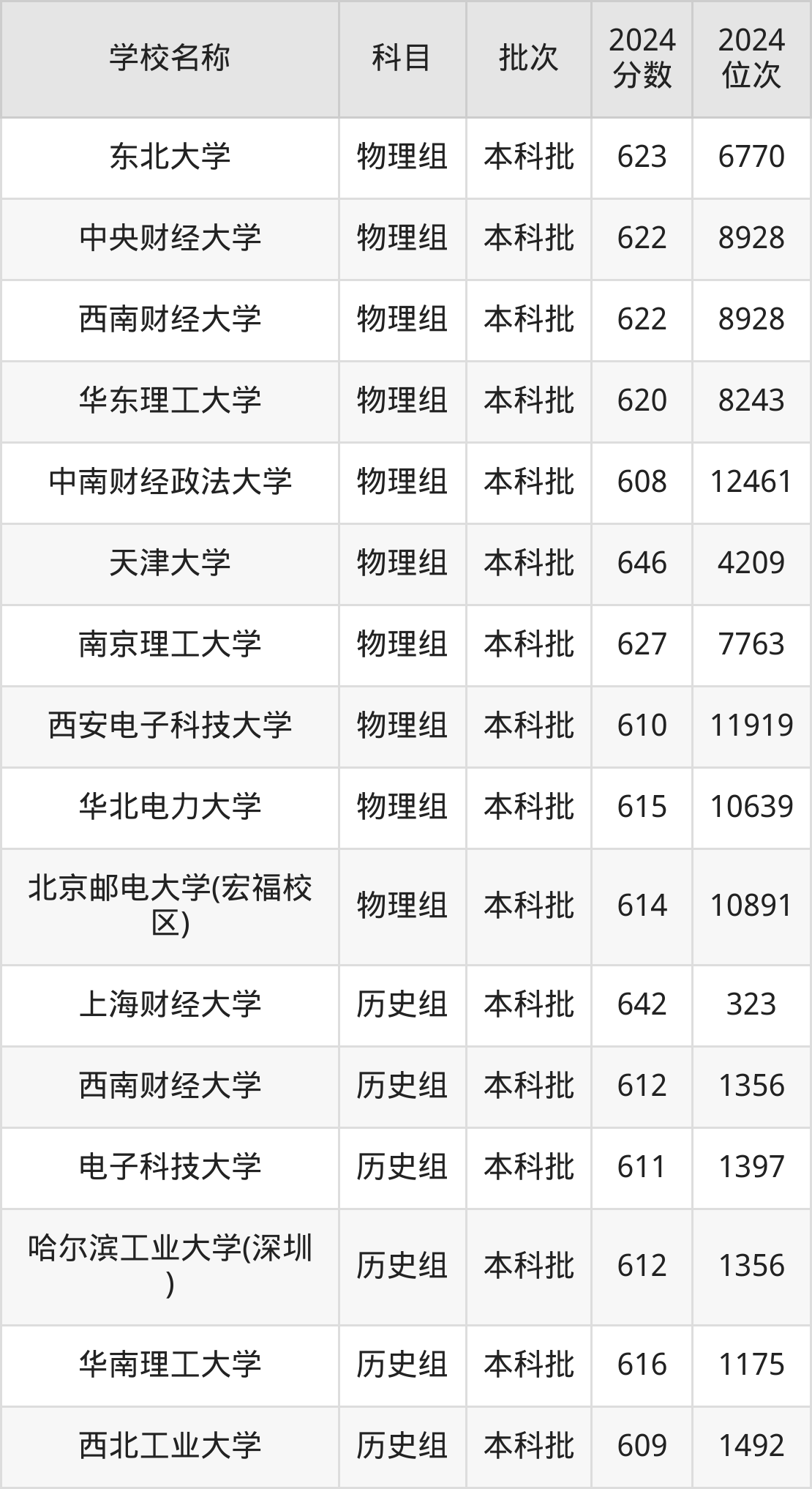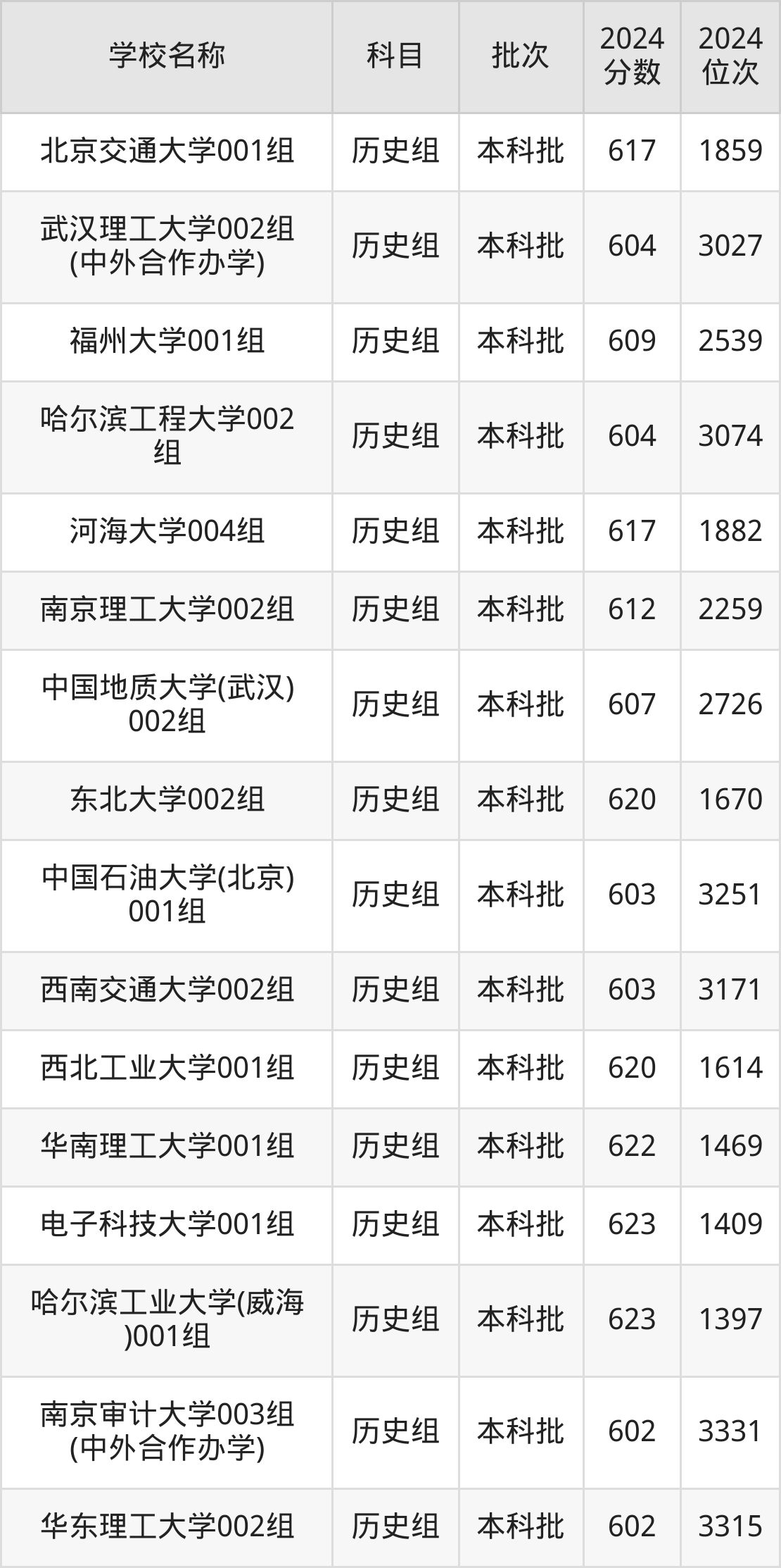 安徽高考历史组共有38所理科大学在600到650分之间录取,包含北京航空航天大学、北京理工大学、上海财经大学、天津大学、哈尔滨工业大学、哈尔滨工业大学(深圳)、对外经济贸易大学、中央财经大学、哈尔滨工业大学(威海)、电子科技大学。