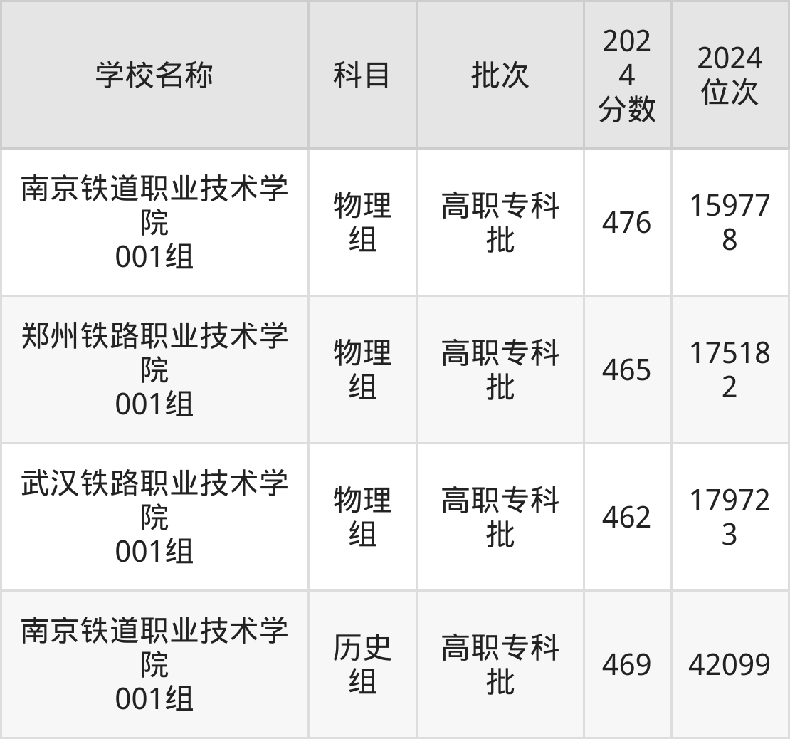 江西高考物理组共有1所铁路专科学校在460到480分之间录取,包含南京铁道职业技术学院。