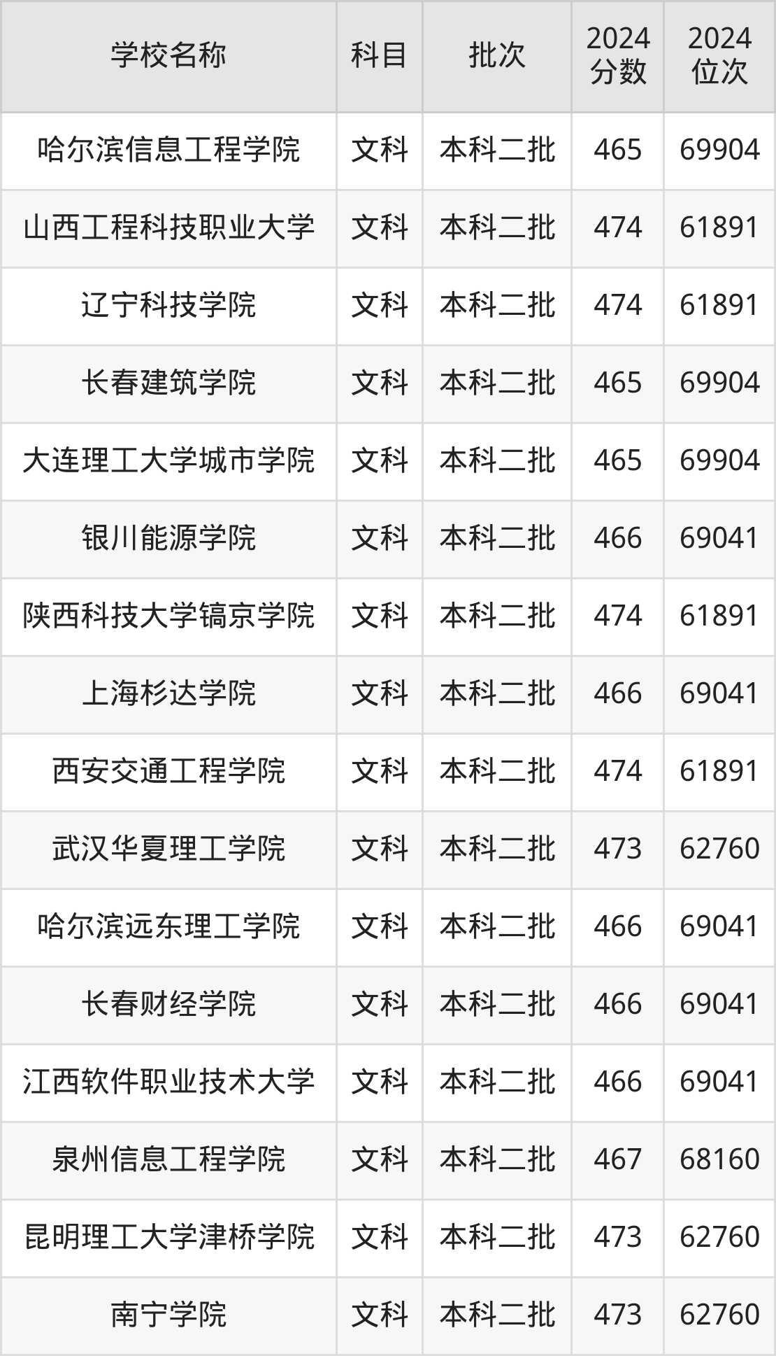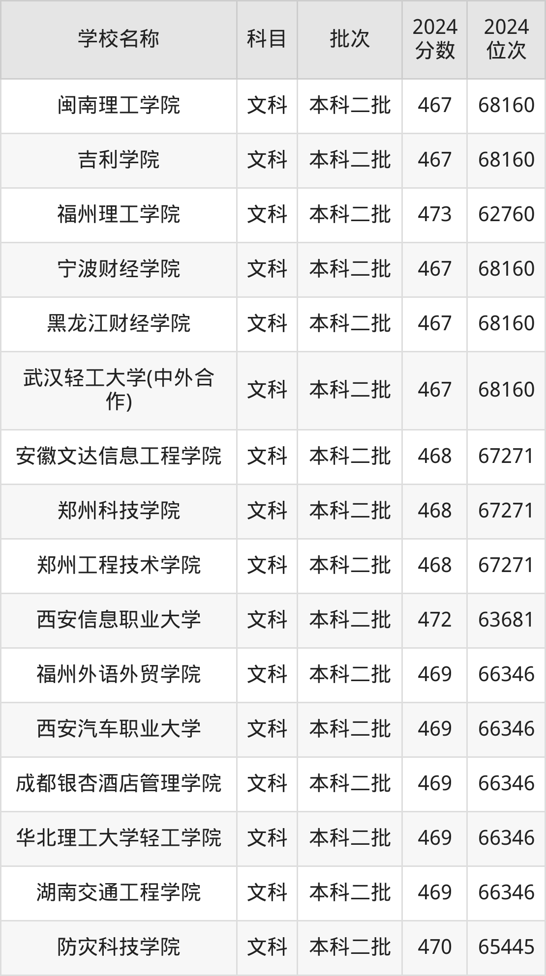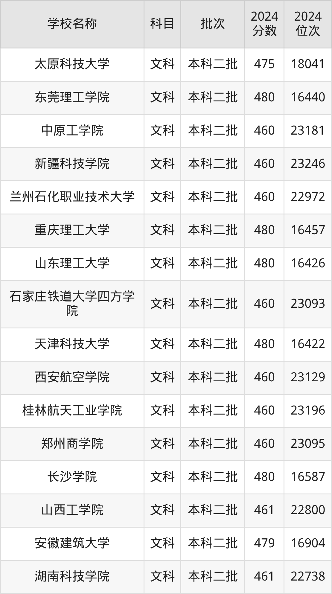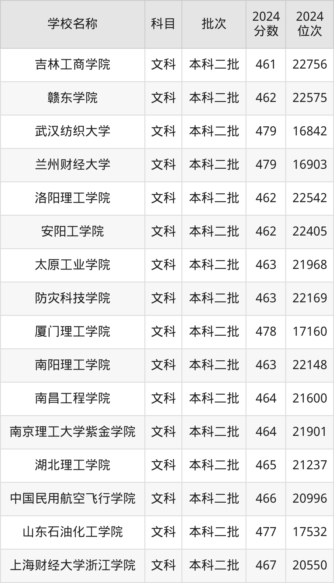 陕西高考文科共有62所理科大学在460到480分之间录取,包含吉林财经大学、东莞理工学院、重庆理工大学、山东理工大学、天津科技大学、长沙学院、安徽建筑大学、武汉纺织大学、兰州财经大学、厦门理工学院。