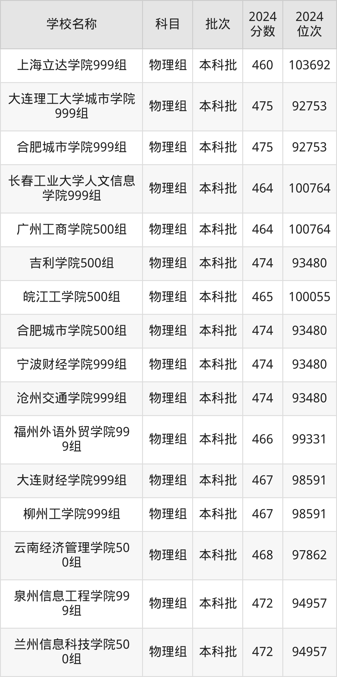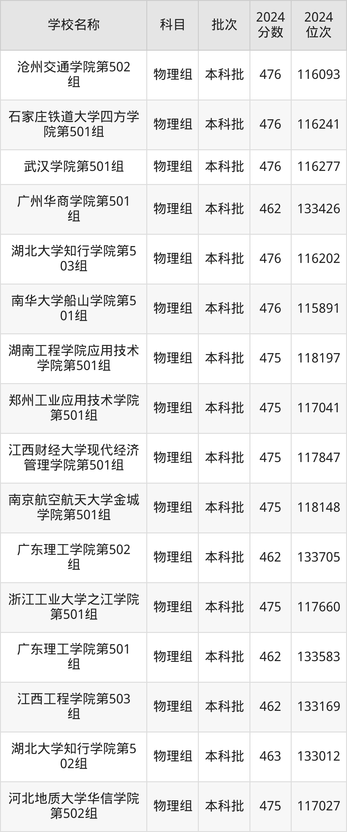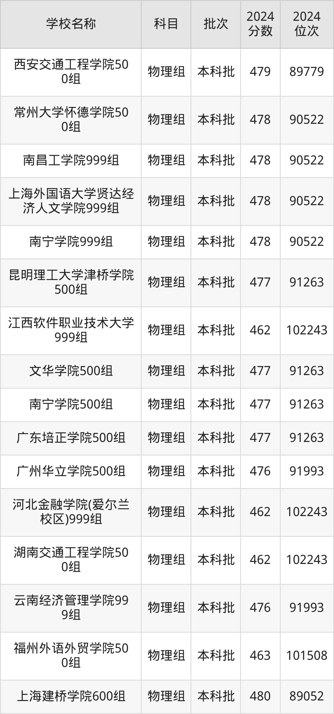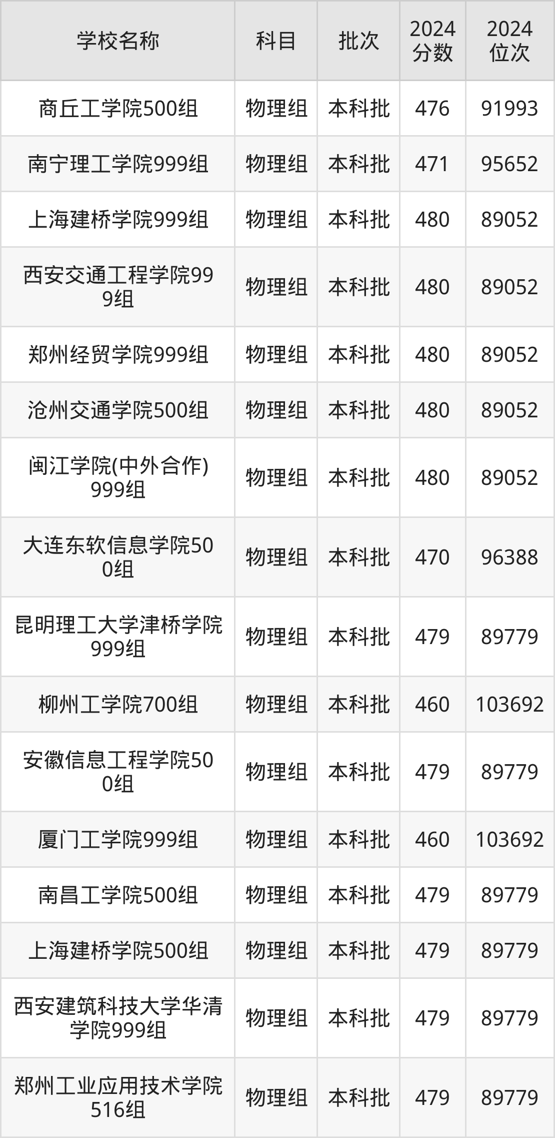 福建高考物理组共有43所理科大学在460到480分之间录取,包含上海建桥学院、西安交通工程学院、郑州经贸学院、沧州交通学院、闽江学院(中外合作)、昆明理工大学津桥学院、安徽信息工程学院、南昌工学院、西安建筑科技大学华清学院、郑州工业应用技术学院。