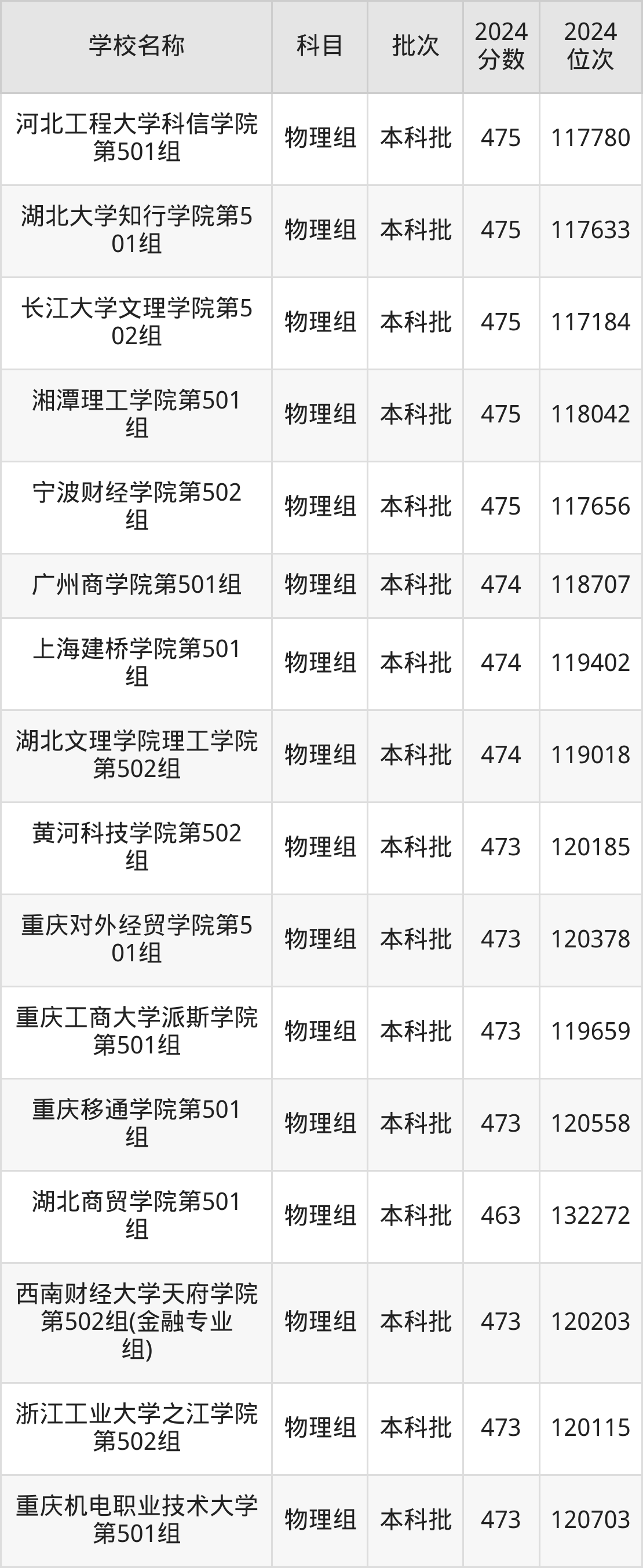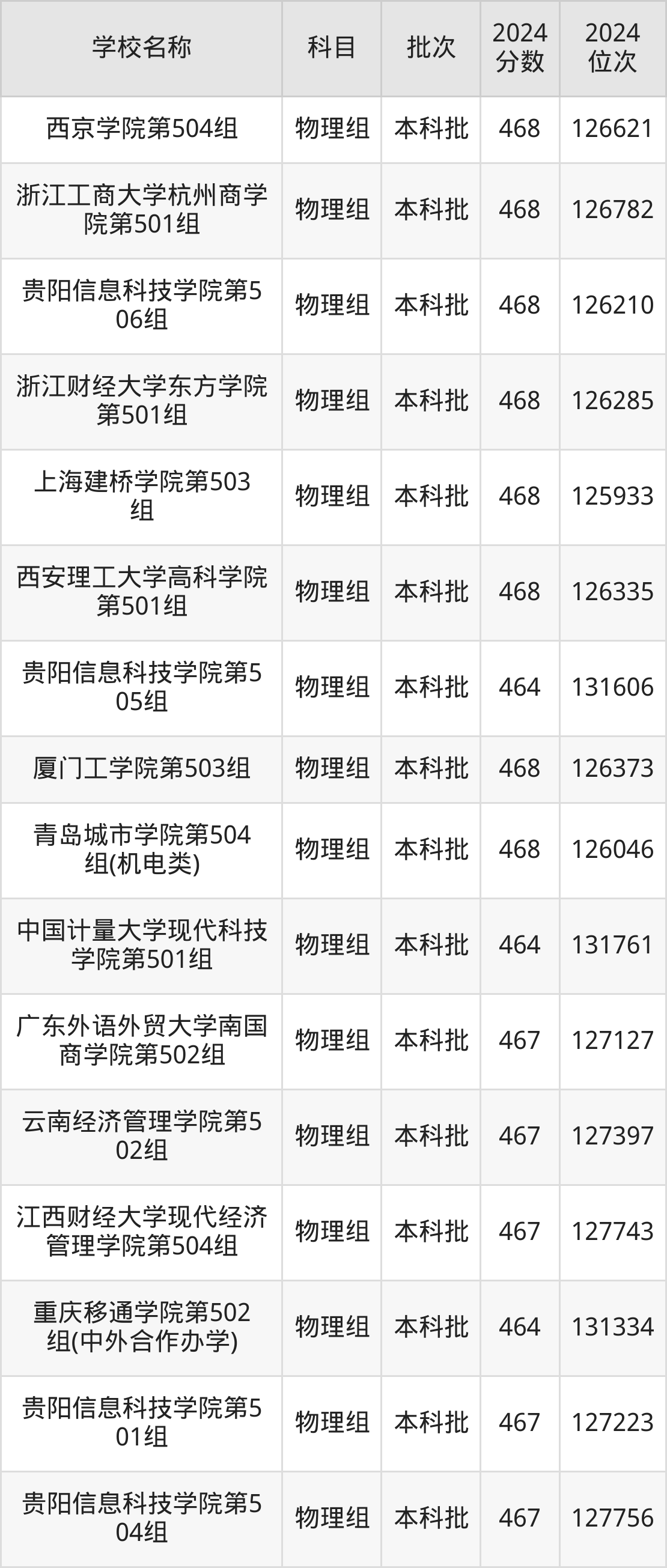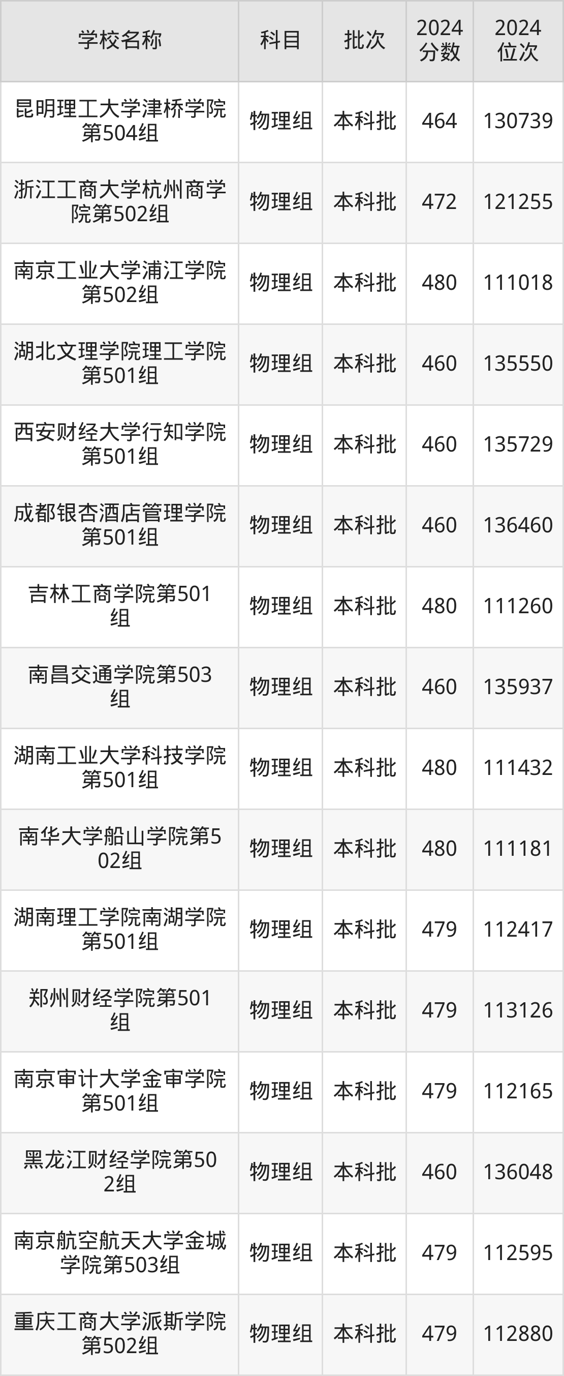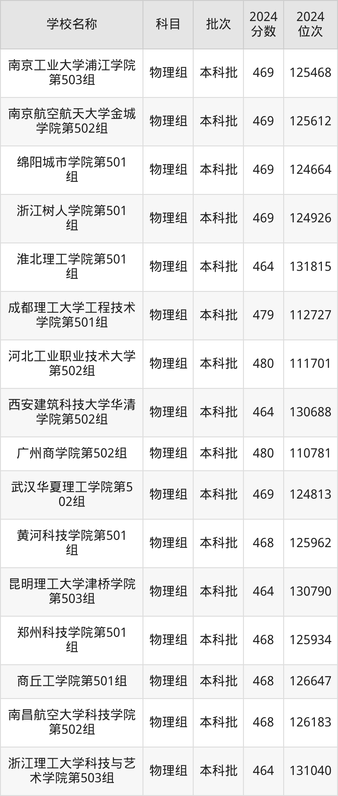 福建高考物理组共有43所理科大学在460到480分之间录取,包含上海建桥学院、西安交通工程学院、郑州经贸学院、沧州交通学院、闽江学院(中外合作)、昆明理工大学津桥学院、安徽信息工程学院、南昌工学院、西安建筑科技大学华清学院、郑州工业应用技术学院。