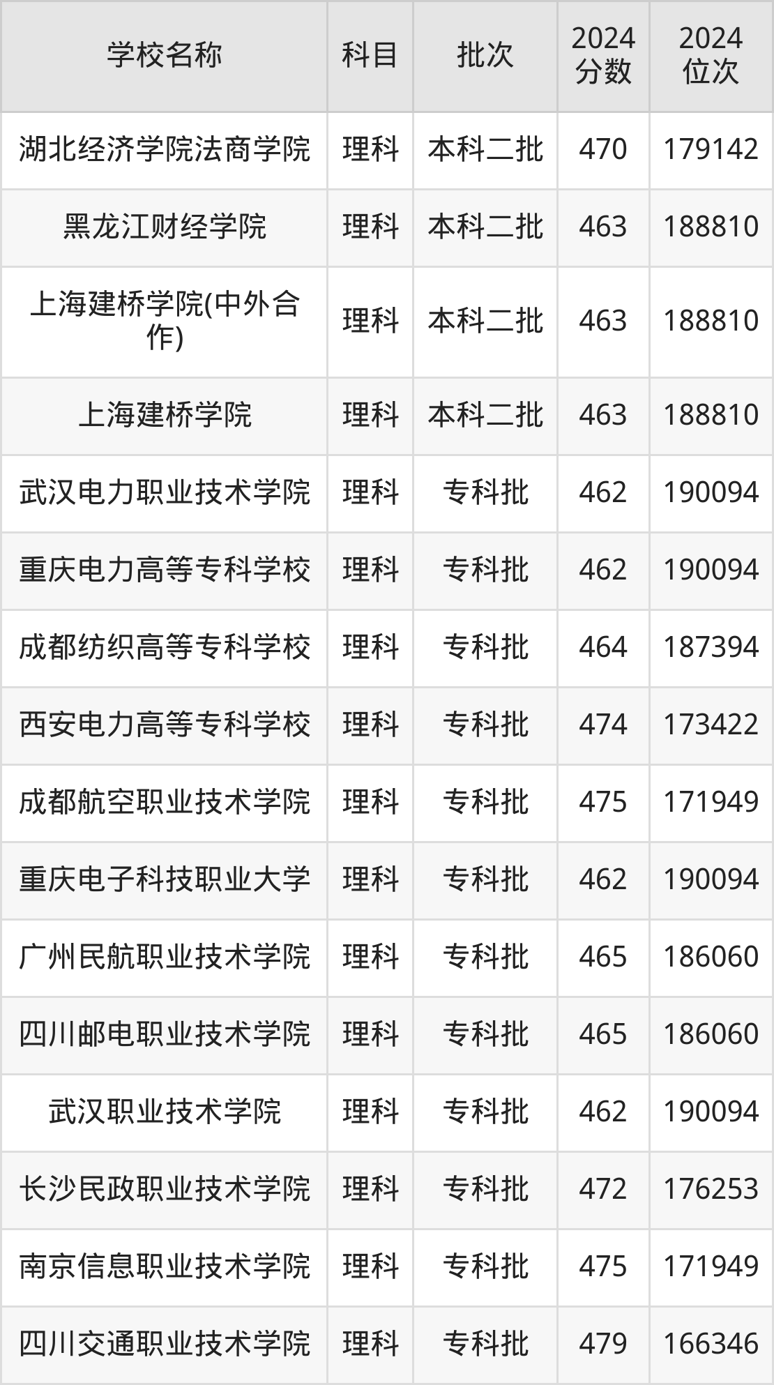 四川高考理科共有123所理科大学在460到480分之间录取,包含武汉工程大学邮电与信息工程学院、西安理工大学高科学院、深圳信息职业技术学院、成都东软学院、郑州财经学院、广东轻工职业技术大学、安徽信息工程学院、山西晋中理工学院、四川交通职业技术学院、西安财经大学行知学院。