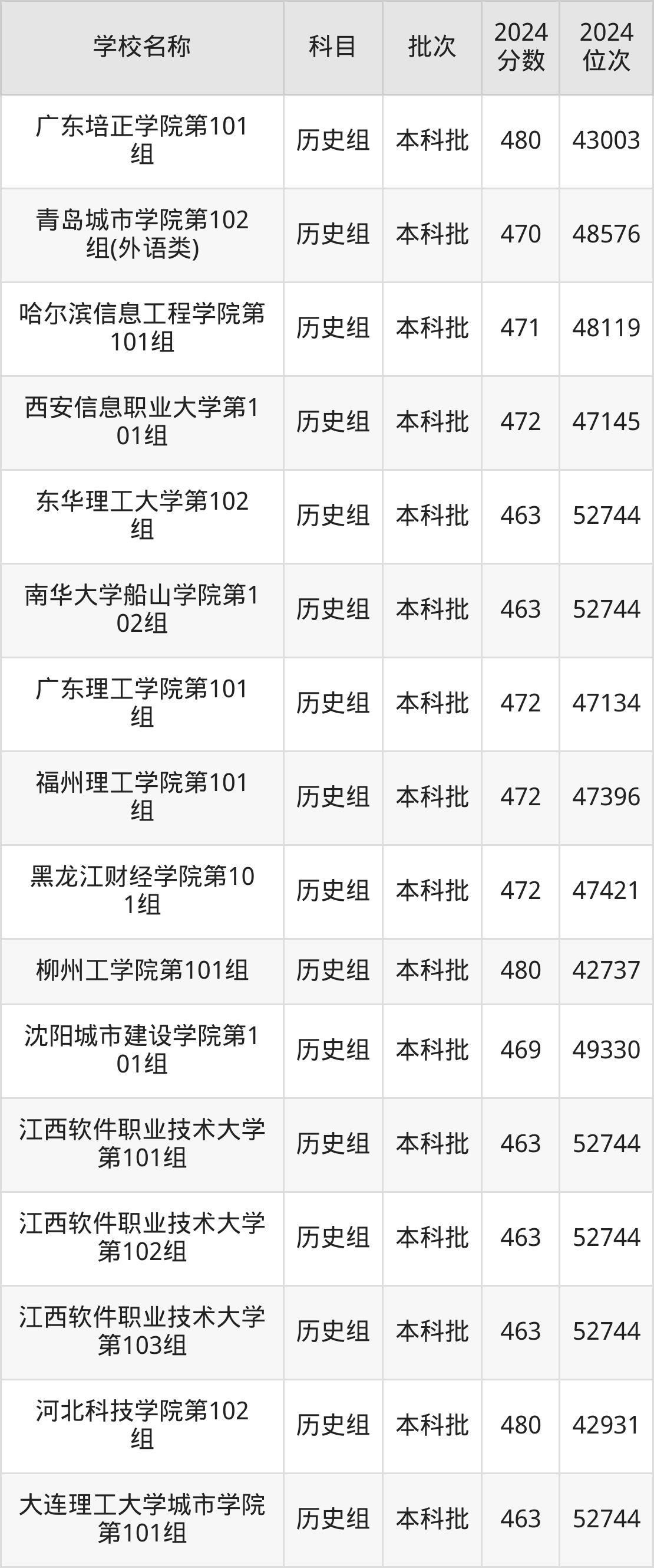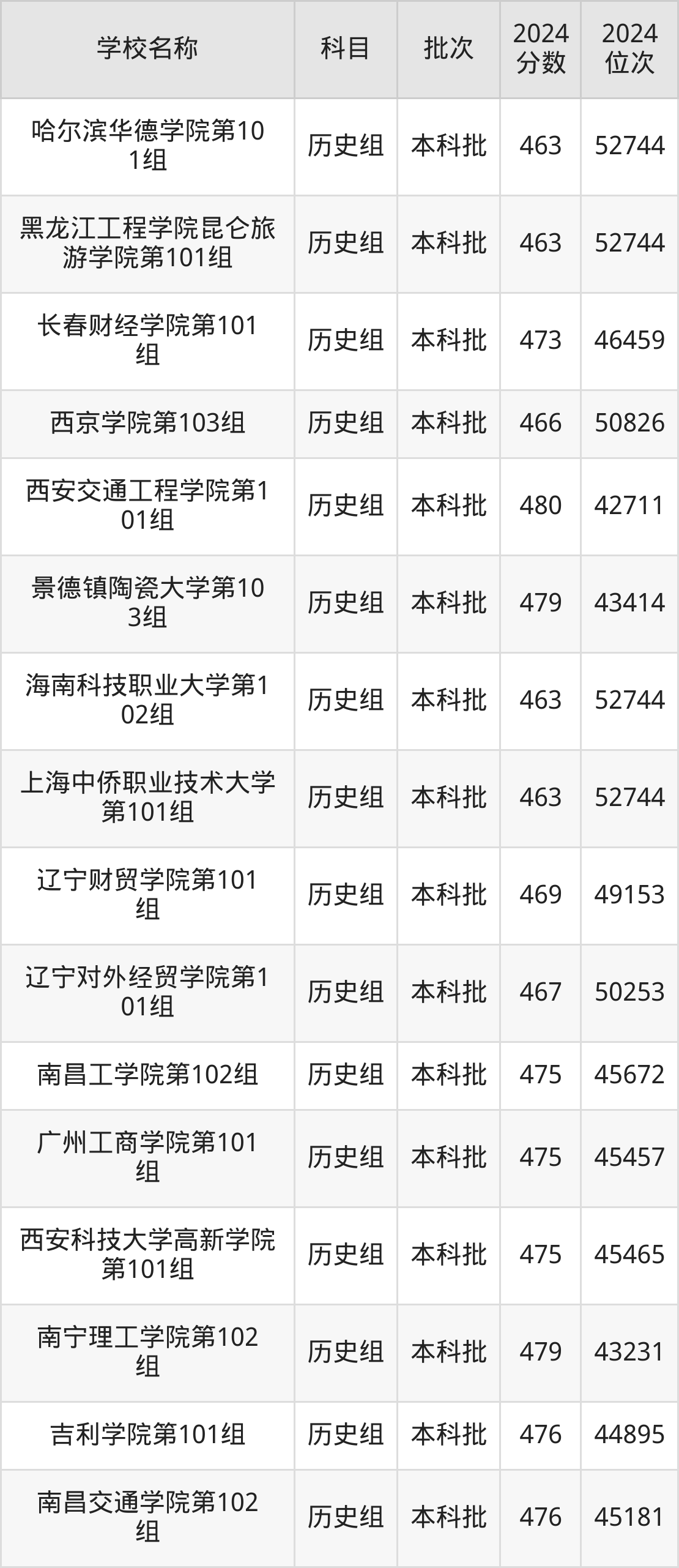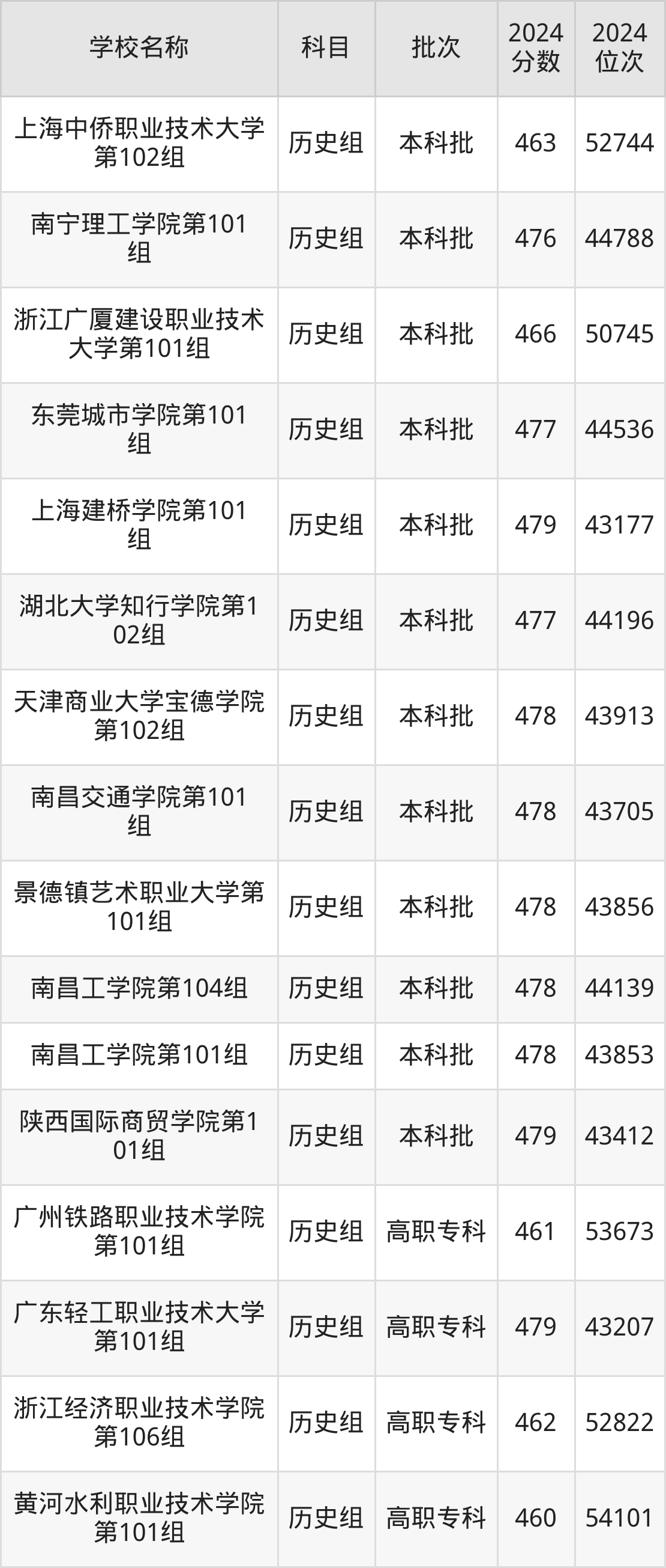 江西高考历史组共有63所理科大学在460到480分之间录取,包含广东培正学院、柳州工学院、河北科技学院、西安交通工程学院、景德镇陶瓷大学、南宁理工学院、广东轻工职业技术大学、上海建桥学院、陕西国际商贸学院、南昌工学院。