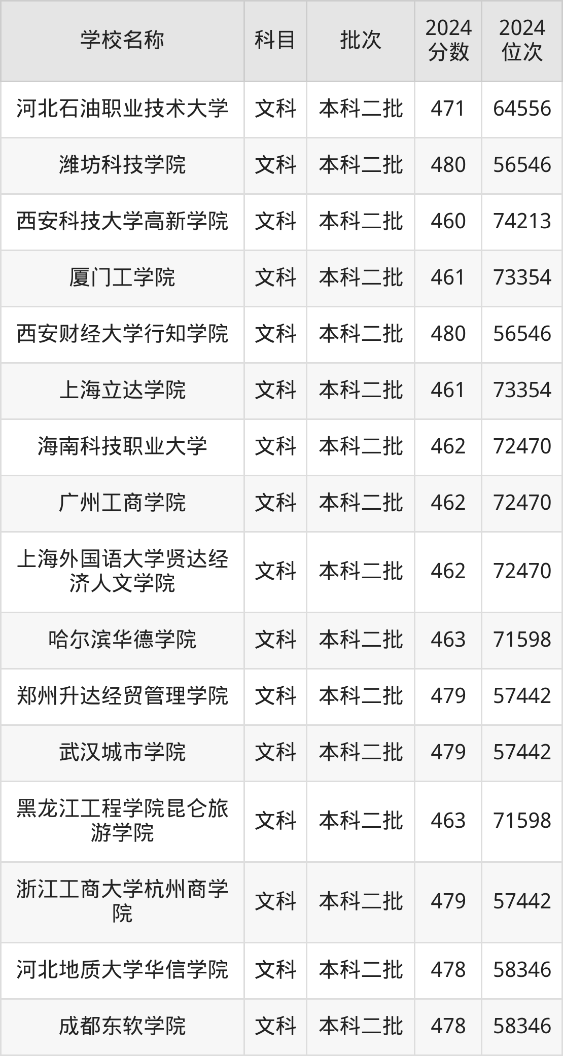 四川高考文科共有94所理科大学在460到480分之间录取,包含潍坊科技学院、西安财经大学行知学院、郑州升达经贸管理学院、武汉城市学院、浙江工商大学杭州商学院、河北地质大学华信学院、成都东软学院、成都航空职业技术学院、湖北经济学院法商学院、陕西国际商贸学院。