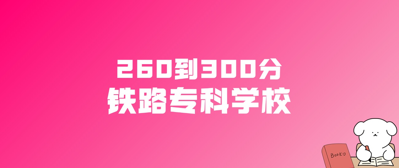 260到300分的铁路专科学校有武汉铁路桥梁职业学院、铁岭师范高等专科学校、铁岭卫生职业学院、包头钢铁职业技术学院、哈尔滨铁道职业技术学院、甘肃钢铁职业技术学院、石家庄铁路职业技术学院、吉林铁道职业技术学院、天津铁道职业技术学院、南京铁道职业技术学院等。
