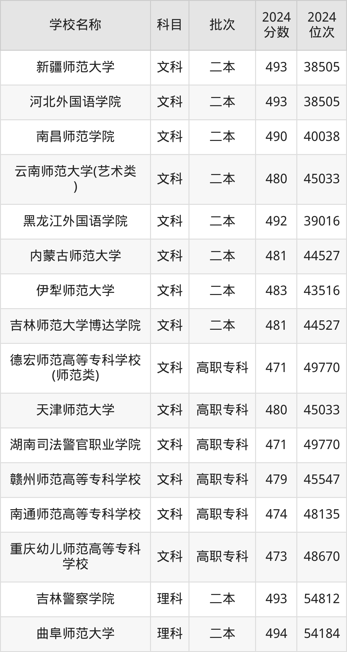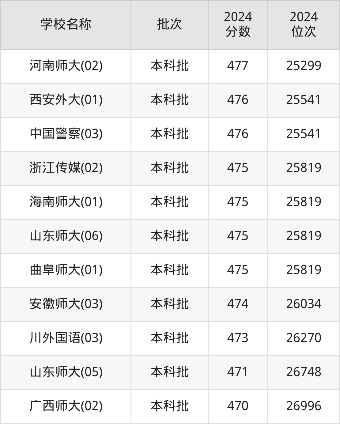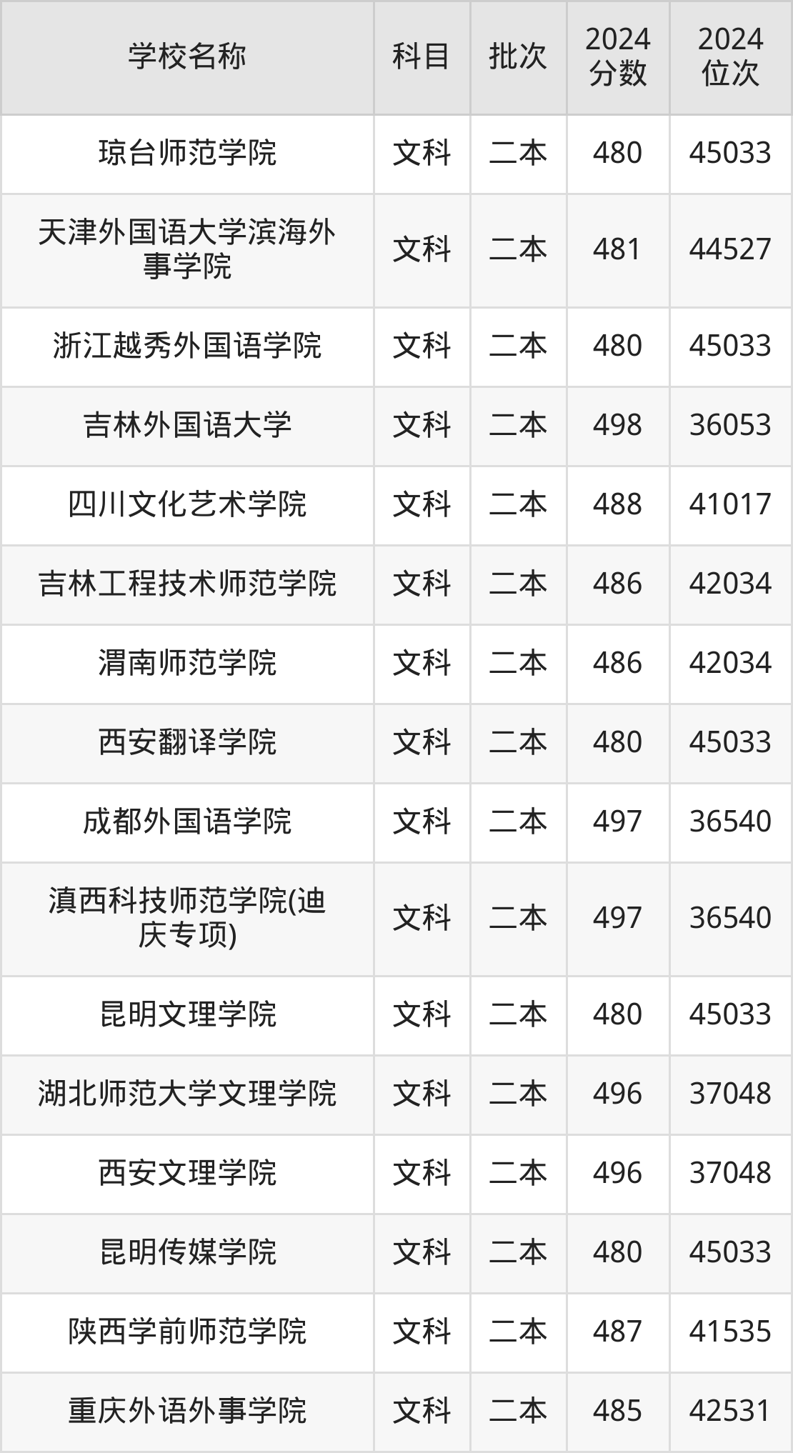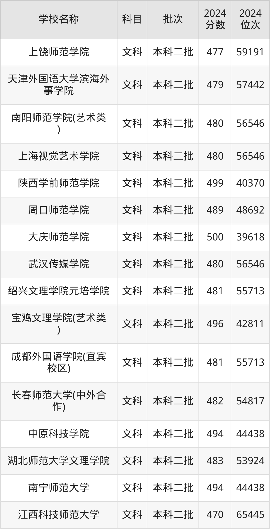 一、470到500分的文科大学最低分一览表