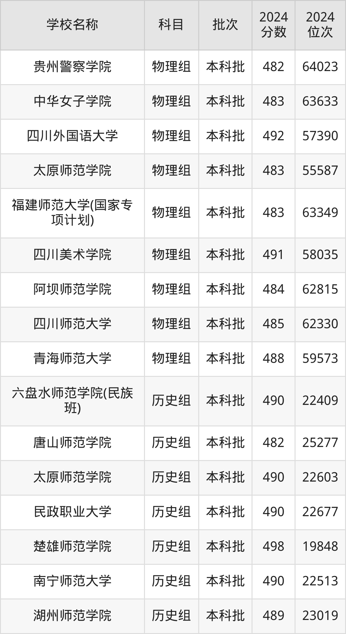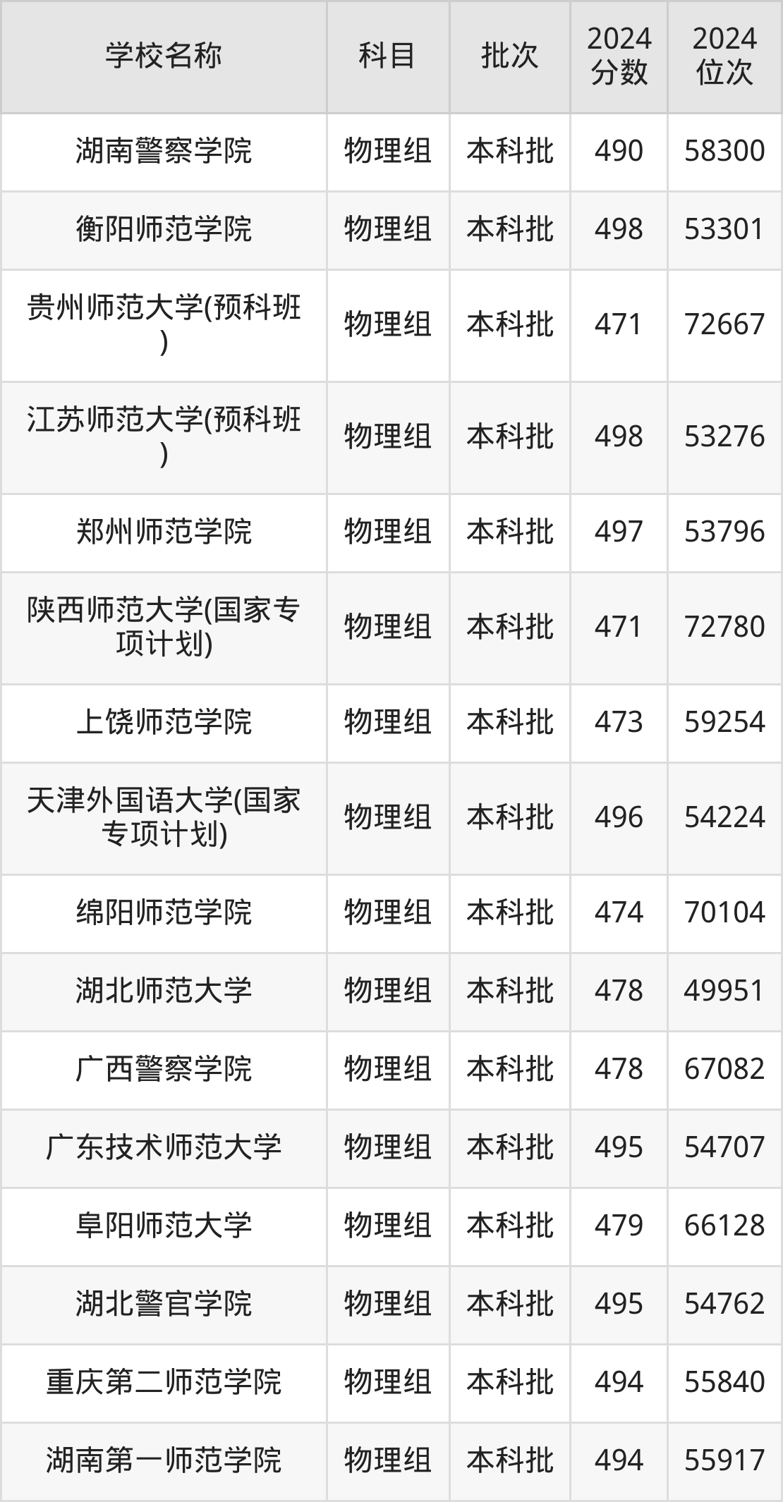 贵州高考物理组共有25所文科大学在470到500分之间录取,包含衡阳师范学院、江苏师范大学(预科班)、郑州师范学院、天津外国语大学(国家专项计划)、广东技术师范大学、湖北警官学院、重庆第二师范学院、湖南第一师范学院、四川外国语大学、四川美术学院。