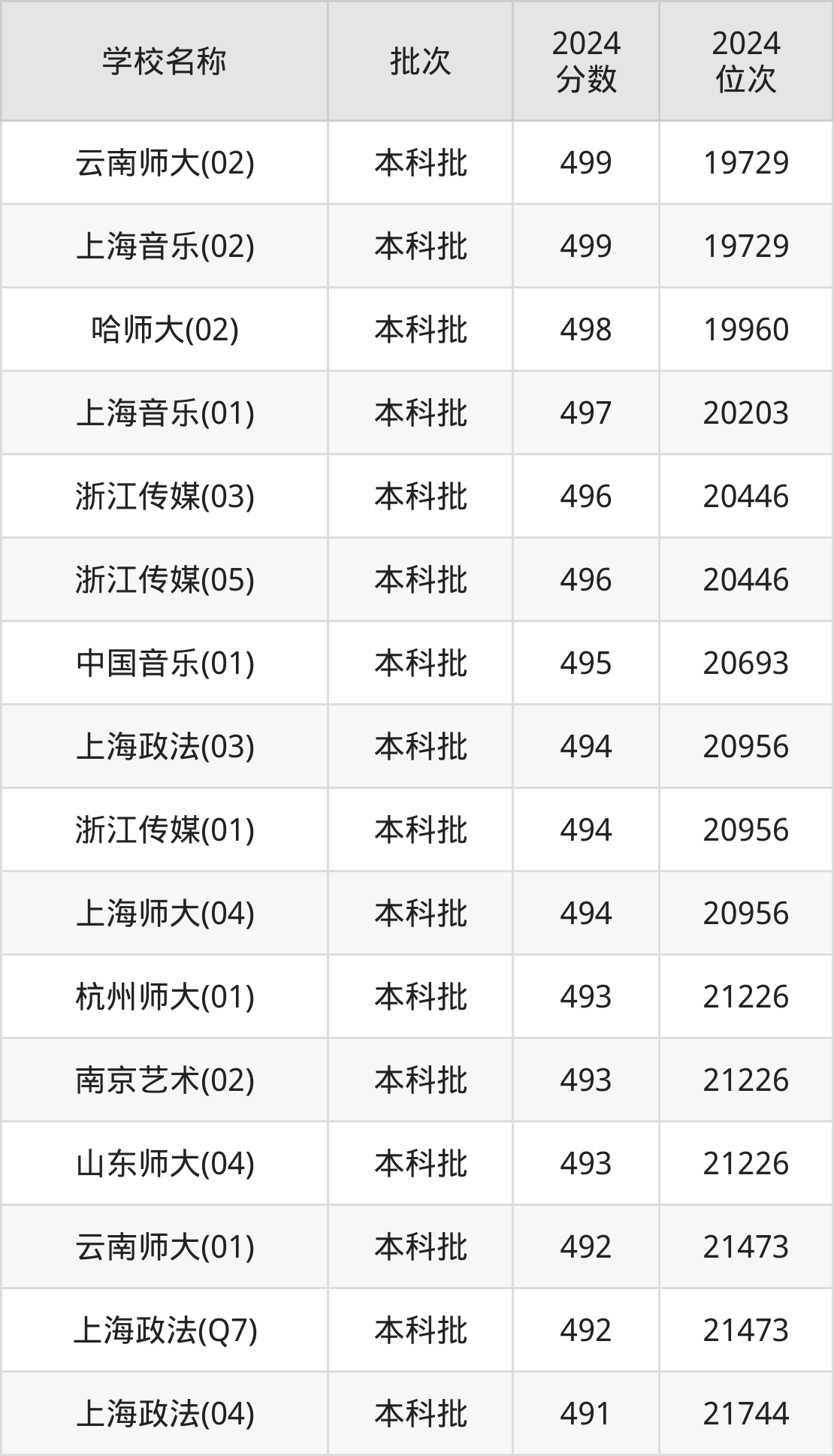 上海高考共有22所文科大学在470到500分之间录取,包含云南师范大学、上海音乐学院、哈尔滨师范大学、浙江传媒学院、中国音乐学院、上海政法学院、上海师范大学、杭州师范大学、南京艺术学院、山东师范大学。