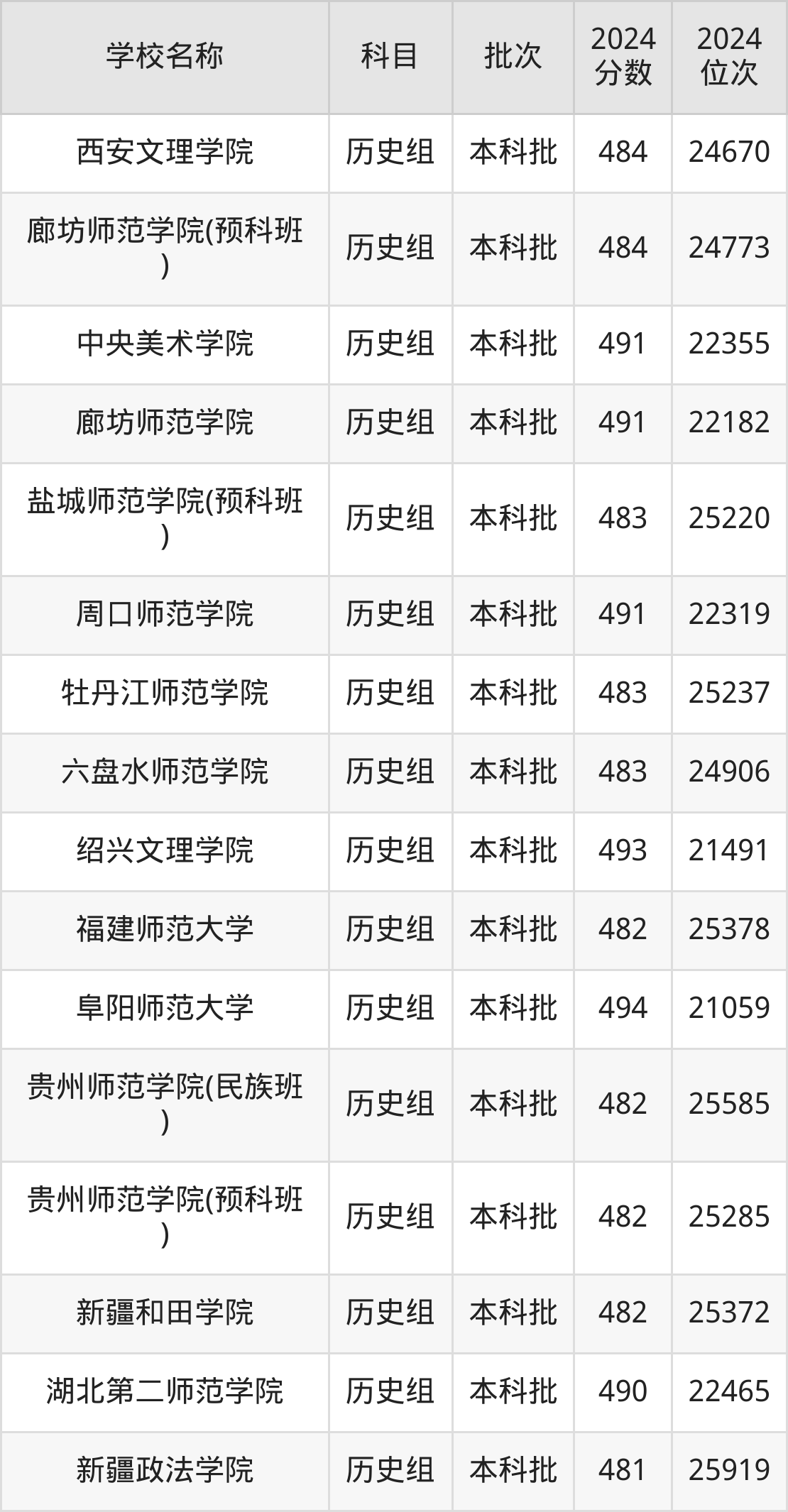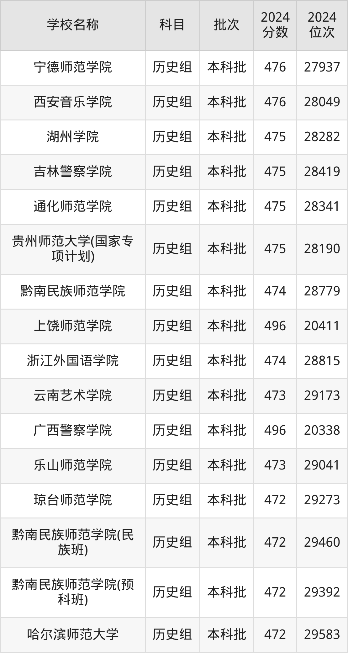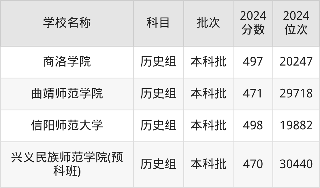 贵州高考历史组共有75所文科大学在470到500分之间录取,包含楚雄师范学院、信阳师范大学、商洛学院、广西警察学院、上饶师范学院、兴义民族师范学院(民族班)、陕西学前师范学院、江苏第二师范学院、阜阳师范大学、绍兴文理学院。