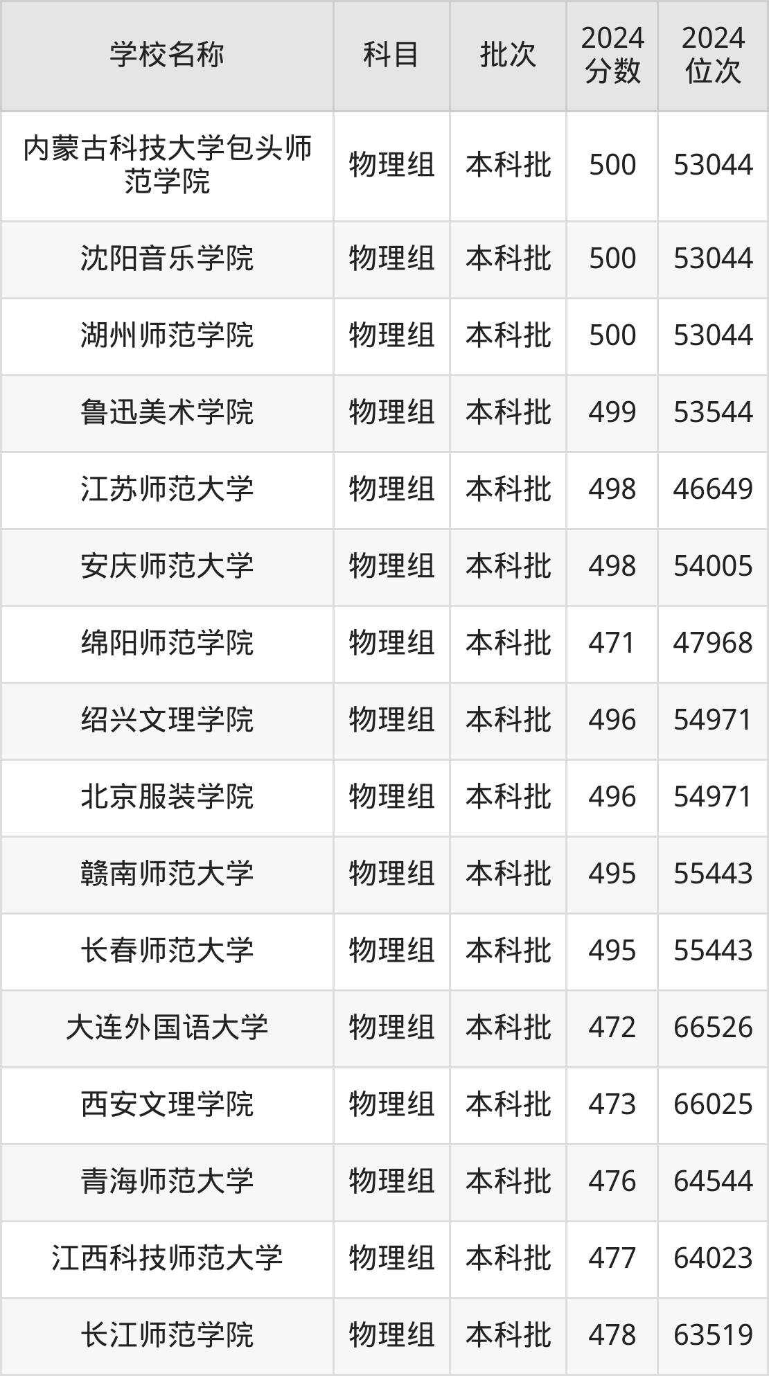 辽宁高考物理组共有18所文科大学在470到500分之间录取,包含内蒙古科技大学包头师范学院、沈阳音乐学院、湖州师范学院、鲁迅美术学院、江苏师范大学、安庆师范大学、绍兴文理学院、北京服装学院、赣南师范大学、长春师范大学。