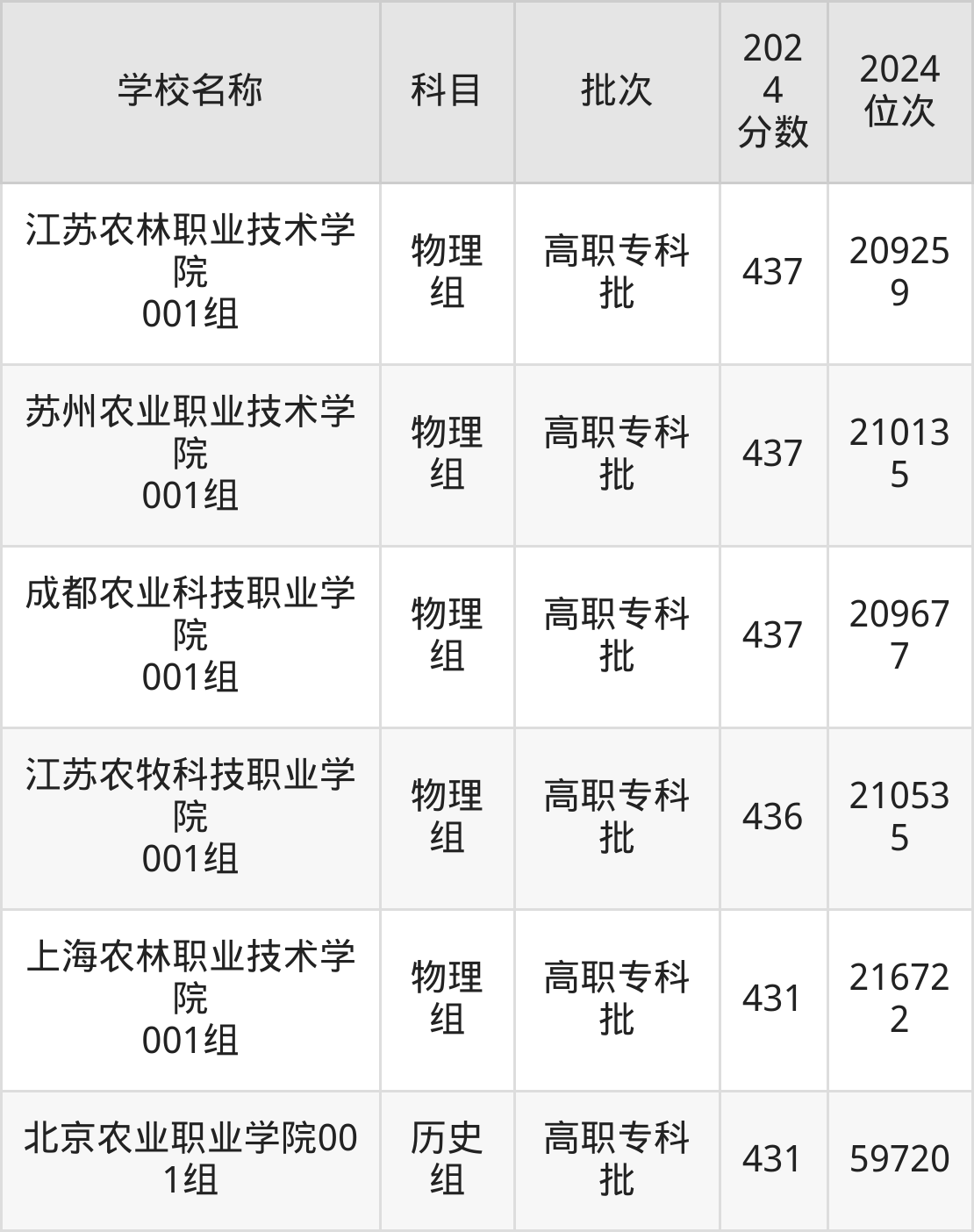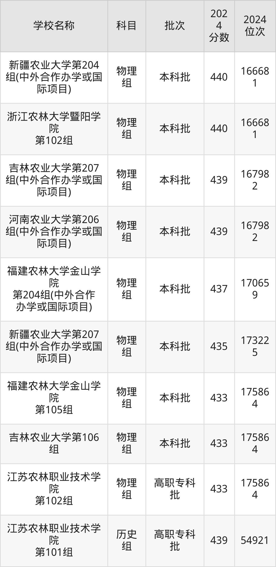 湖南高考历史组共有1所农业大学在430到440分之间录取,包含江苏农林职业技术学院。