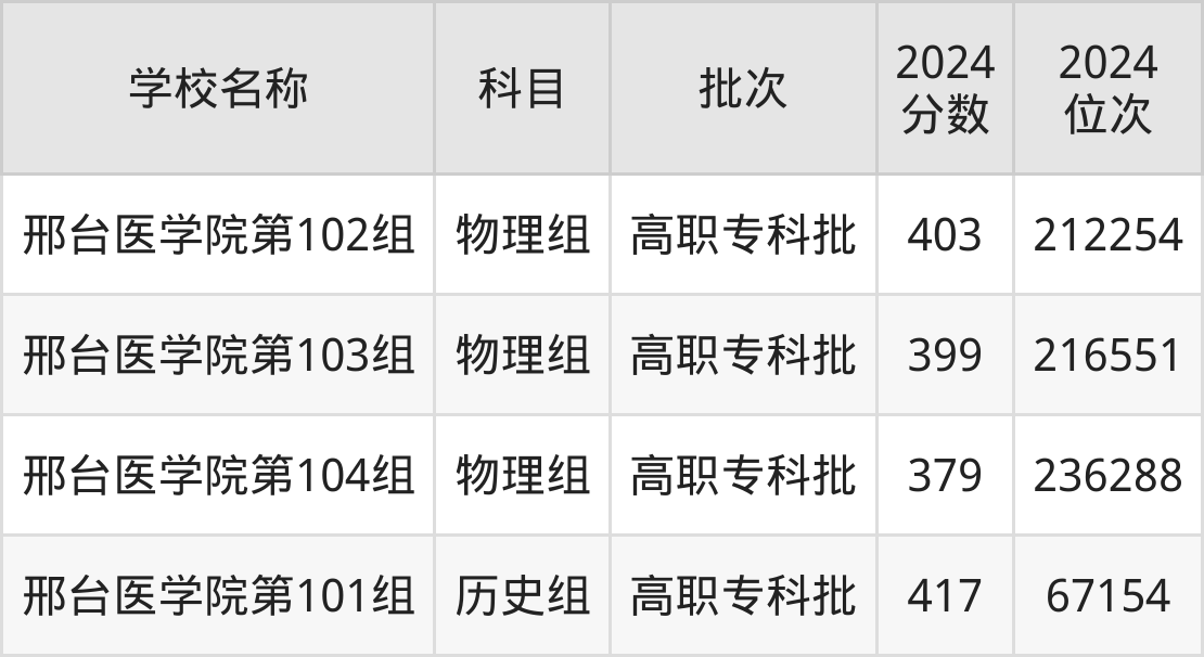广东高考历史组共有1所二本医学院在350到420分之间录取,包含邢台医学院。