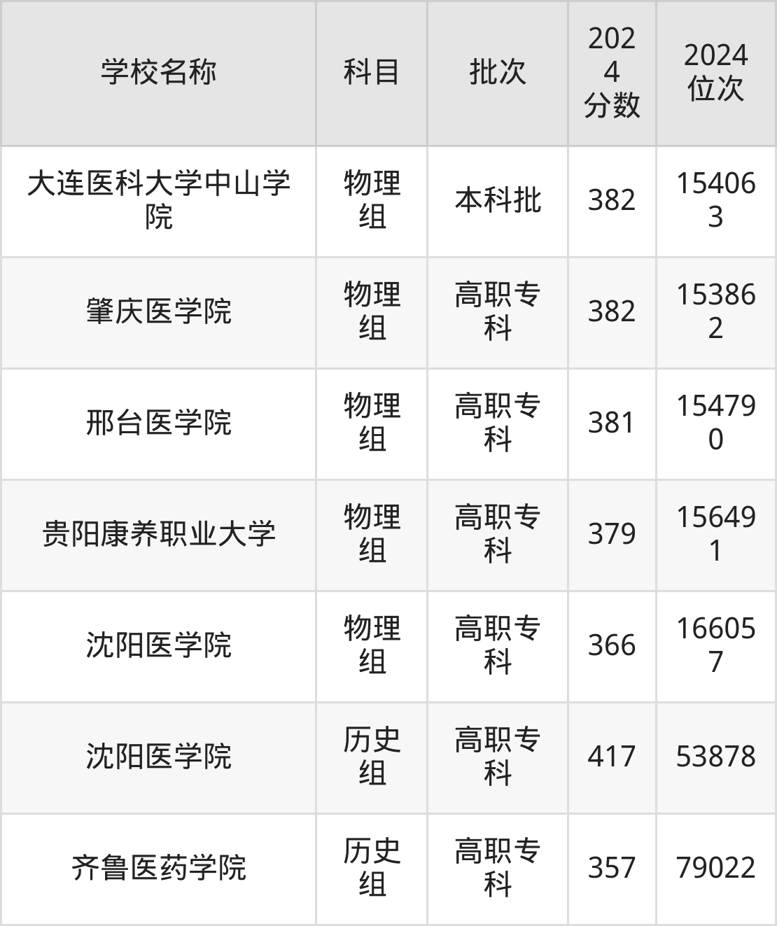 贵州高考历史组共有2所二本医学院在350到420分之间录取,包含沈阳医学院、齐鲁医药学院。