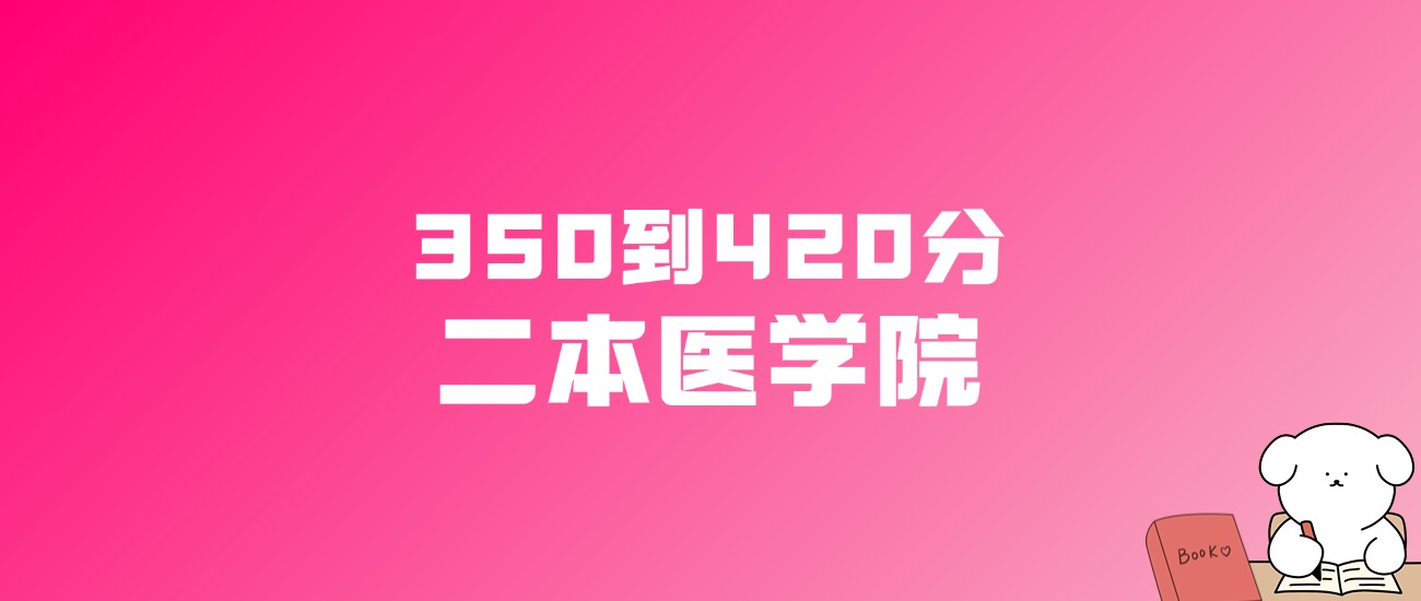 350到420分的二本医学院有邢台医学院、肇庆医学院、齐鲁医药学院、承德医学院、天津医科大学临床医学院、长沙医学院、温州医科大学仁济学院、辽宁何氏医学院、昆明医科大学海源学院、沈阳医学院等。