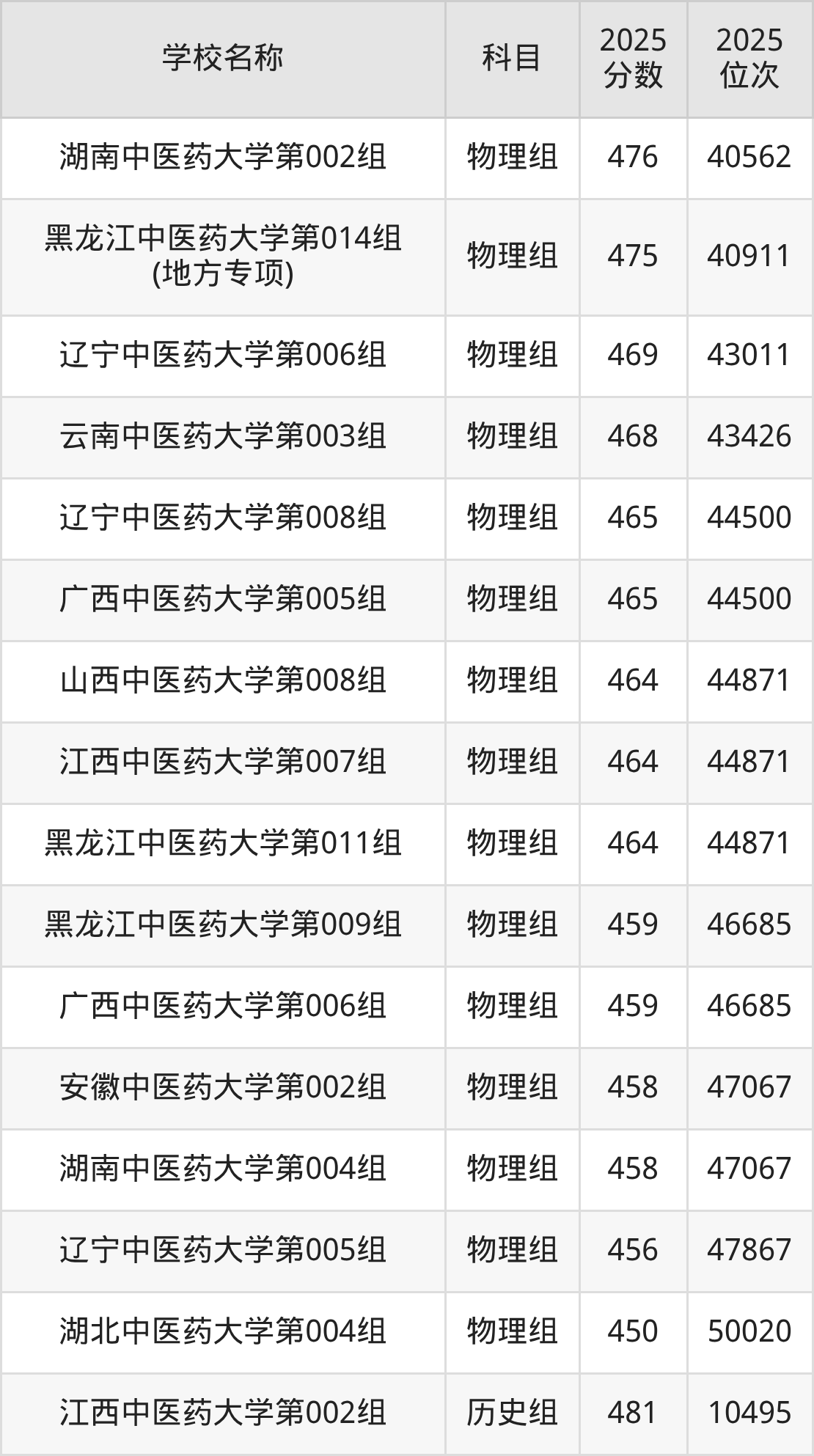 黑龙江高考物理组共有14所中医药大学在450到500分之间录取,包含山东中医药大学、黑龙江中医药大学、山西中医药大学、湖南中医药大学、浙江中医药大学、河南中医药大学、湖北中医药大学、陕西中医药大学、辽宁中医药大学、广西中医药大学。